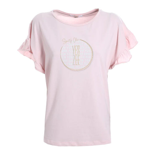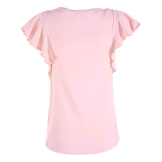 Chic Pink Bat Sleeve Cotton Tee with Ruffles