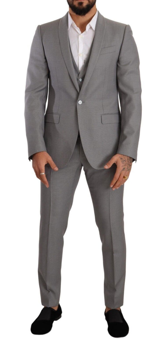 Elegant Grey Slim Fit Wool Silk 3 Piece Suit