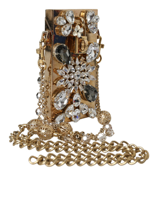 Gold Metal Crystal Embellished Mini Crossbody Bag