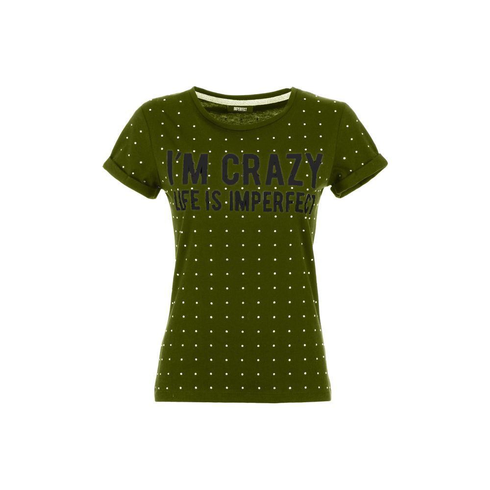 Illuminate your casual wardrobe with this dazzling Army Green T-shirt from Imperfect, adorned with sparkling strass for that glam touch. Perfect for adding a little sparkle to your everyday look!