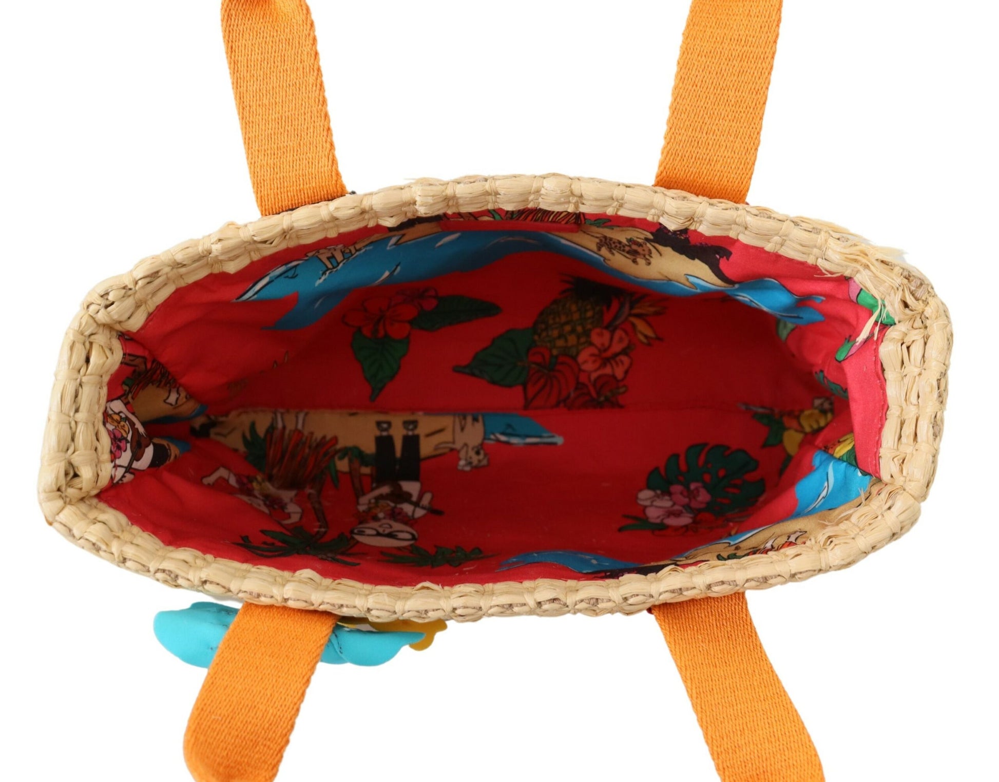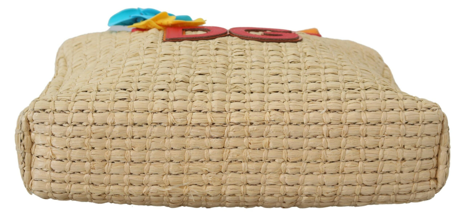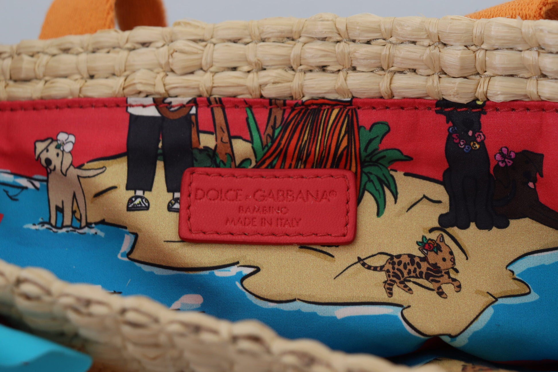 Discover the embodiment of summer elegance with the Dolce & Gabbana Bambino Straw Tote. This exquisite accessory is a testament to the brand’s commitment to luxury and craftsmanship. Its beige straw construction is complemented by vibrant multicolor detailing, making it the perfect addition to any sophisticated wardrobe. With its spacious interior and two handles, it is both practical and stylish, ideal for shopping trips or as a chic daytime bag. Handcrafted in Italy, it’s a true representation of fashion artistry.