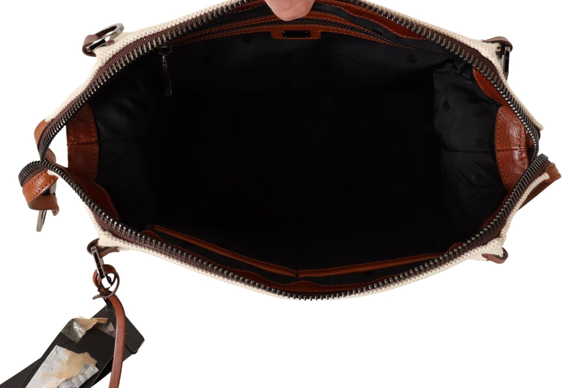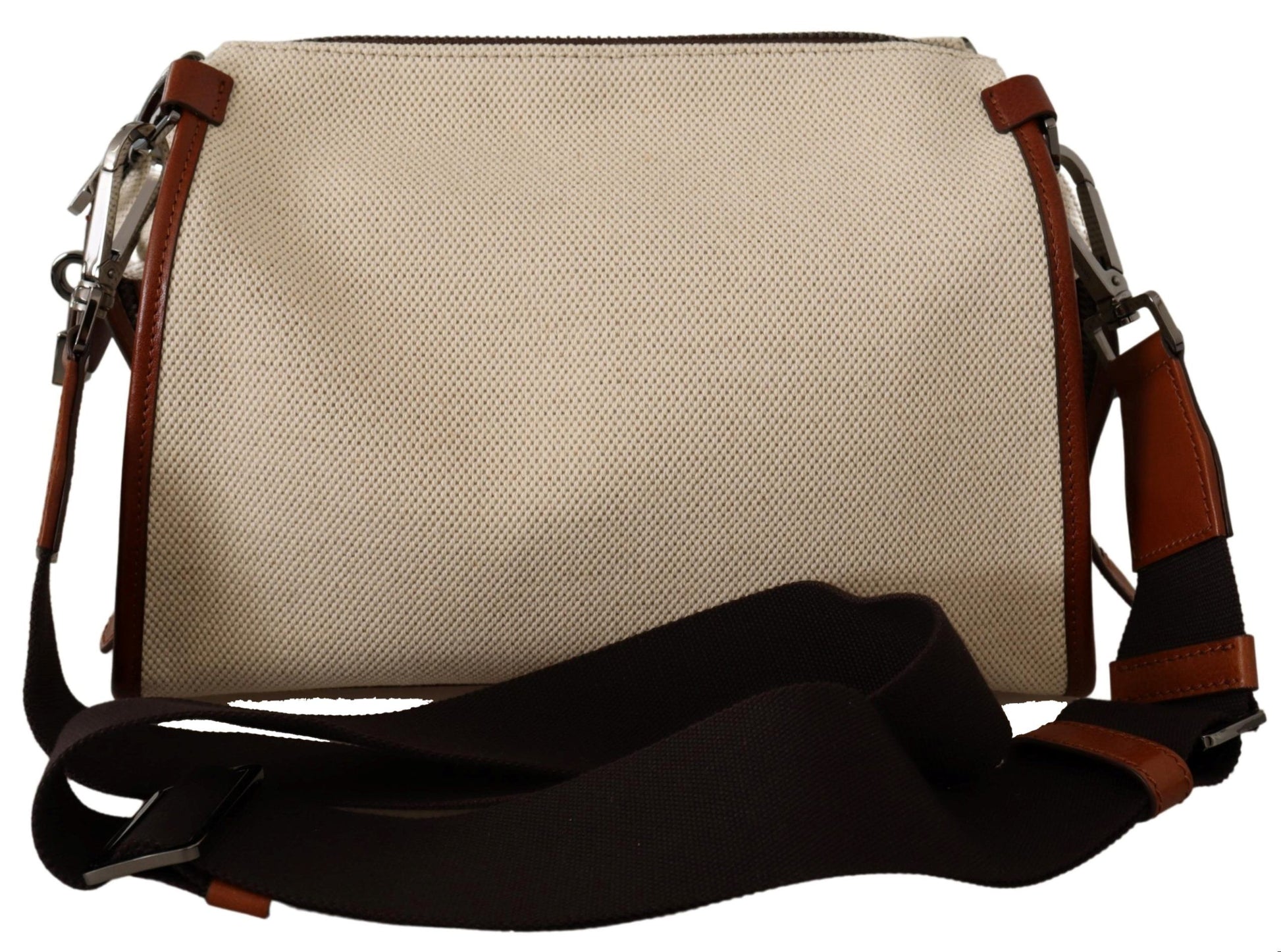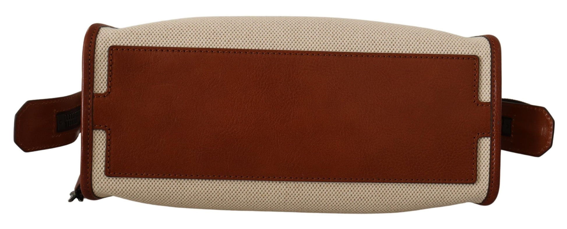 Indulge in the epitome of sophistication with this stunning beige and brown shoulder bag, a testament to the luxurious craftsmanship of Dolce & Gabbana. The eye-catching zip fastening is adorned with an elegant padlock, and the front boasts a distinctive leather logo applique that adds a signature touch to this exquisite accessory. The versatility of the detachable, adjustable shoulder strap makes it an impeccable choice for the discerning fashionista. Organize your essentials with ease thanks to the main internal compartment complemented by two slip pockets and a secure zip pocket.