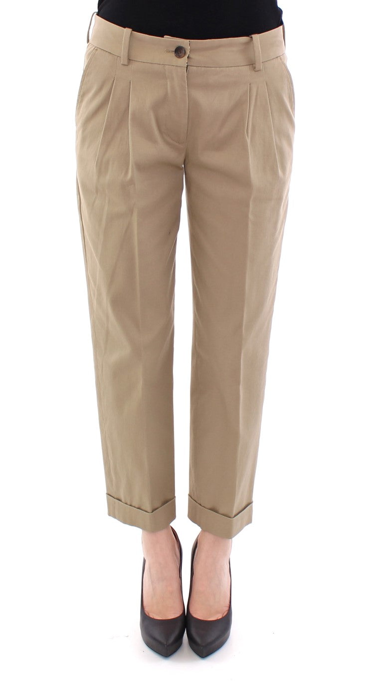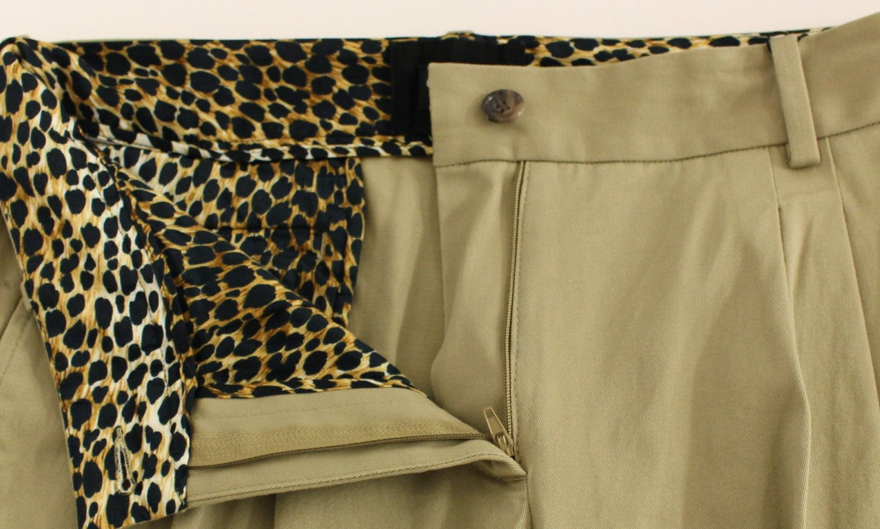 Elevate your wardrobe with these chic beige trousers from the illustrious Dolce & Gabbana. These pants come brand new with tags, promising authenticity and top-notch quality. Crafted with a comfortable blend of 98% cotton and 2% elastane, they’re designed to offer a snug, yet flexible regular fit. Perfect for a sophisticated day out or a casual office environment, these trousers feature a zipper and button closure for easy wear. Practicality meets style with two front pockets and two buttoned back pockets, adorned with the subtle elegance of the Dolce & Gabbana logo details. These are not just pants, they’re a statement of refined luxury and comfort.