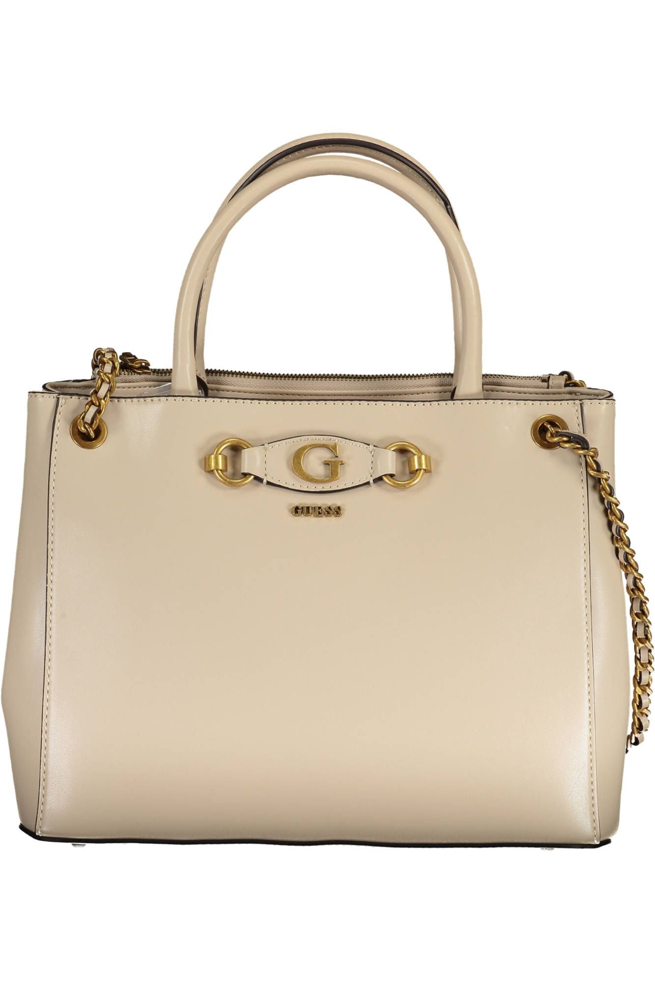 Infuse your style with a touch of elegance and sophistication with this exquisite Guess Jeans handbag. Flawlessly crafted from refined 100% Polyethylene, it presents a multi-faceted approach to organizing your essentials, featuring dual handles coupled with chic chain shoulder straps for versatile carrying options. A front pocket and multiple compartments, including a central pocket encased by a secure zip and magnet closure, ensure your belongings stay safe and organized. With eye-catching contrasting details and the iconic Guess Jeans logo, this handbag isn’t just a carrying accessory—it’s a statement.