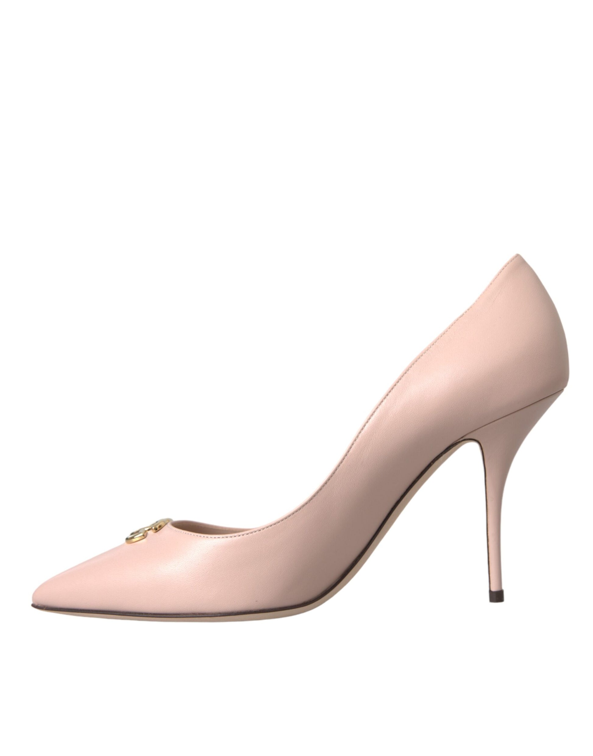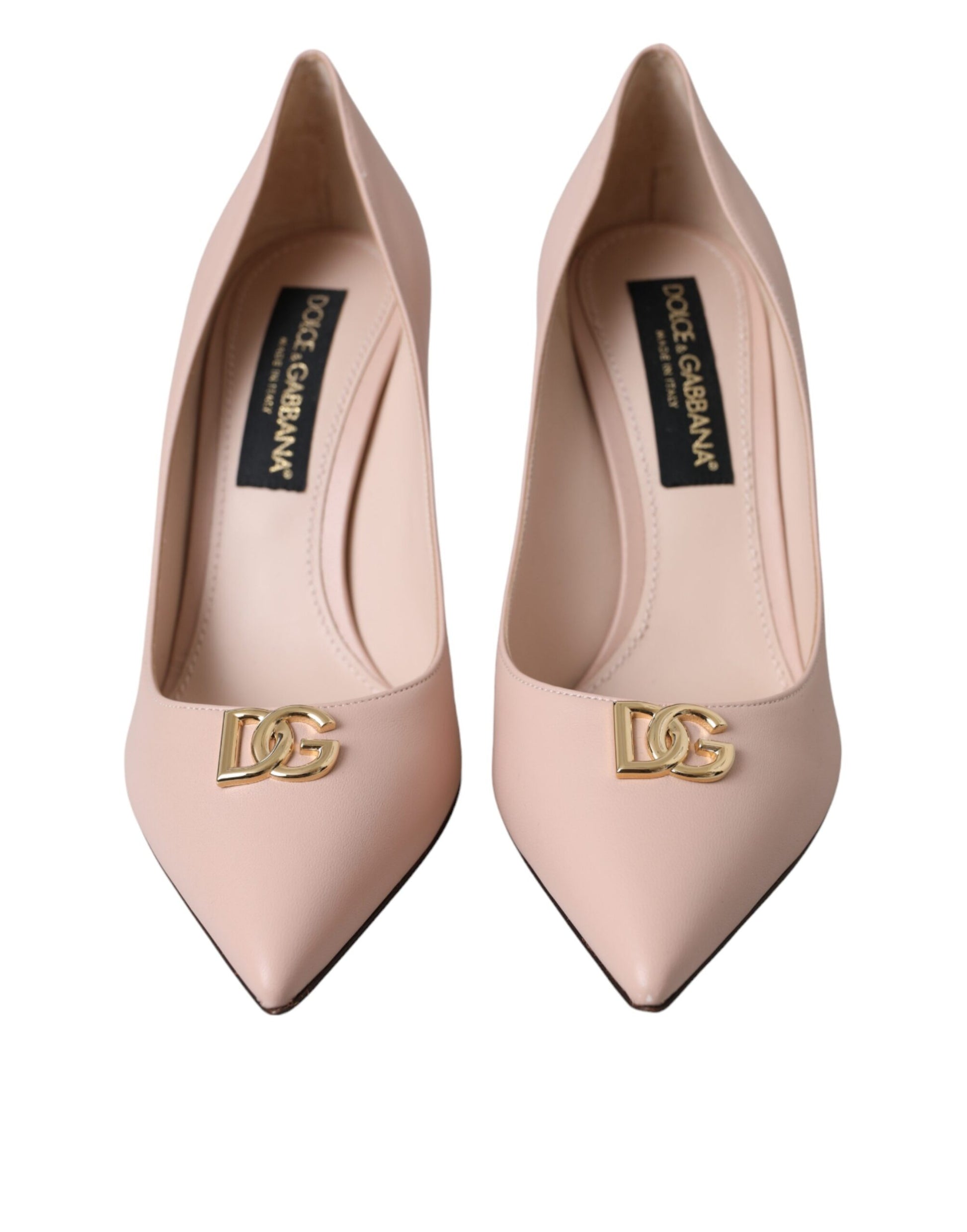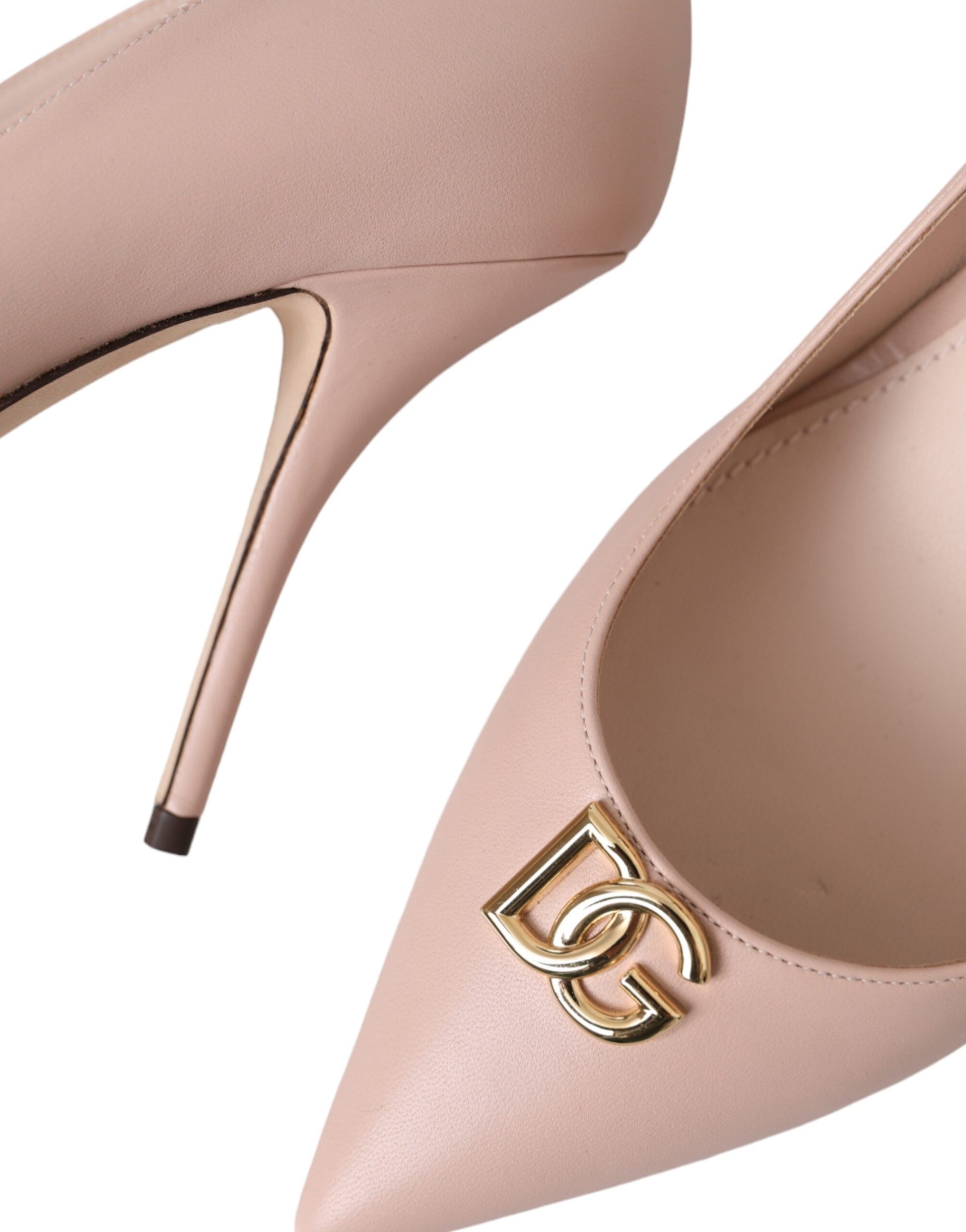 Beige Lamb Leather Logo Pumps Heels Shoes