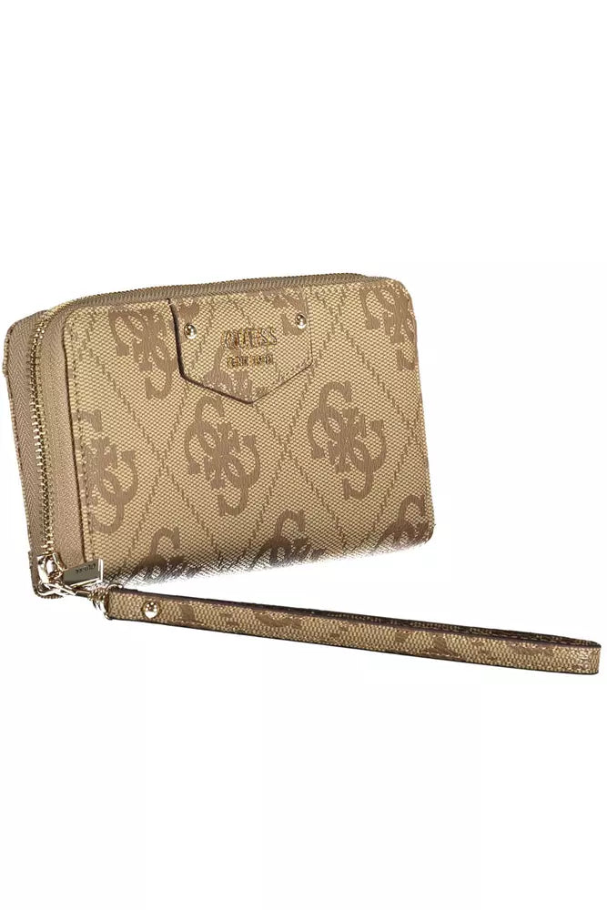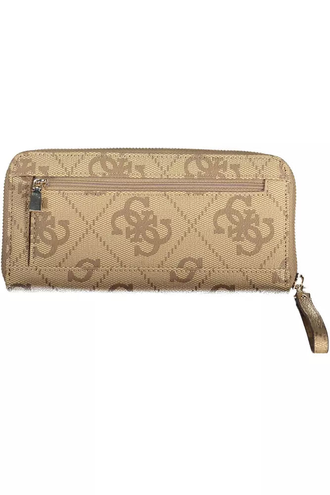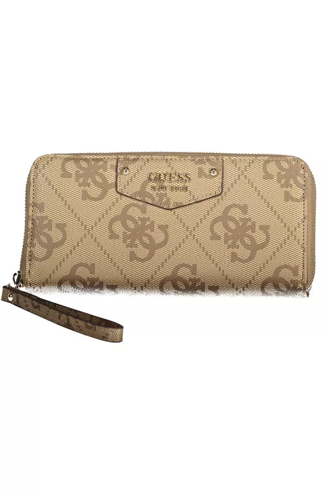 Dive into luxury with this Guess Jeans wallet, an exquisite blend of form and function that demands attention. Designed for the woman on-the-go, this wallet offers five practical compartments, including a secure coin purse, ample space for your cards, and an external pocket for quick access. The beige hue is elegantly offset with contrasting details, making it as stylish as it is practical. Finished with a sleek zip closure and a removable puller, the wallet is also a nod to sustainability, crafted from 100% recycled polyethylene. Flaunt your eco-chic sensibility without compromising on style.