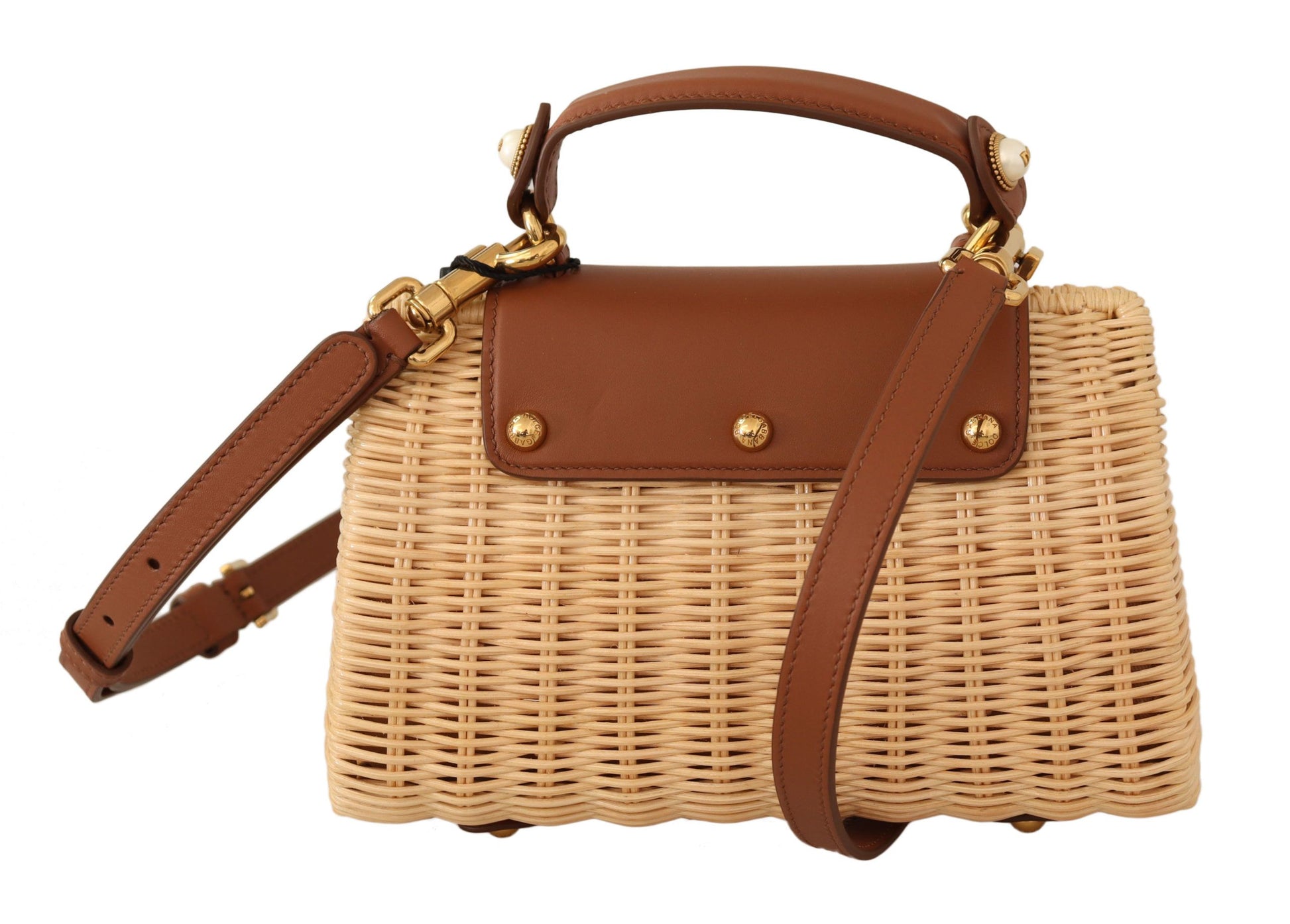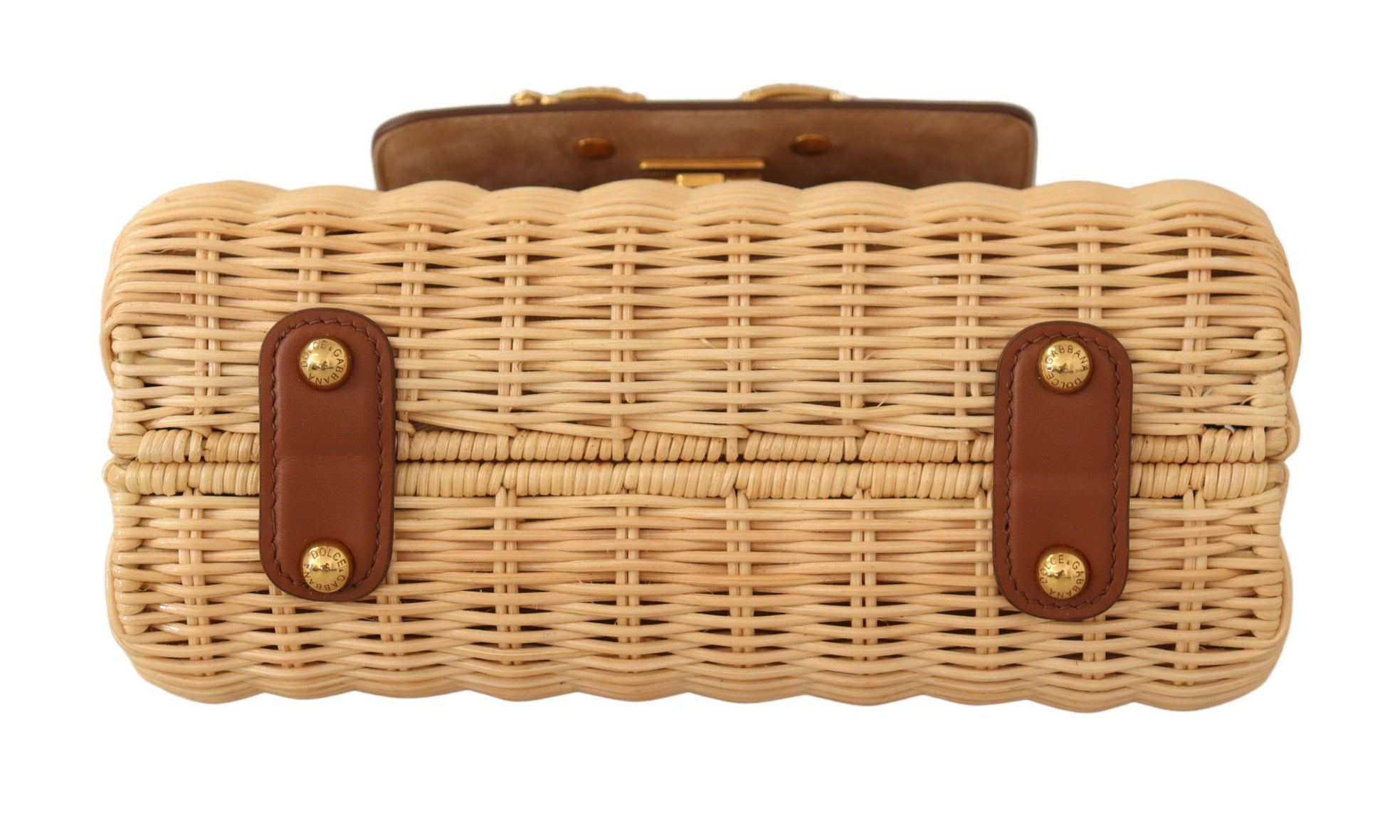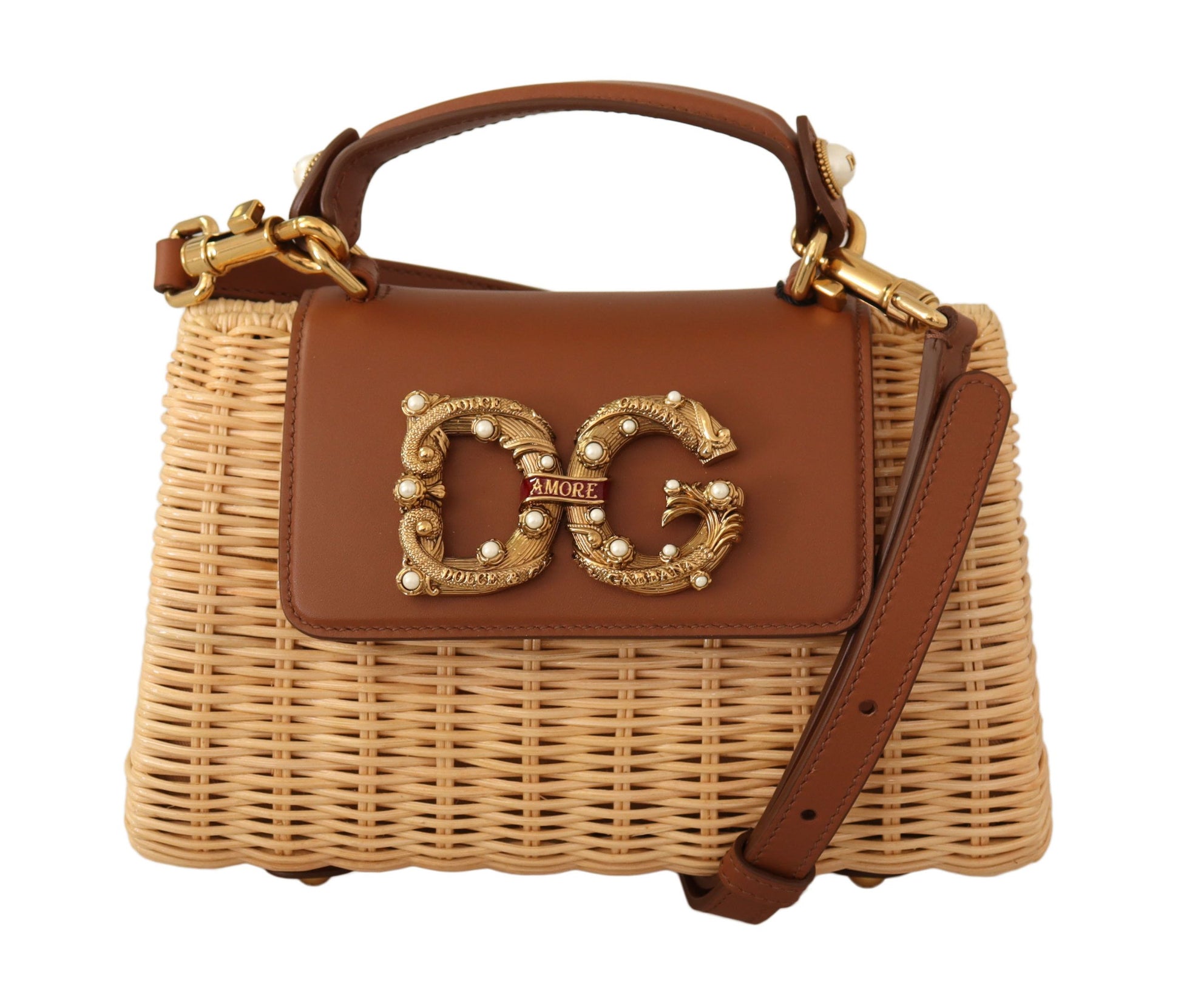 Embrace timeless elegance with Dolce & Gabbana’s stunning beige straw fiber and brown leather shoulder bag. Featuring luxurious leopard print inner lining and an adjustable, detachable leather strap, this gorgeous Amore model combines classic charm with modern versatility. Logo-engraved metal hardware adds a signature touch to this Italian-made masterpiece.