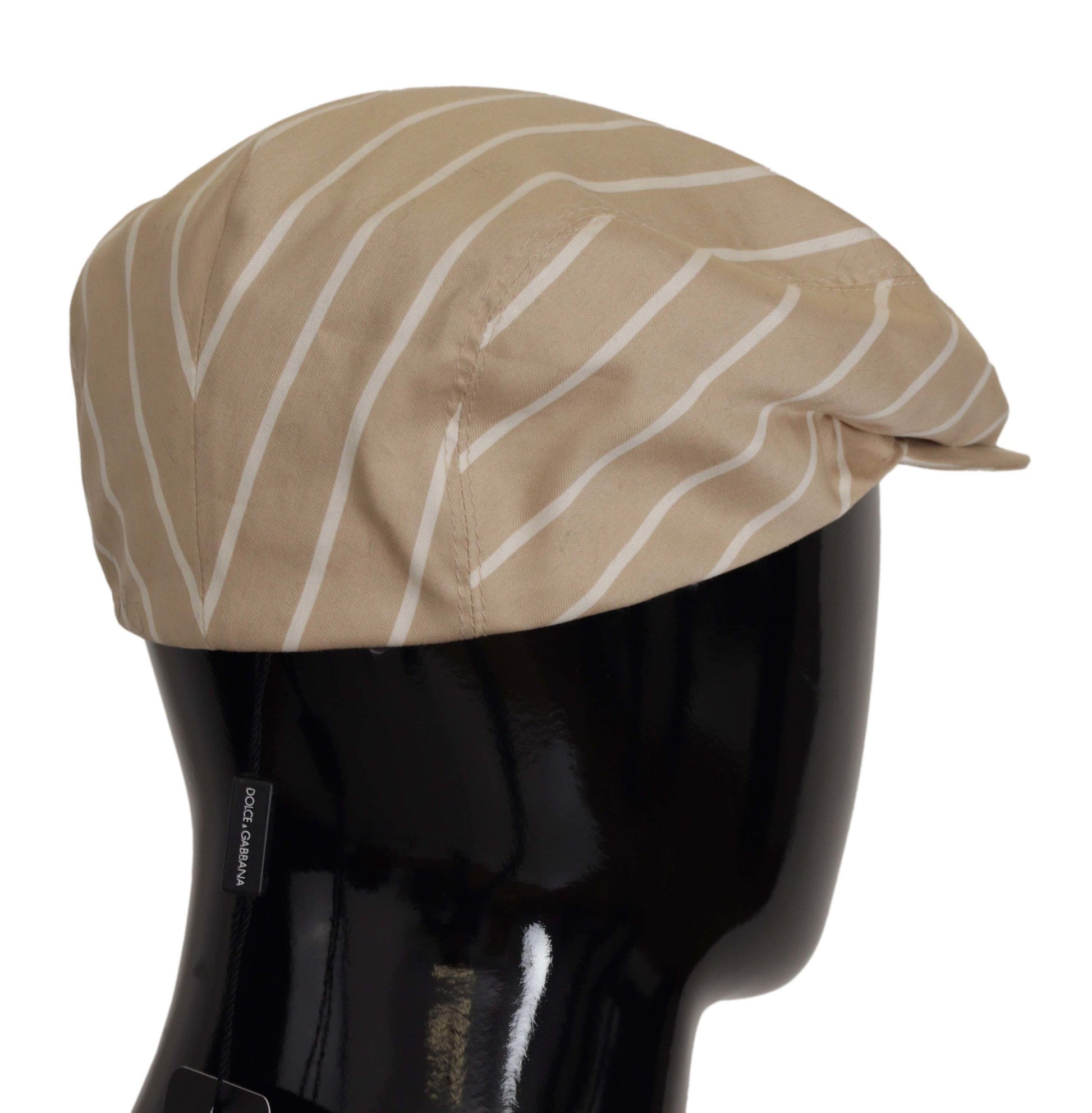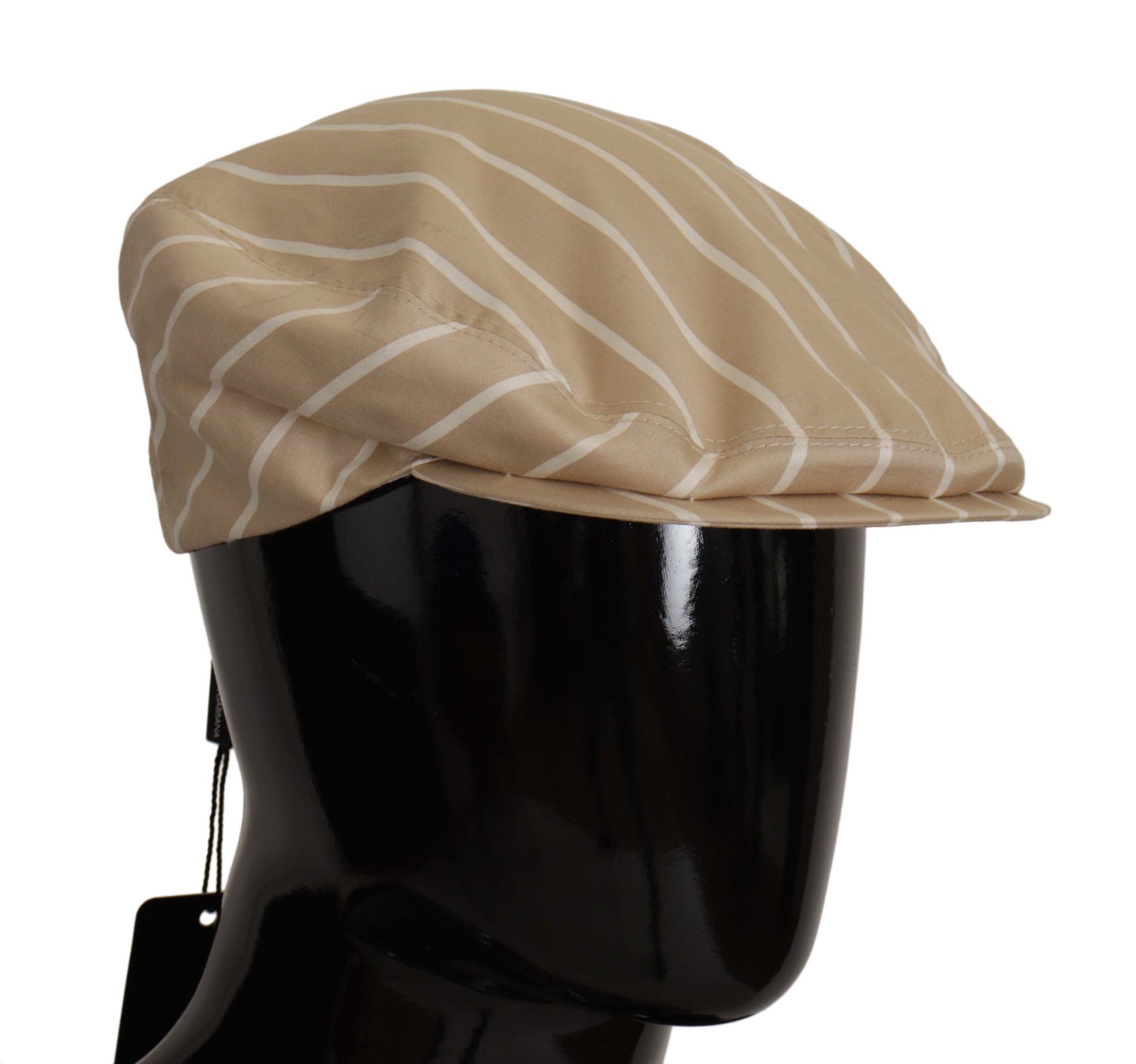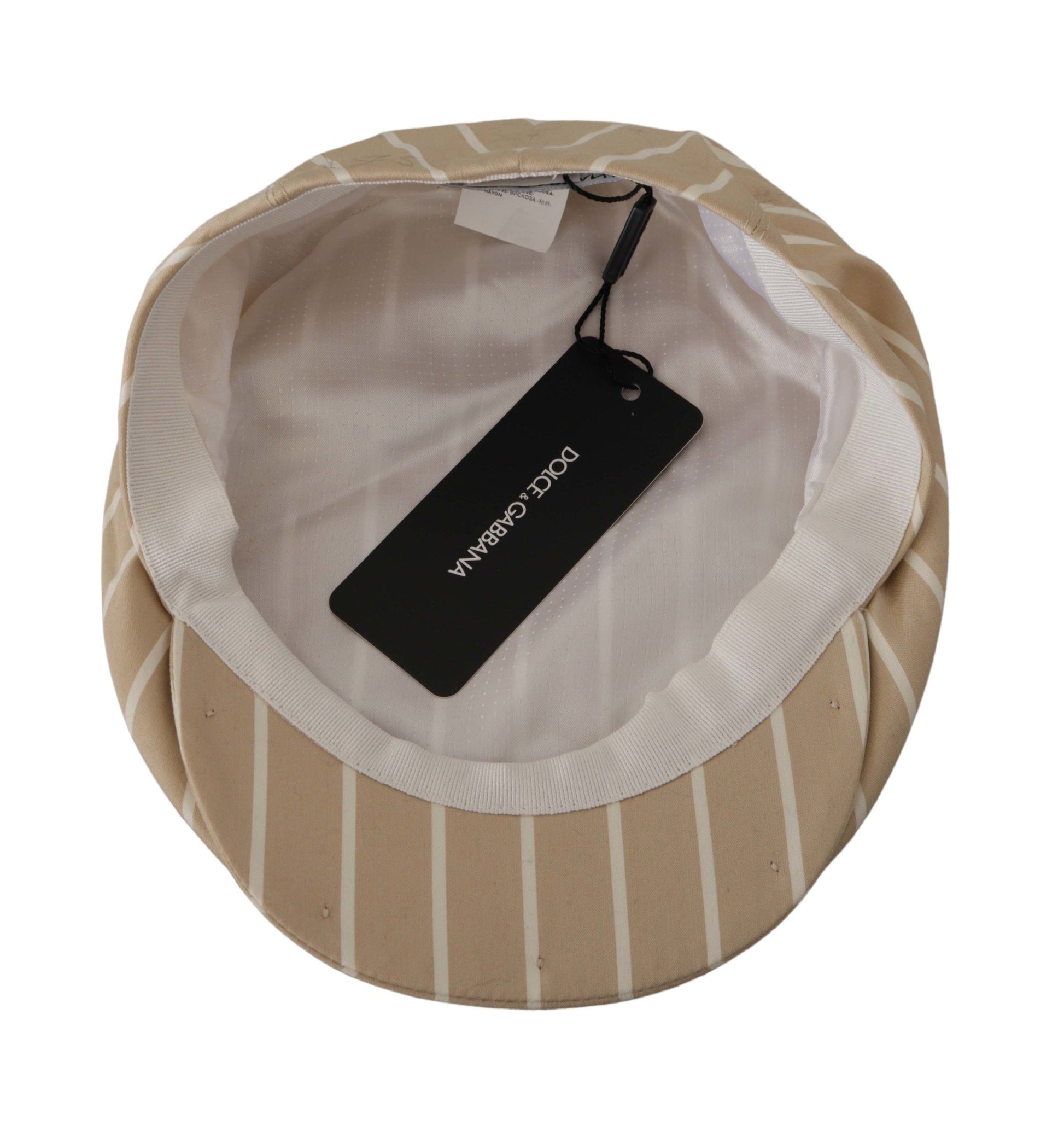 Step into timeless elegance with this stunning Newsboy hat from the exclusive MainLine of Dolce & Gabbana. Crafted with a chic beige-striped design, it is the perfect finishing touch to amplify your sophisticated wardrobe. Donning this hat not only elevates your style but also adds an authentic touch of luxury to any look, having been meticulously made in Italy with the finest blend of materials.