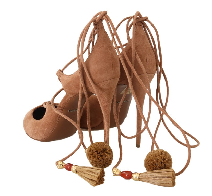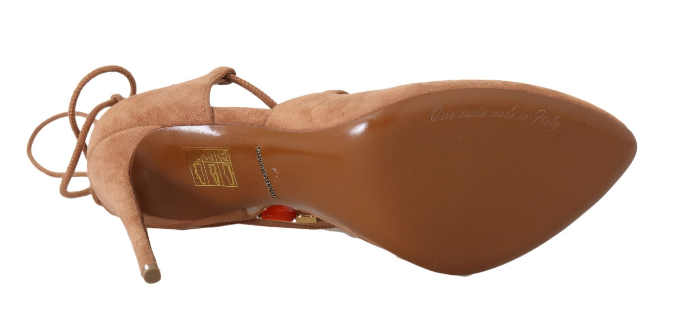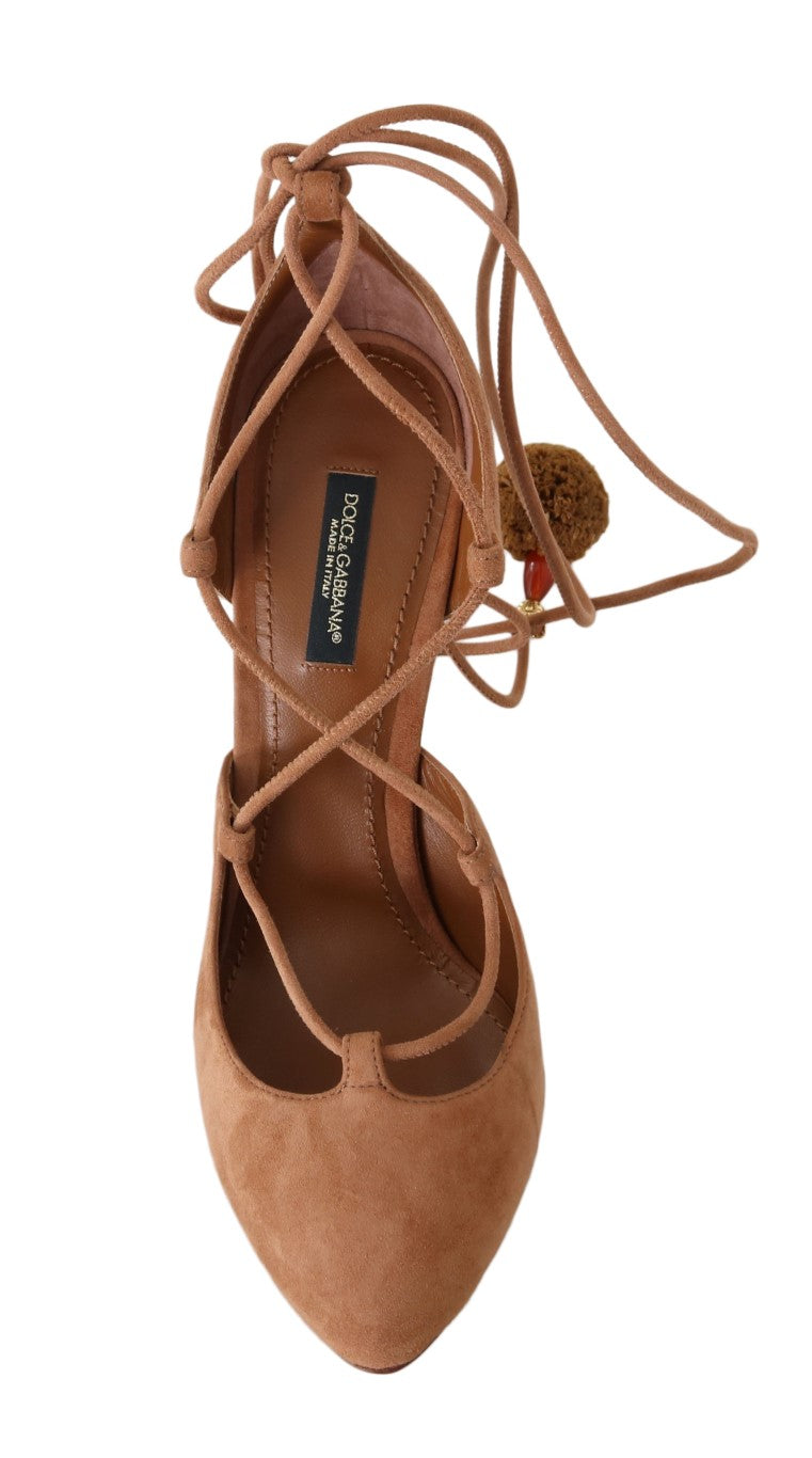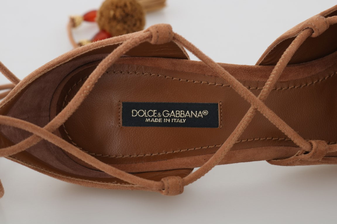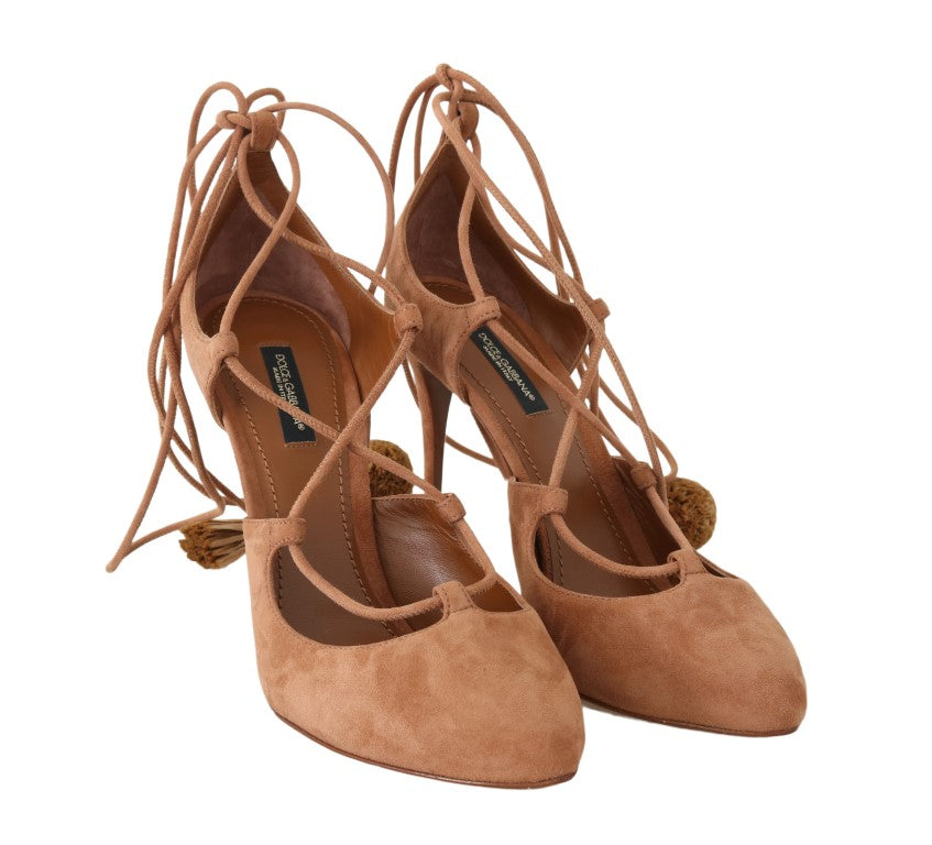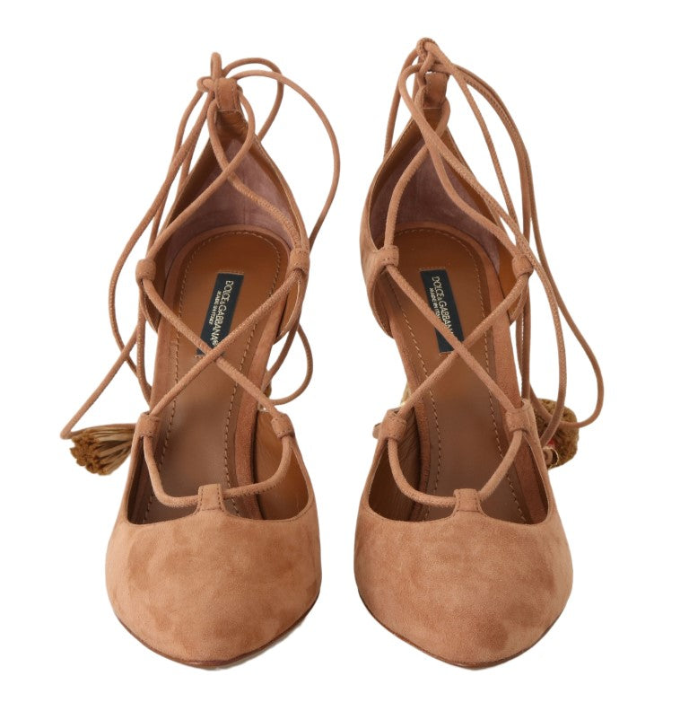 Exude elegance with these stunning Dolce & Gabbana stiletto heels, perfect for enhancing any ensemble. Crafted with the finest beige suede, featuring an ankle strap and playful tassel, these shoes are a manifestation of luxury and comfort combined. Made in Italy with exceptional craftsmanship, they are sure to become a cherished addition to your collection.