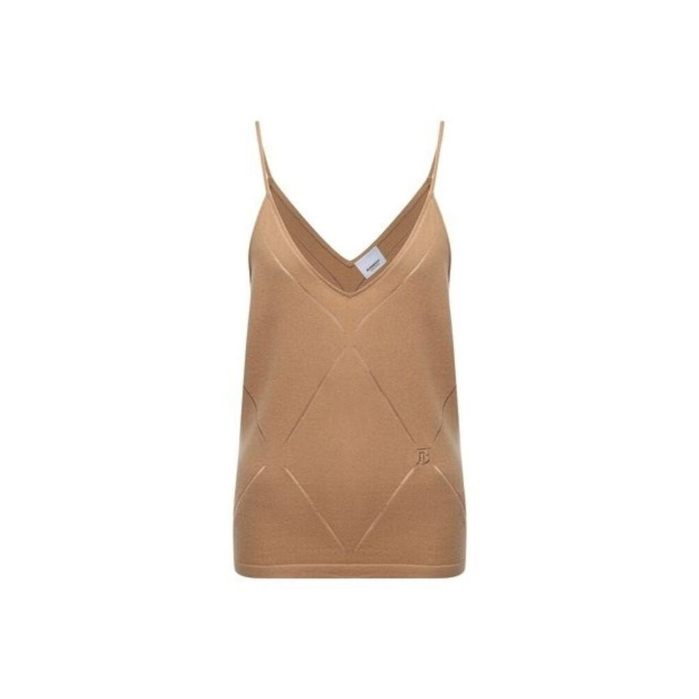 Indulge in the blend of classic style and luxurious comfort with this chic knit tank top. The exquisite plaid embroidery gracefully complements the understated elegance of the beige hue, while the delicately stitched logo asserts the outstanding craftsmanship of Burberry. Crafted from a premium blend of materials, it promises both warmth and durability.