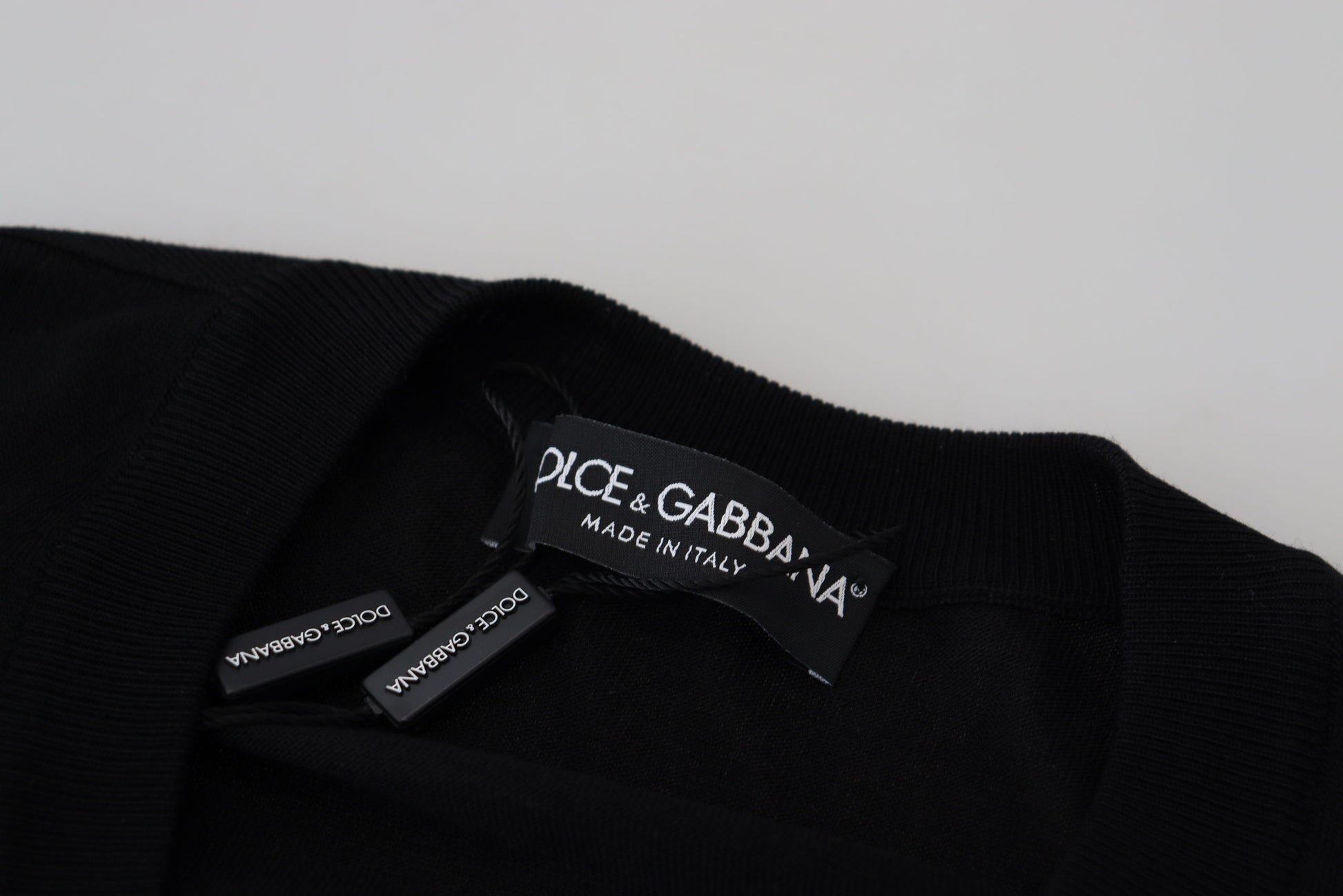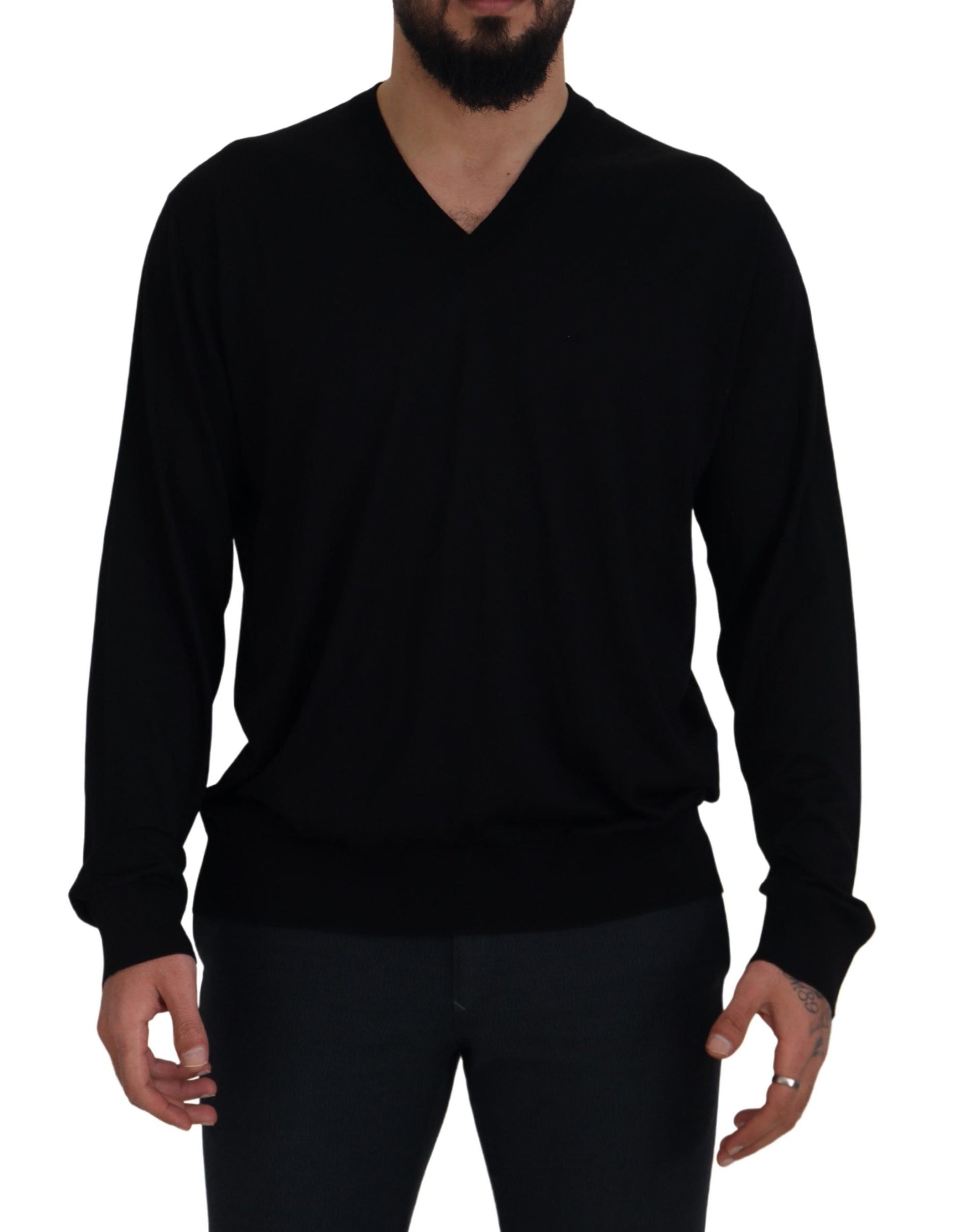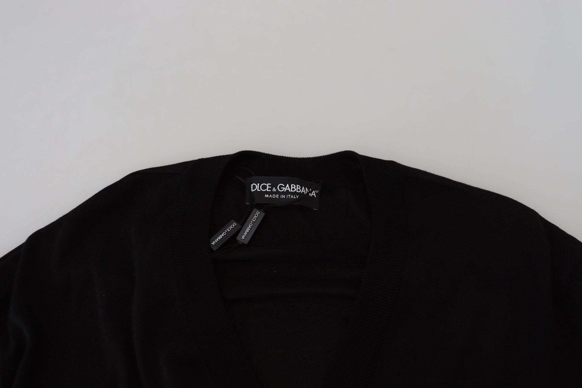 Step into luxury with our exquisite V-neck pullover sweater, a garment that blends timeless elegance with the unrivaled quality of Dolce & Gabbana . Perfectly tailored to add a touch of sophistication to any ensemble, this pure silk sweater is a testament to Italian craftsmanship. The deep black hue and subtle logo detail offer a versatile piece that’s effortlessly stylish for both day and evening wear.