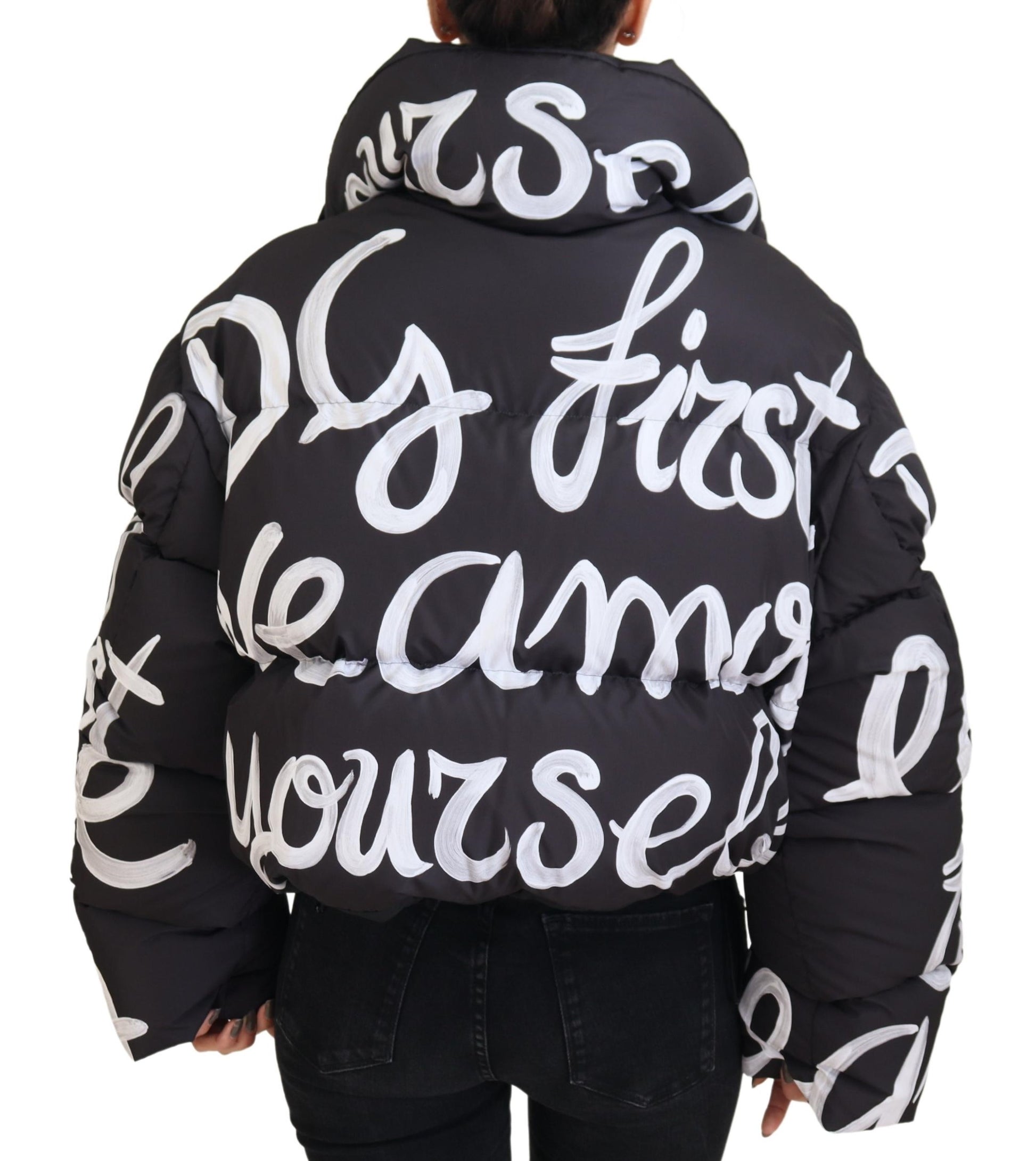 Step into the world of high fashion with this stunning Dolce & Gabbana blouson jacket. Gorgeous and brand new with tags, this 100% authentic jacket boasts a unique graphic print in a classic black and white palette. Perfect for those seeking a regular fit with an elegant full zip front closure, it embodies luxury with subtle logo details and exceptional Italian craftsmanship.