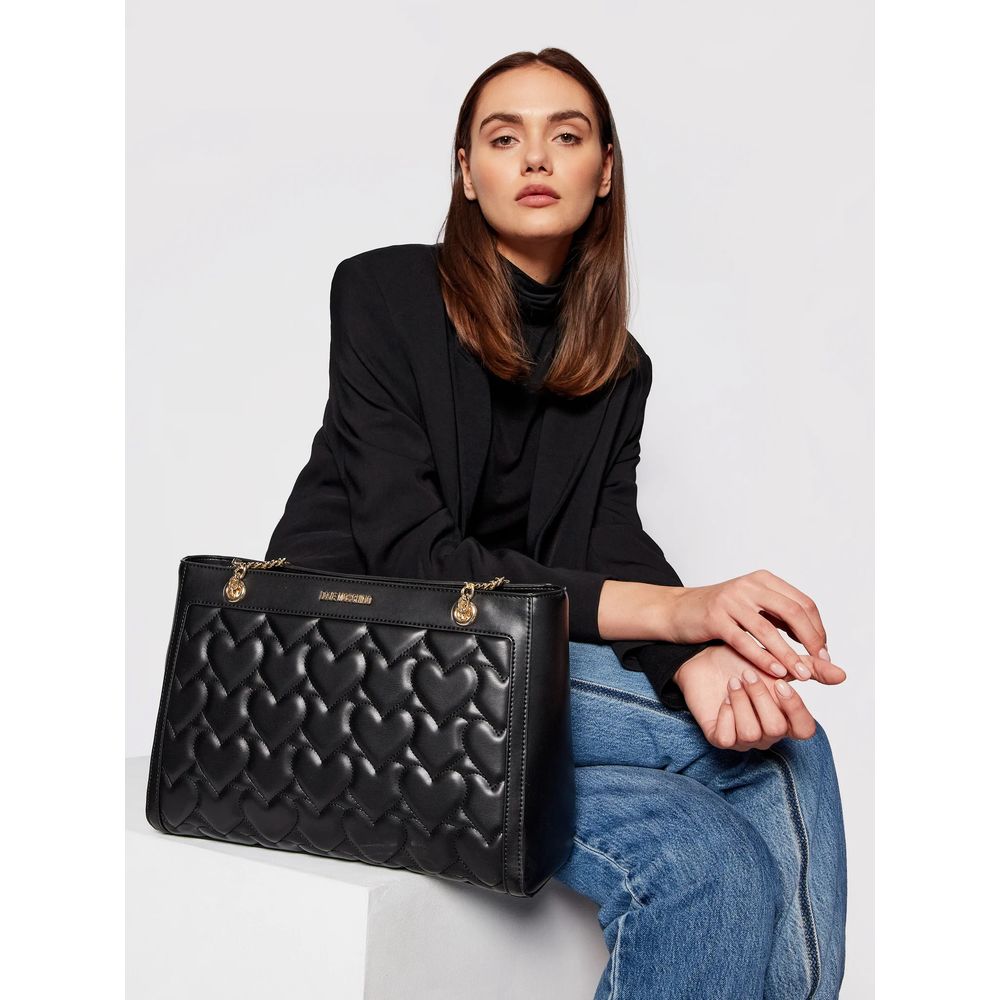 Chic Heart Motif Faux Leather Shopper