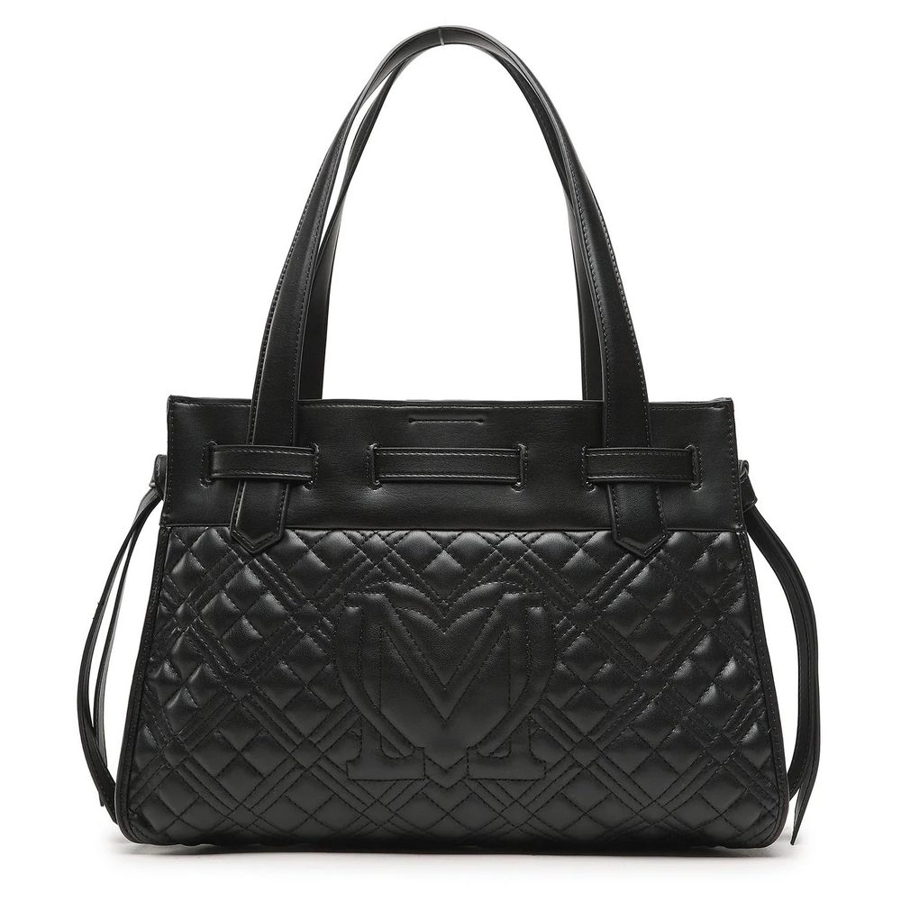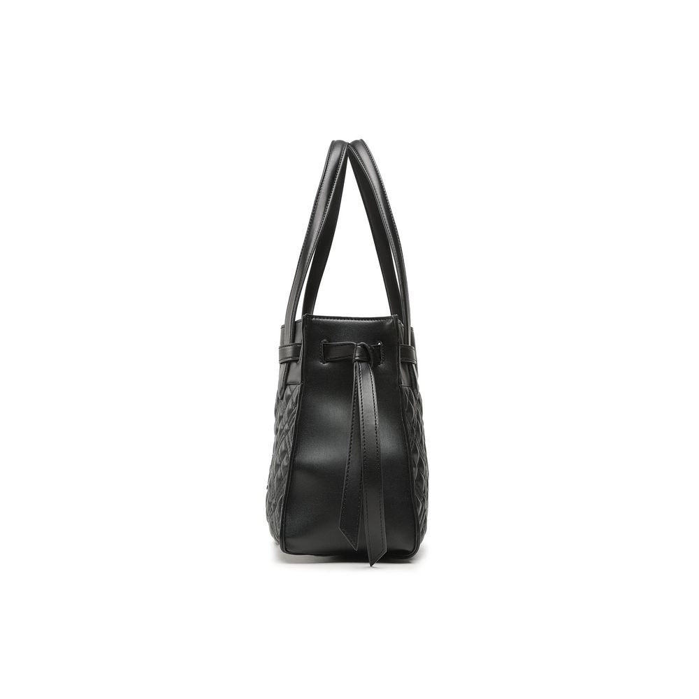 Step up your accessory game with this chic quilted faux leather shopping bag, exuding elegance and practicality. The polished metal logo accentuates the front while gold hardware adds a touch of luxe. Perfectly sized for all your essentials, it will accompany you from a day at the office to an evening out.