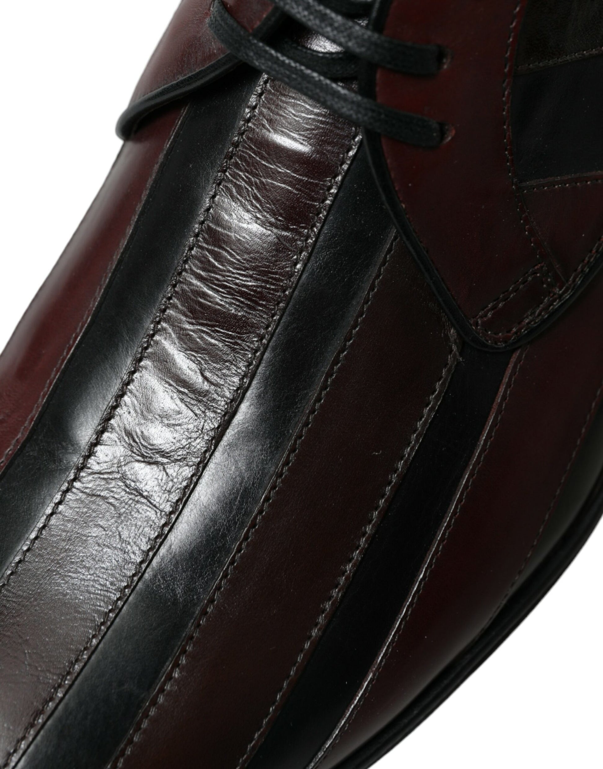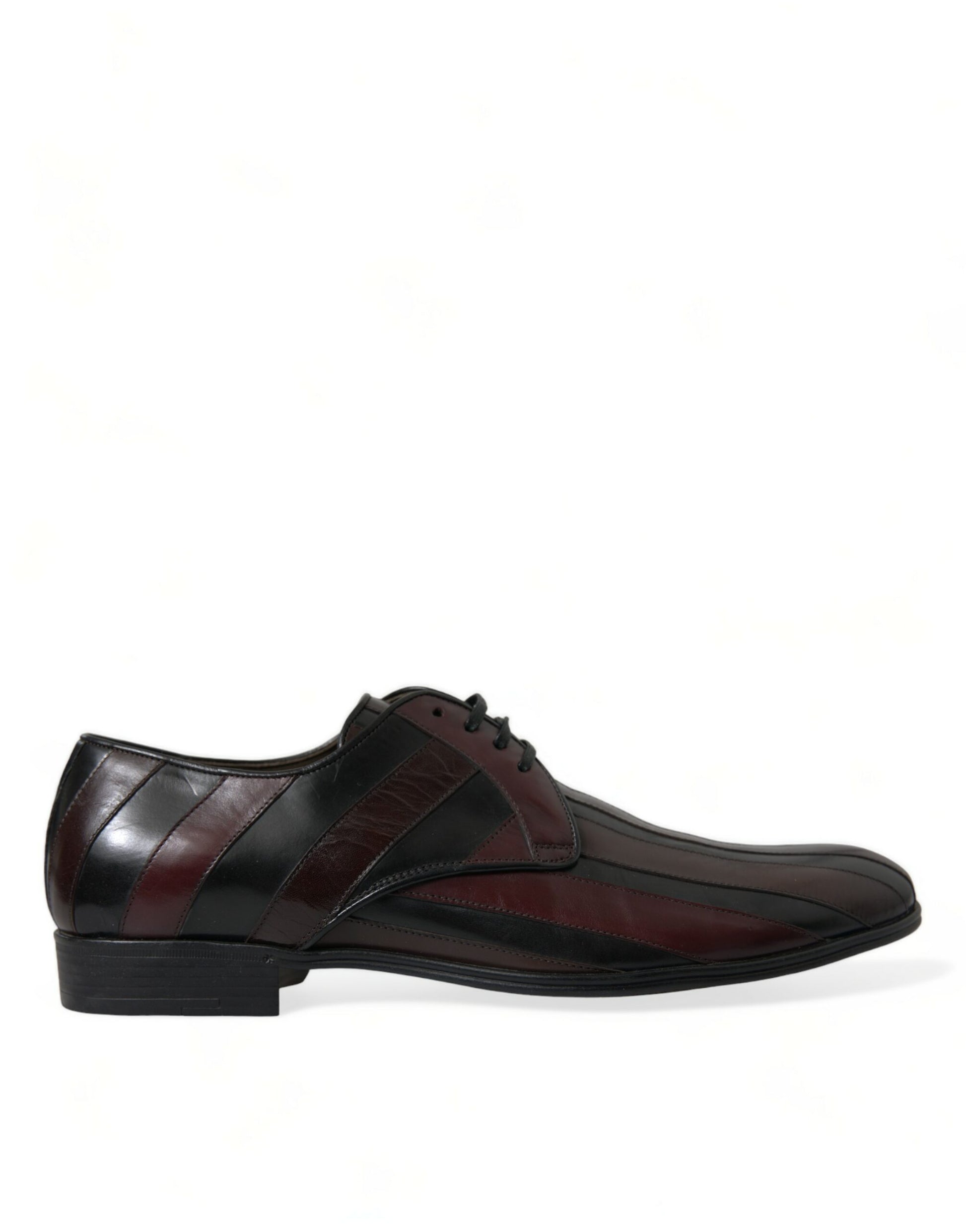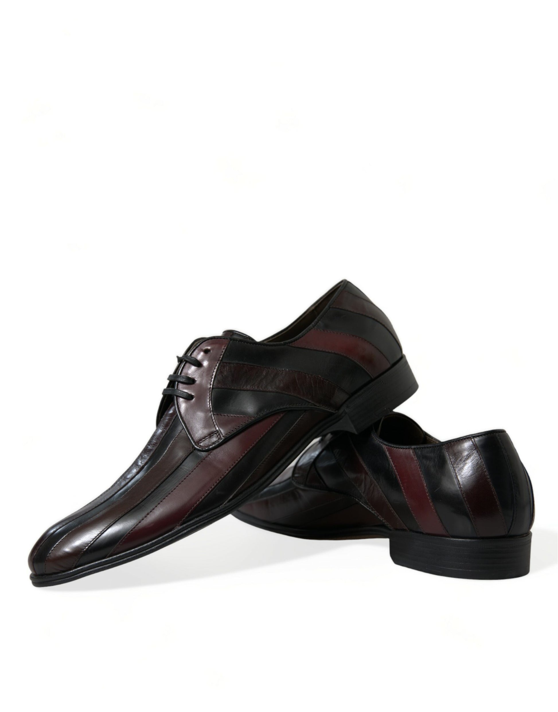 Discover the epitome of sophistication with these Dolce & Gabbana formal shoes. Crafted from premium leather featuring a refined striped pattern in maroon and black, these shoes exude elegance and luxury. With meticulous Italian craftsmanship and detailed logo accents, they are the perfect choice for any formal event.