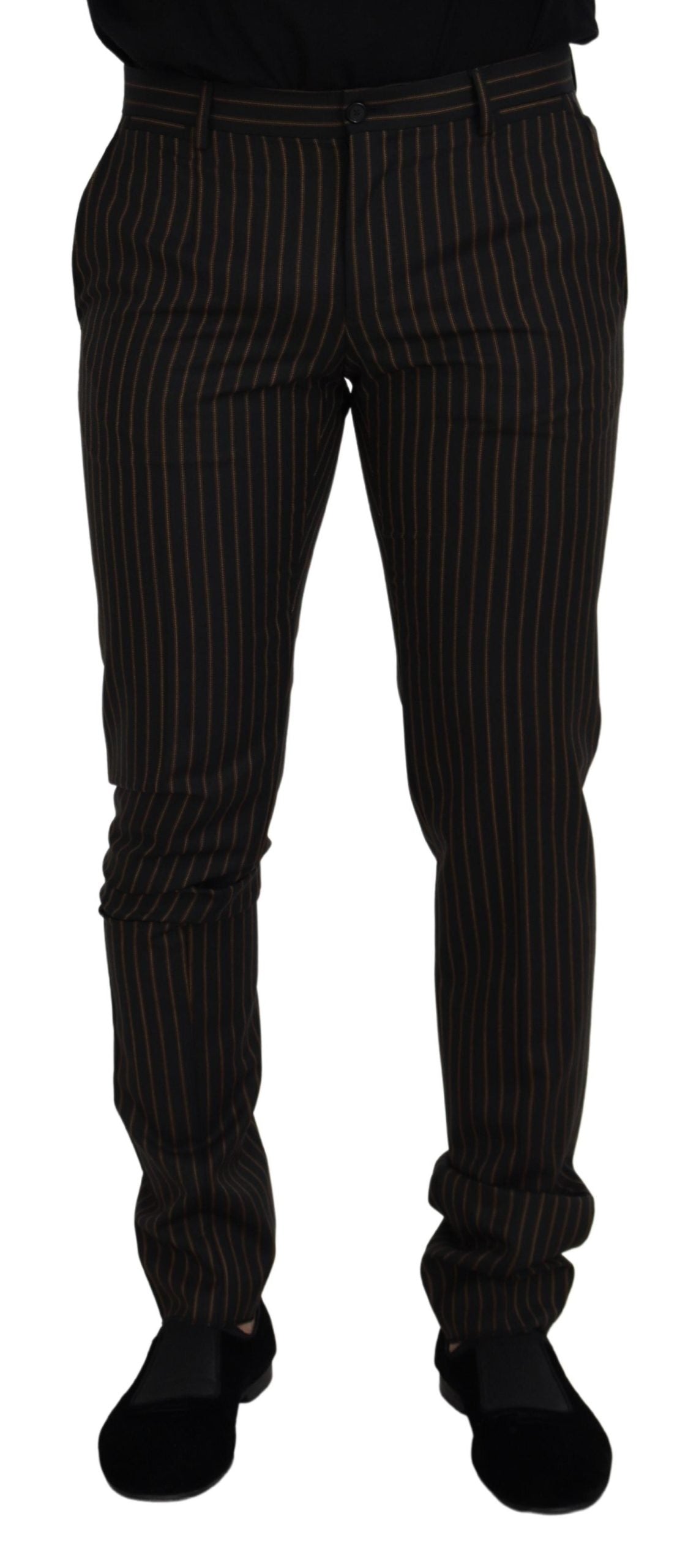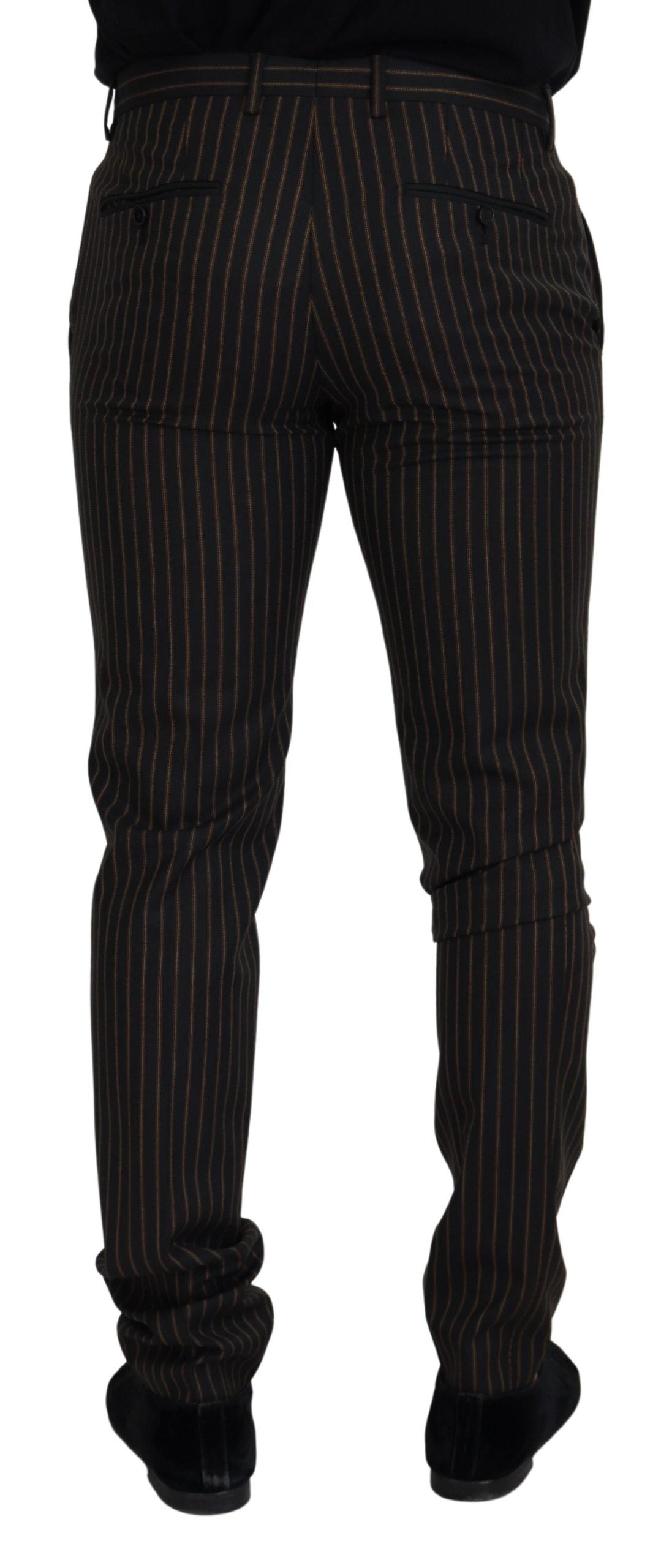 Step into the world of high-end fashion with these elegant striped pants, crafted by the luxurious Dolce & Gabbana. These pants are the epitome of style with a unique blend of comfort and sophistication, perfect for those who appreciate the finer things in life. The exquisite design showcases the iconic Dolce & Gabbana attention to detail, making it a must-have addition to your wardrobe. With their versatile black and brown hues, they are ideal for a variety of occasions, from business meetings to evening events.