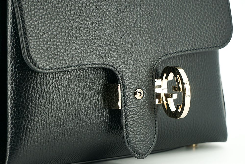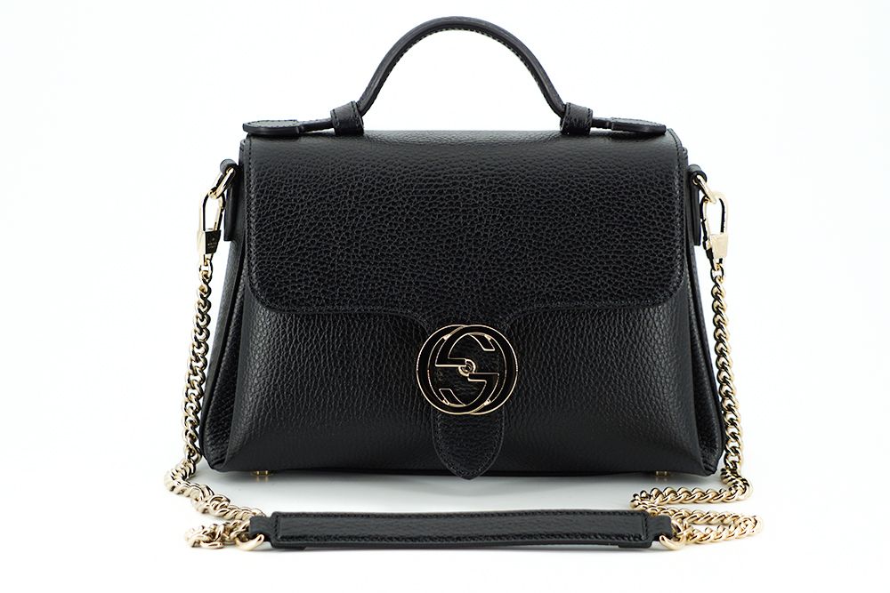 Indulge in the epitome of luxury with this pristine Gucci shoulder and handbag, fresh from the boutique with its original tags and a protective dust bag. Crafted from the finest calf leather, this black bag is an accessory that exudes sophistication and style. It features the iconic interlocking GG logo fastening and is adorned with gold-toned metal hardware that elegantly complements its design. The versatile chain and leather strap allow you to carry it as a shoulder bag or crossbody, adapting to your fashion needs and occasions.