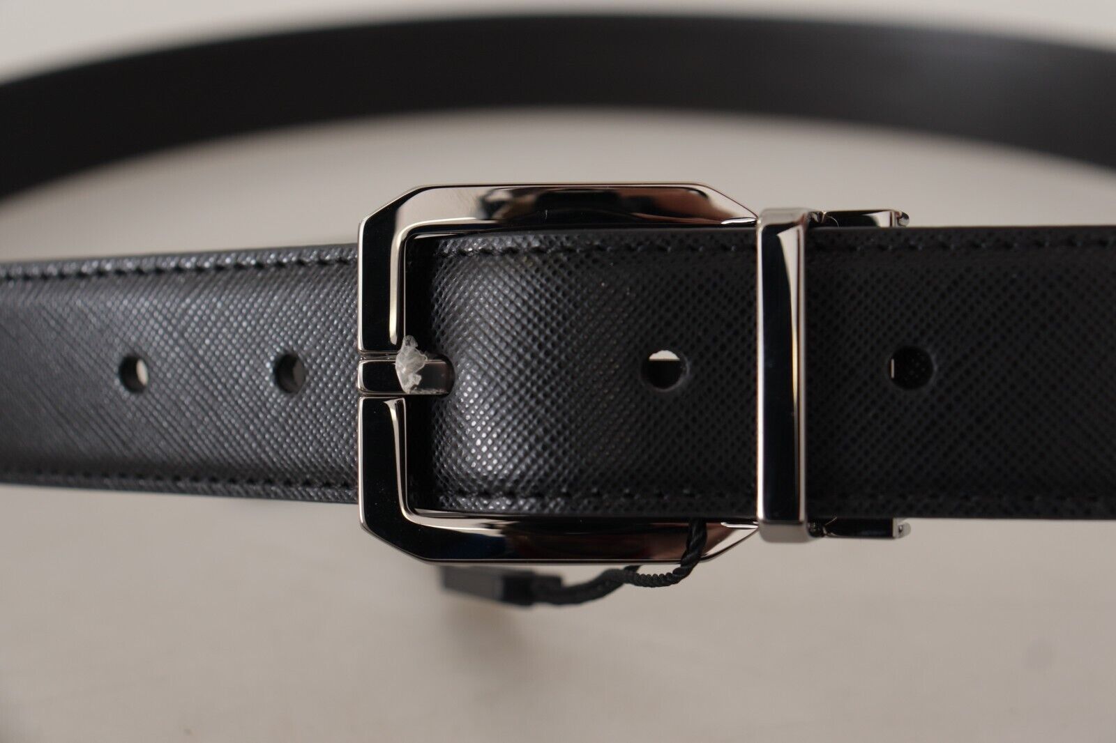 Exude sophistication with this exquisite black leather belt from the prestigious house of Dolce & Gabbana. Crafted with the finest materials, this belt is not only a symbol of style but also a testament to enduring quality. Adorned with a chic metal buckle, it’s the perfect accent to complete your ensemble, whether you’re dressing up for a formal event or elevating a casual look.