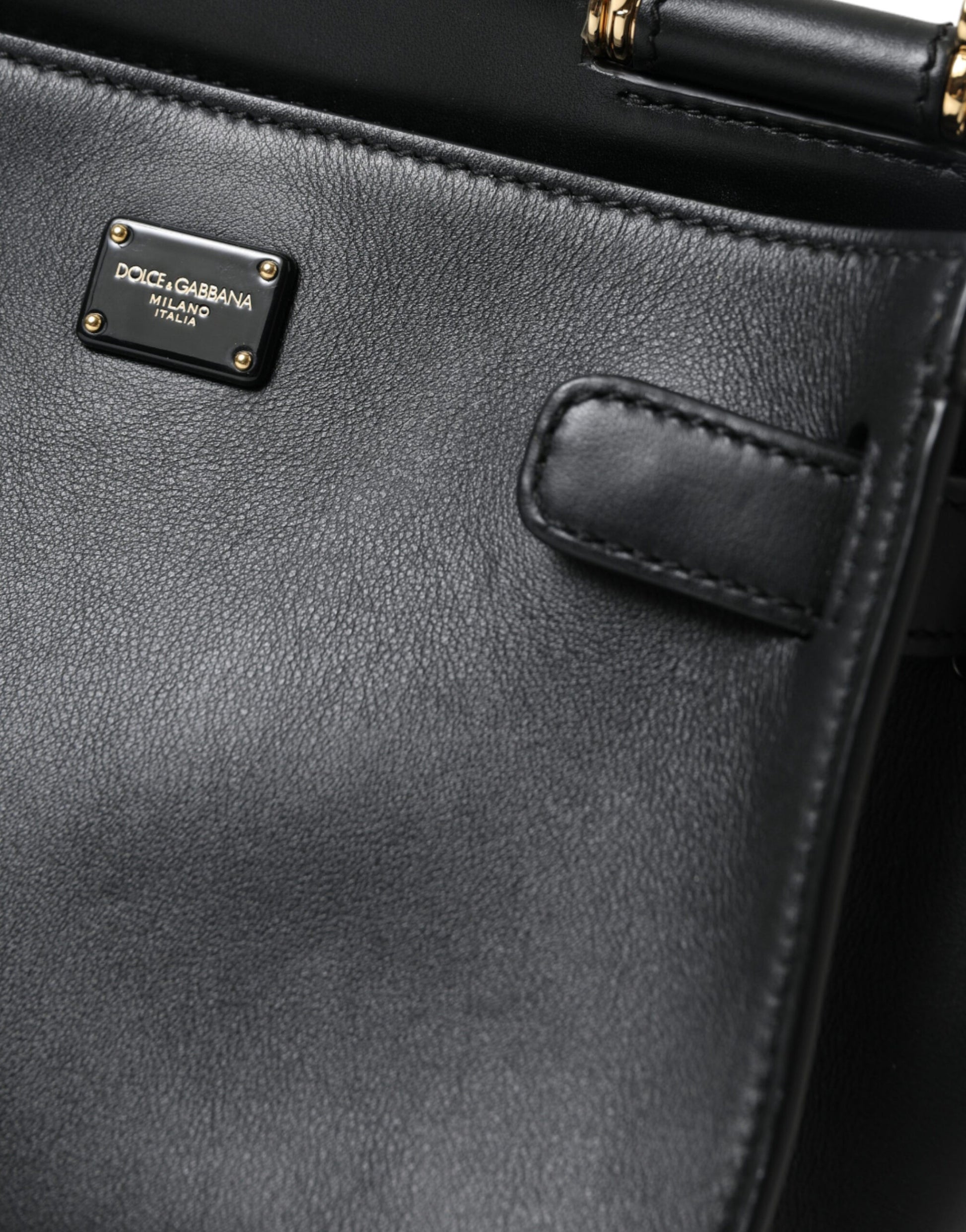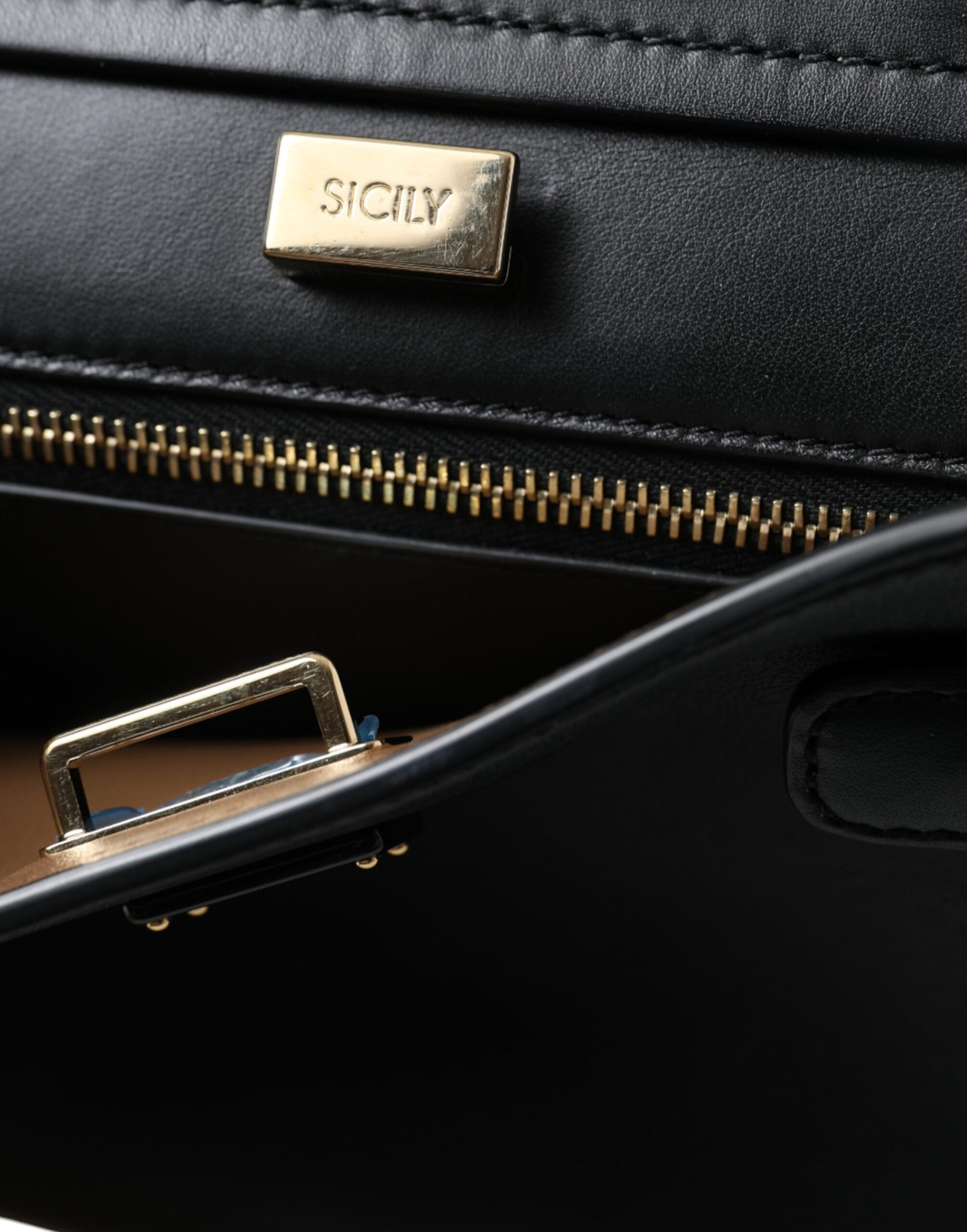 Discover sophistication with this stunning black leather shoulder bag from Dolce & Gabbana. Perfect for the fashion-forward individual, this bag features a luxurious logo appliqué, complemented by gold-tone metal hardware. The Sicily 62 model boasts exquisite craftsmanship, made with 100% calf leather, ensuring both durability and elegance. It’s equipped with a convenient half-round handle, alongside a detachable and adjustable shoulder strap for versatile styling. The bag’s interior is thoughtfully designed with one main compartment and an internal zip pocket lined in sleek black.