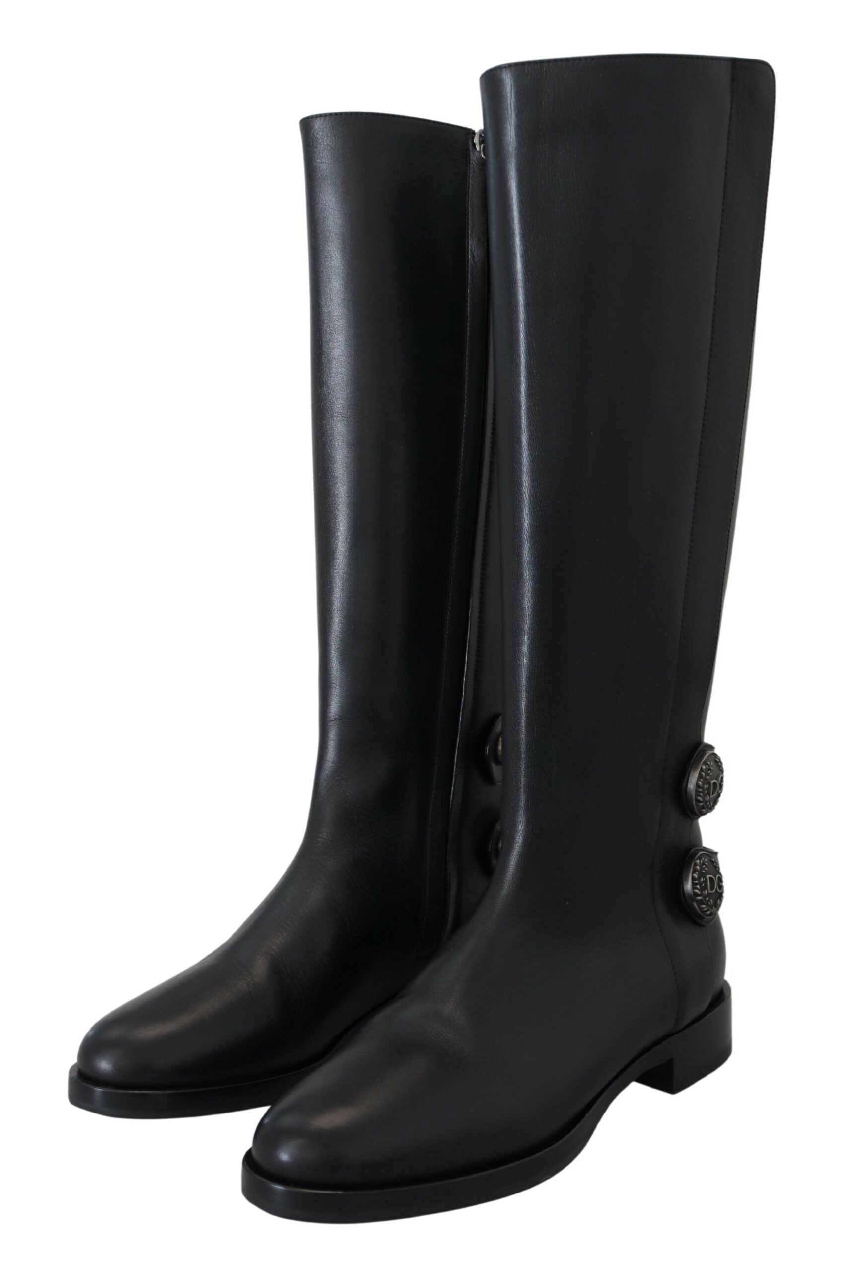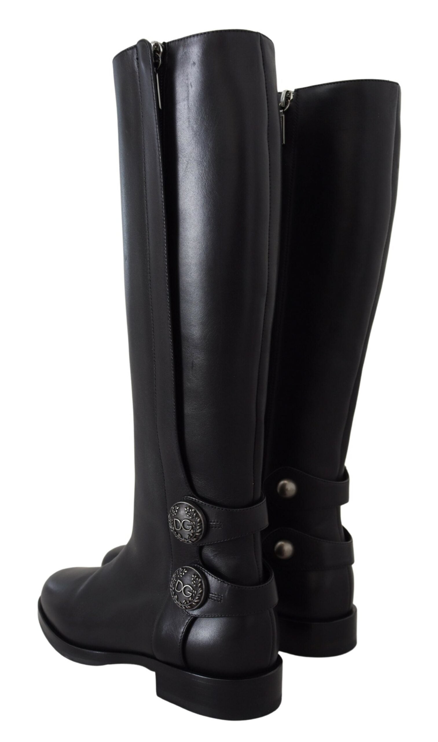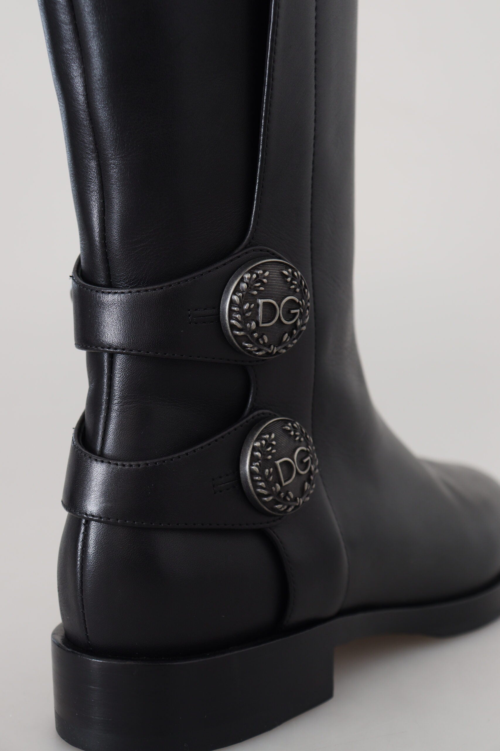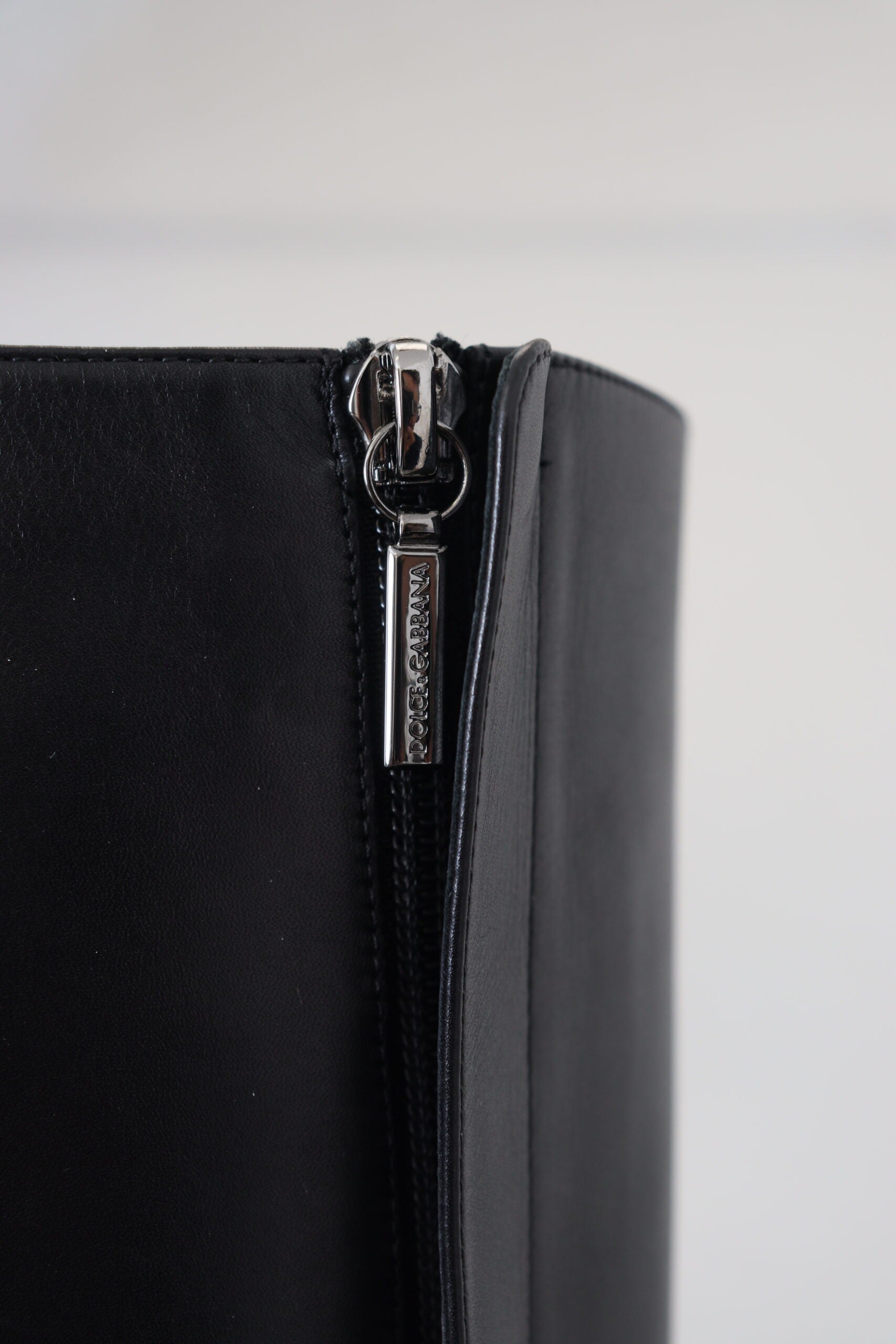 Experience the epitome of Italian luxury and style with these exquisite black calfskin biker boots from Dolce & Gabbana . Each pair is brand new with tags, ensuring authenticity and premium quality. These boots are designed not just for their stunning looks but also for comfort, featuring an easy-to-use zipper closure. The refined leather sole and meticulous logo details add an extra touch of glamour to these versatile booties.