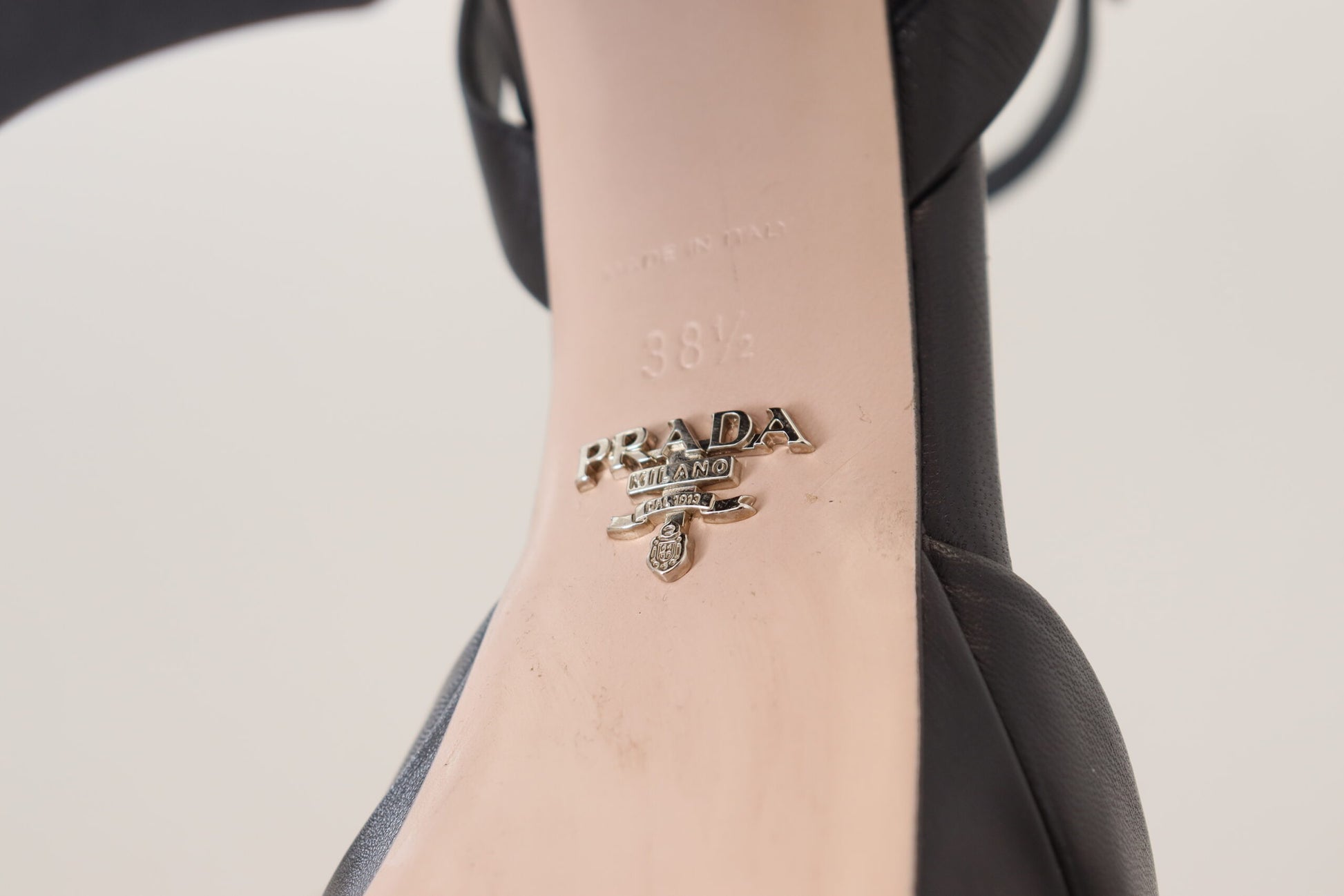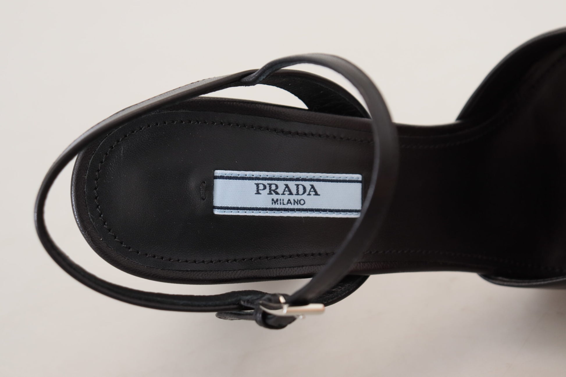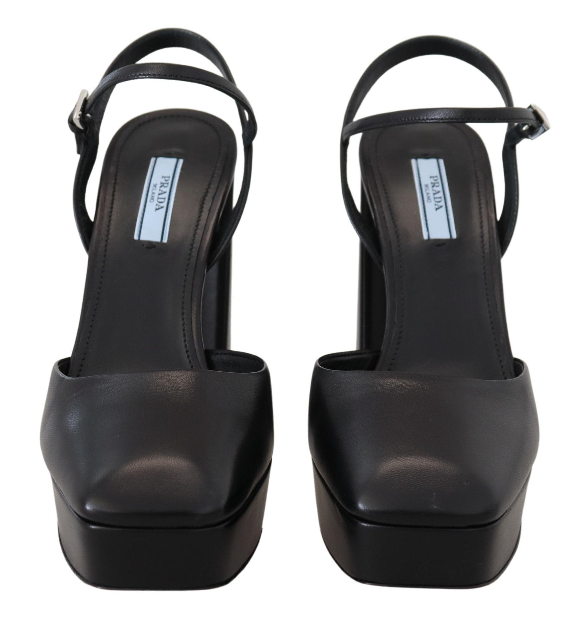 Step into luxury with these stunning block heel platform sandals, fresh from the high-fashion houses of Italy. These 100% Authentic Prada beauties are brand new with tags, representing the pinnacle of style and craftsmanship. The sleek black color and the iconic Prada logo detailing add a touch of elegance to any outfit, making these sandals a must-have for any fashion-forward wardrobe.