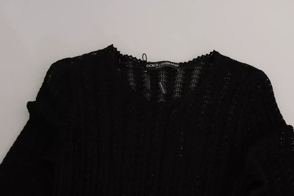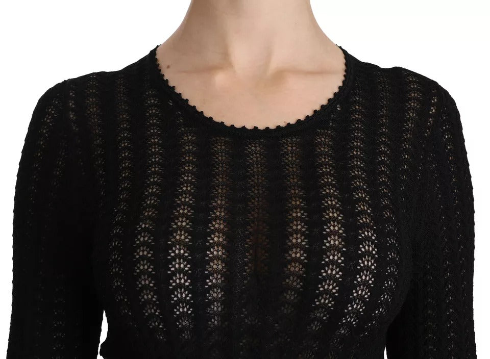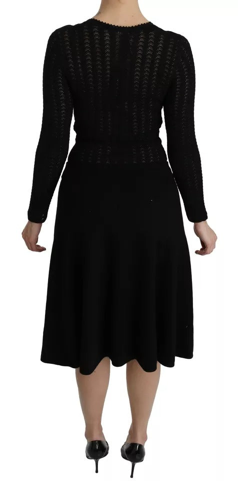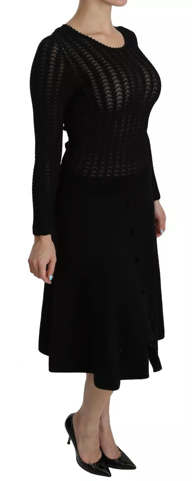 Black Cashmere Long Sleeve Sheath Midi Dress
