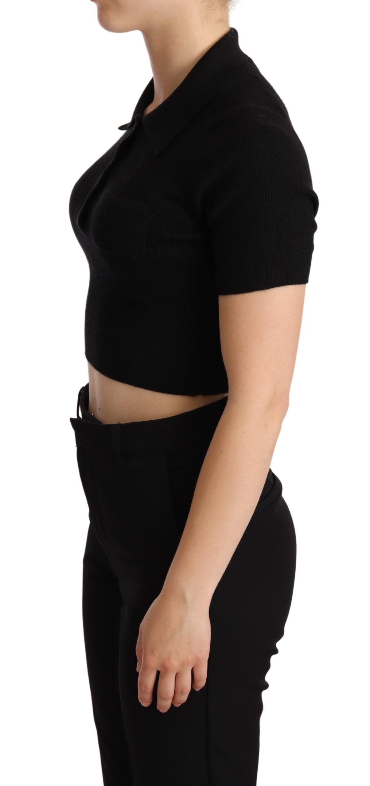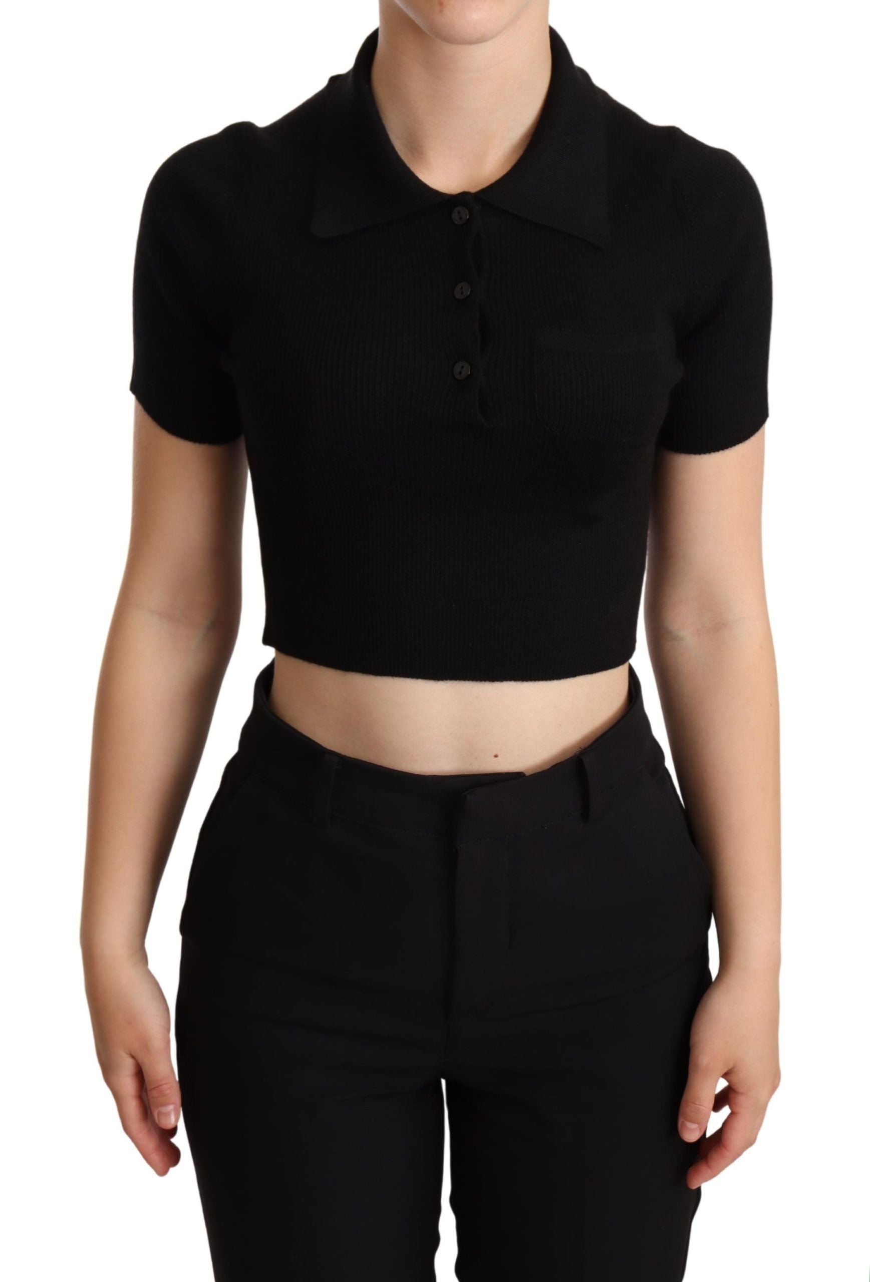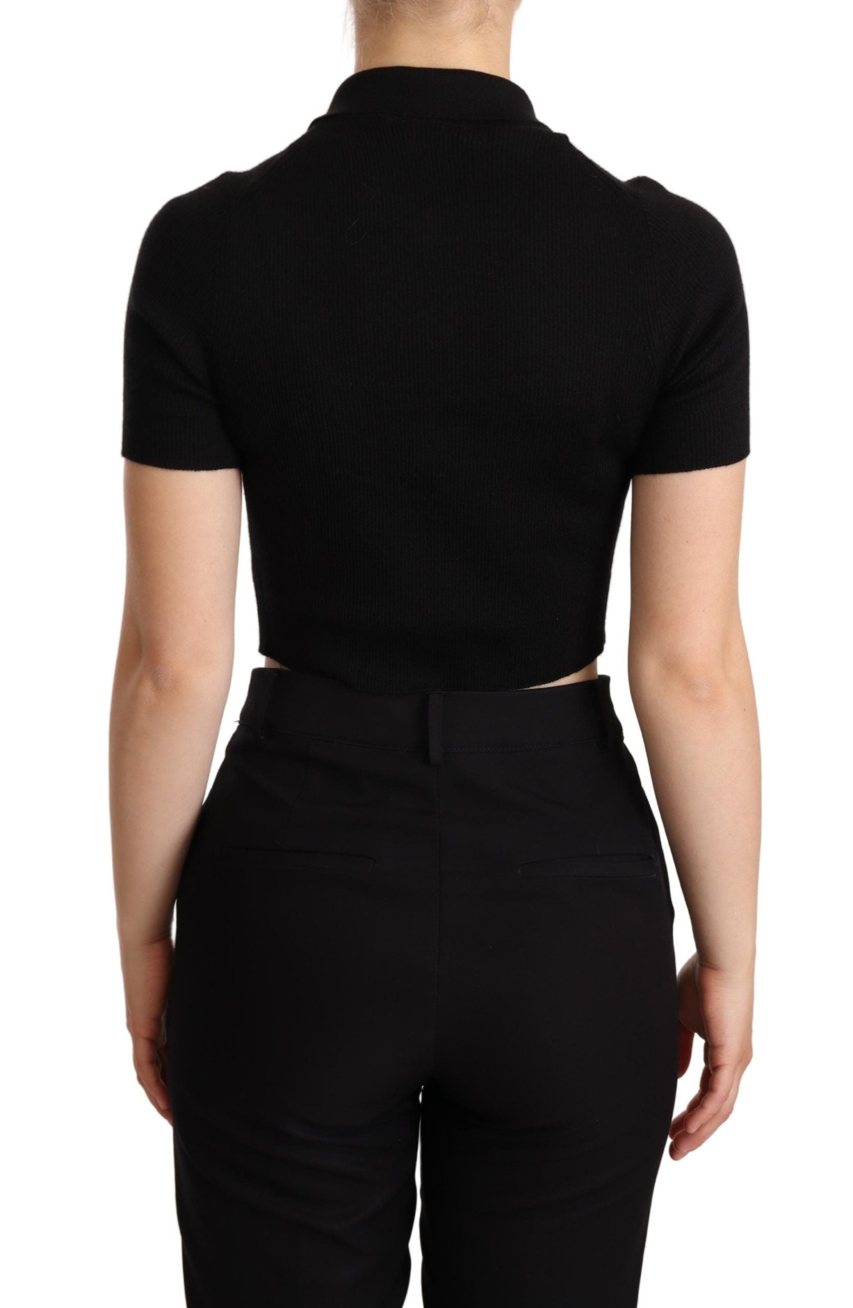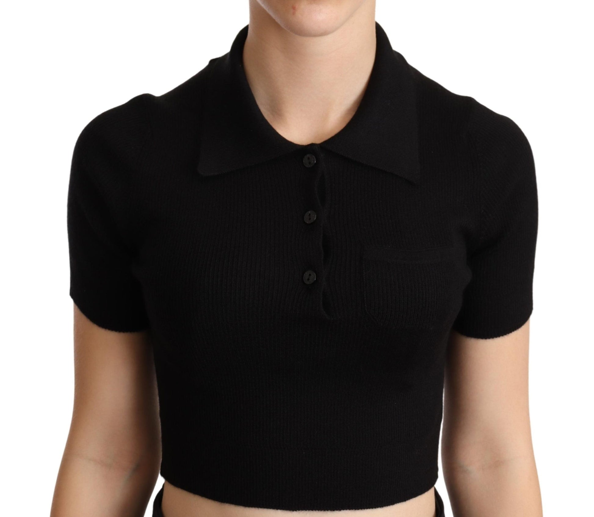 Discover the epitome of luxury with this chic Dolce & Gabbana cropped polo top. It perfectly blends the warmth of cashmere with the softness of silk, creating an exquisite piece that’s a must-have for any sophisticated wardrobe. The timeless black hue and subtle logo detailing add an air of exclusivity, while its Italian craftsmanship ensures a garment of the highest quality. It’s an elegant choice that marries comfort with high fashion sensibility.