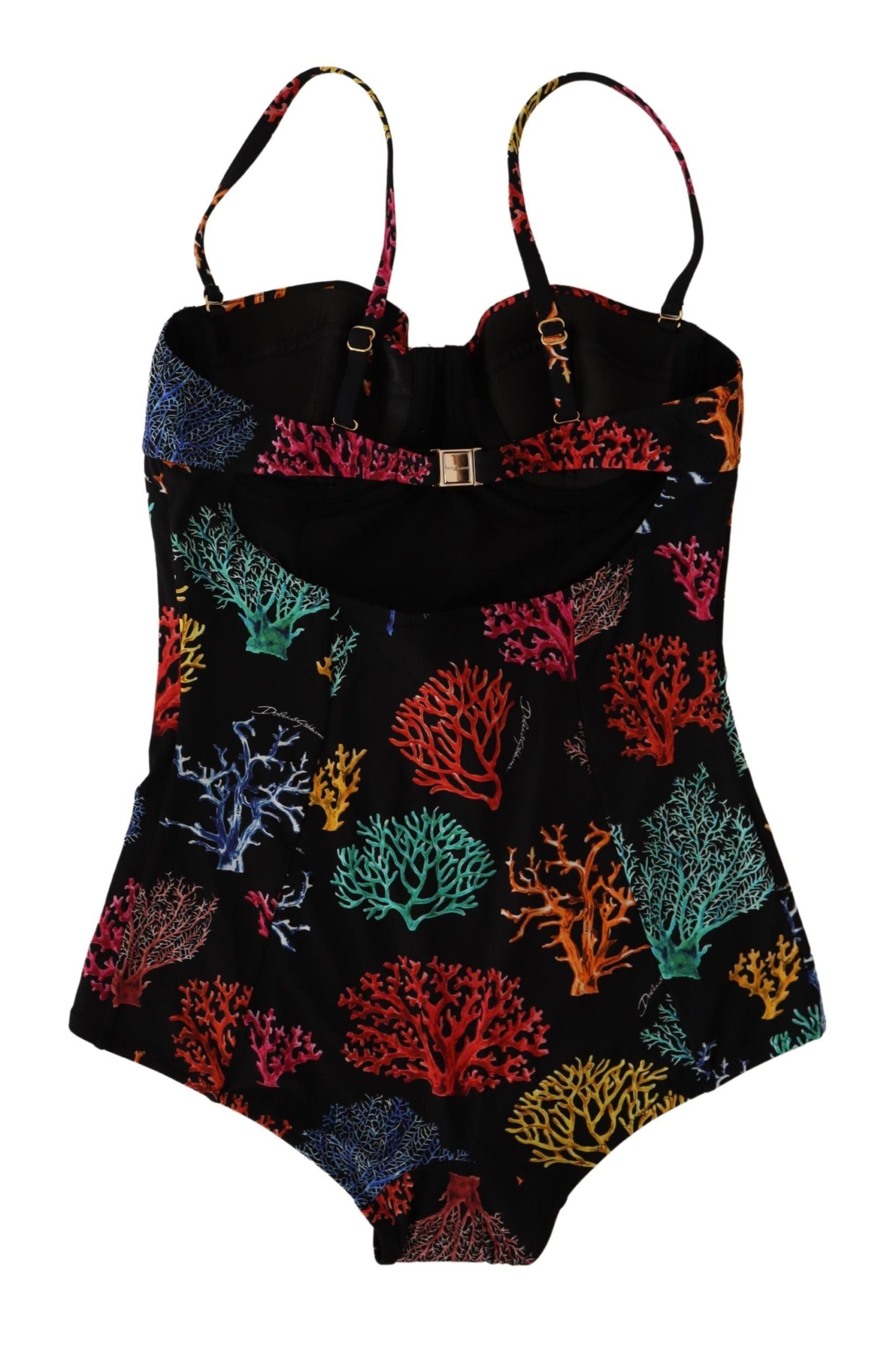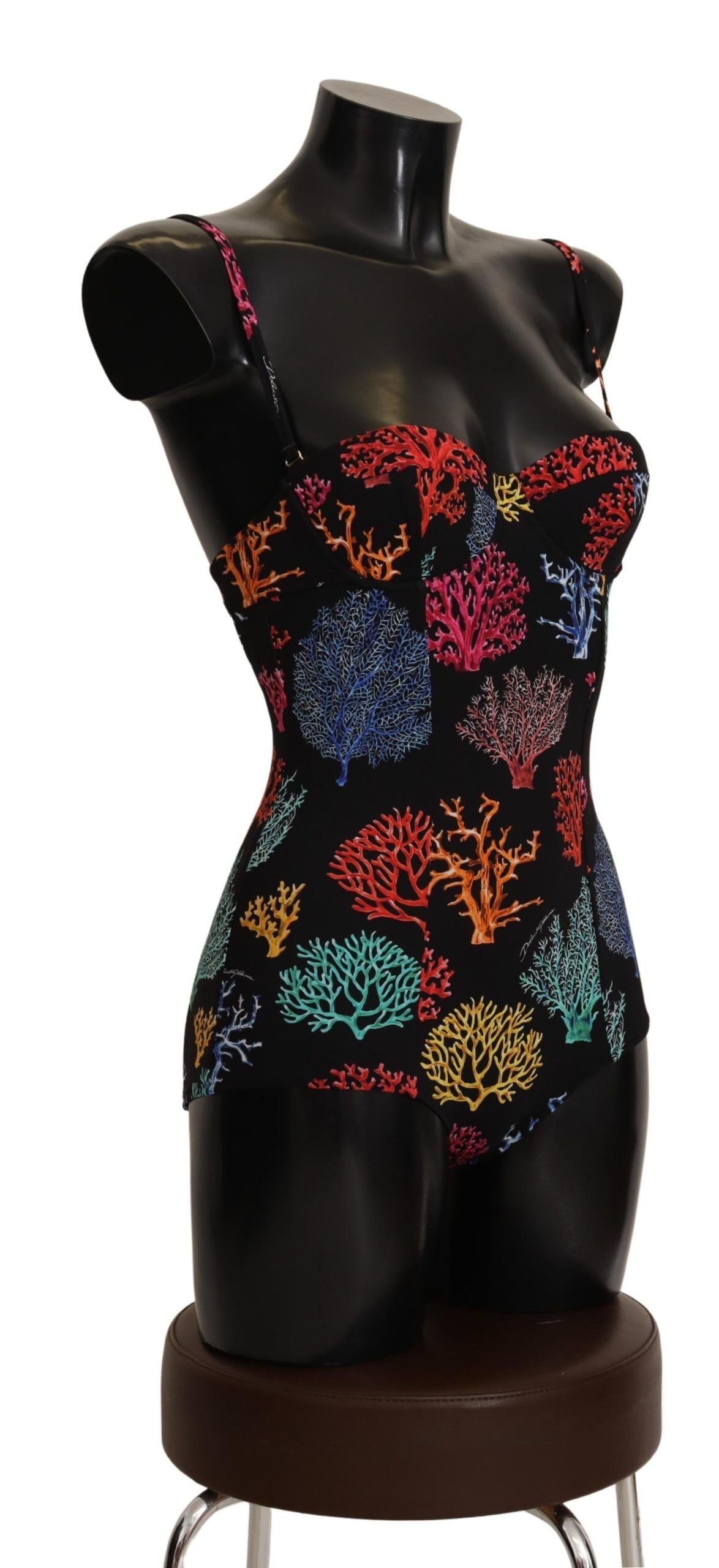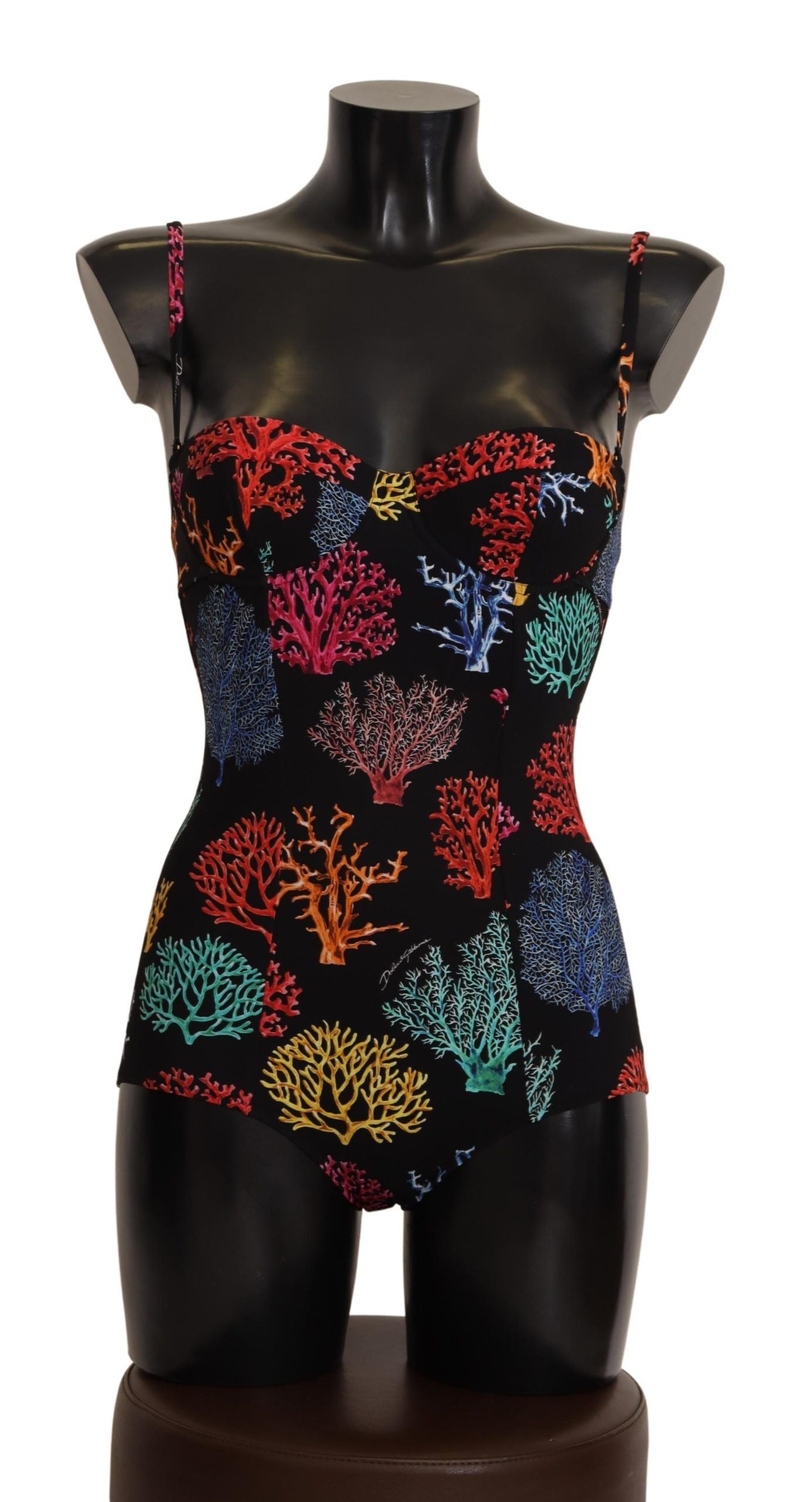 Embrace the essence of summer with this stunning Dolce & Gabbana one-piece bikini, flaunting a vibrant sea corals print on a classic black background. Designed with a blend of elasticity and comfort, this swimsuit promises to accentuate your silhouette, ensuring you make a splash in style. Perfect for a luxurious escape to the beach or a tranquil day by the pool.