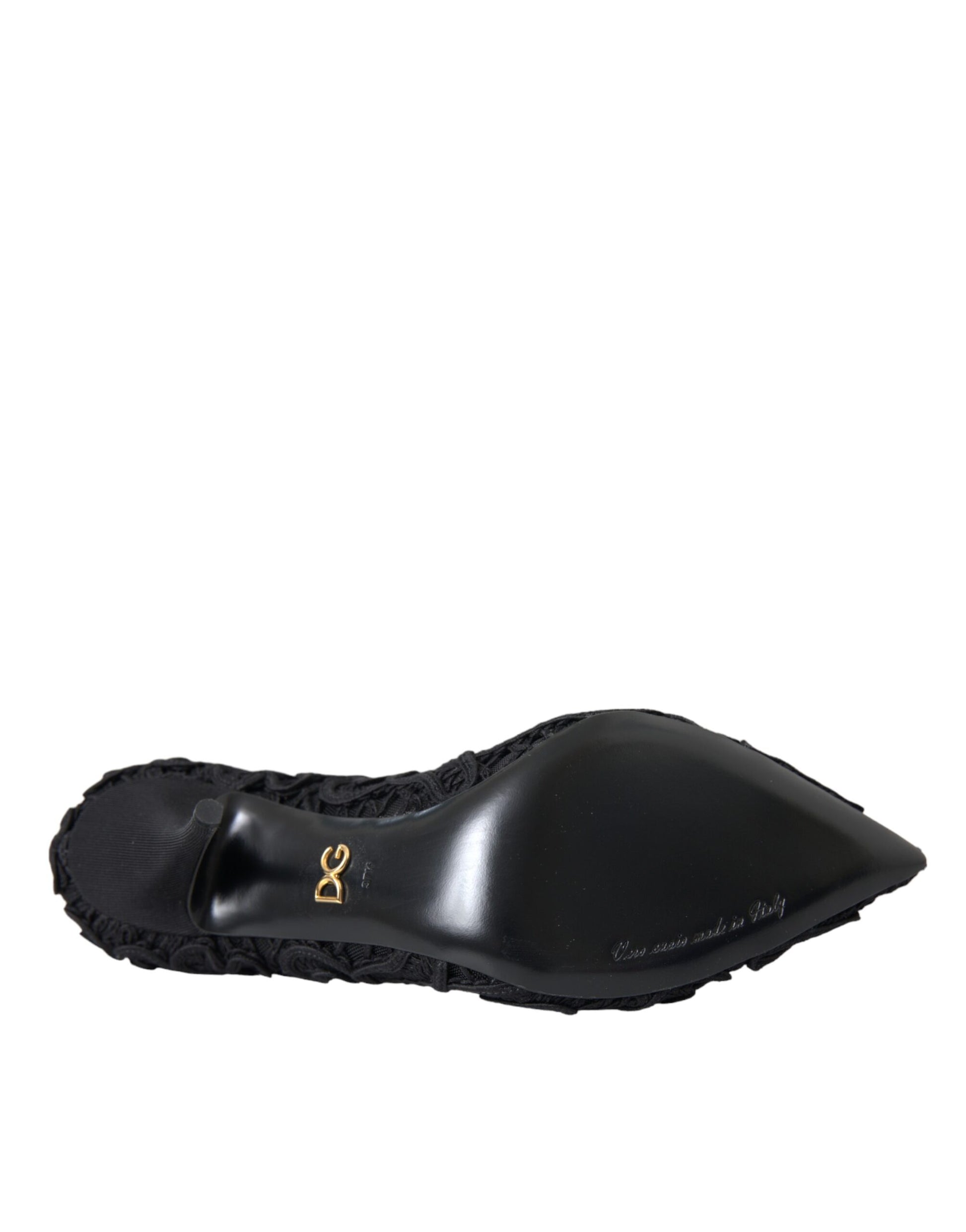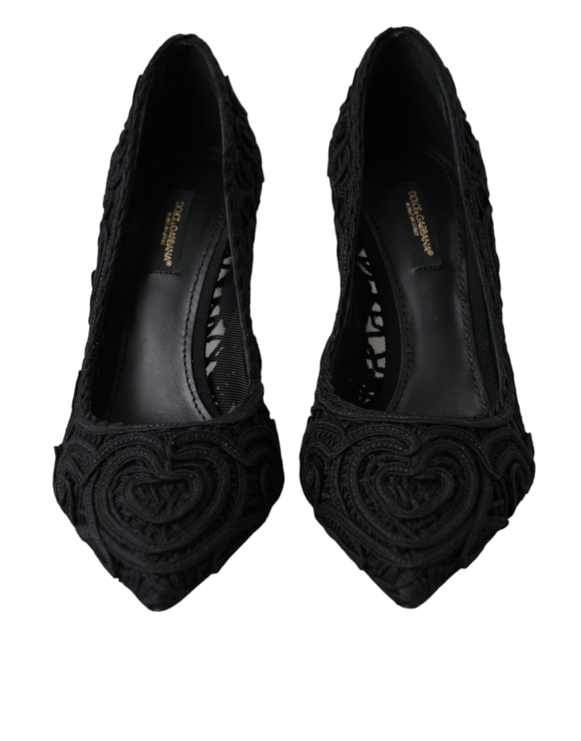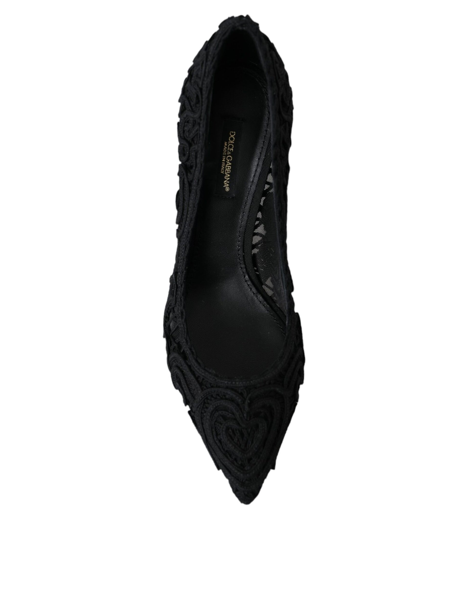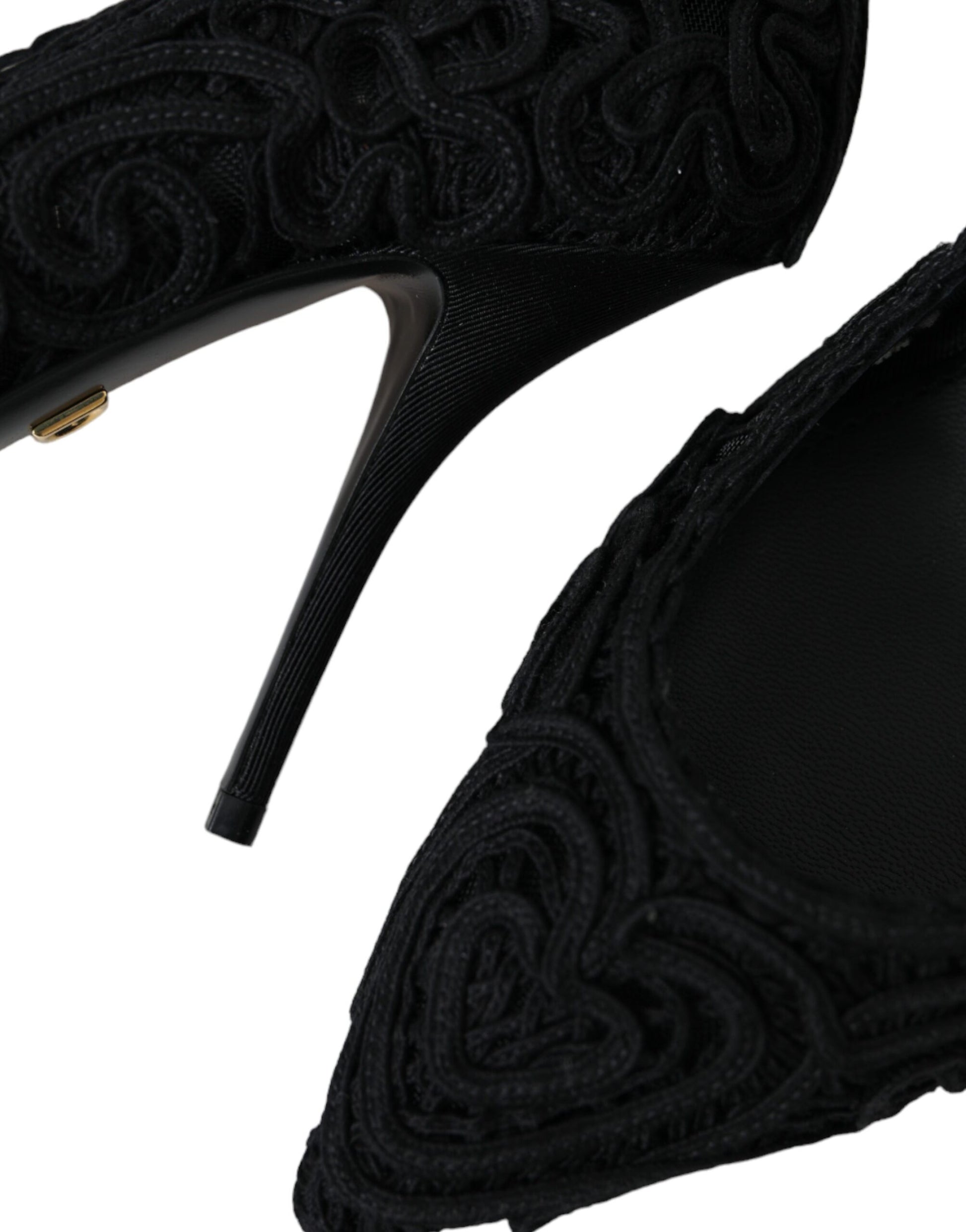 Gorgeous brand new with tags 100% Authentic Dolce & Gabbana black shoes with a high stiletto heel, an almond toe and an openwork cord ricamo.