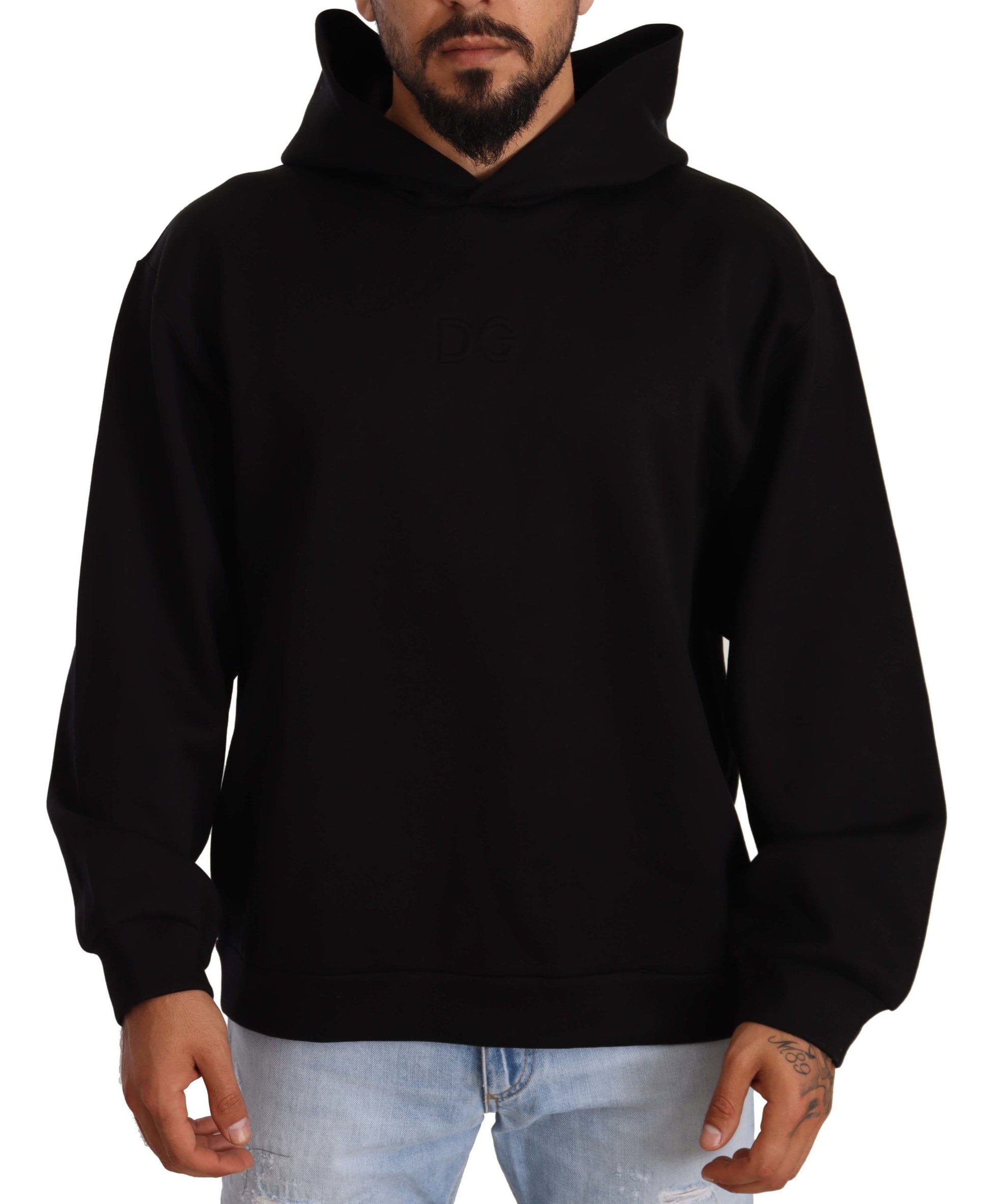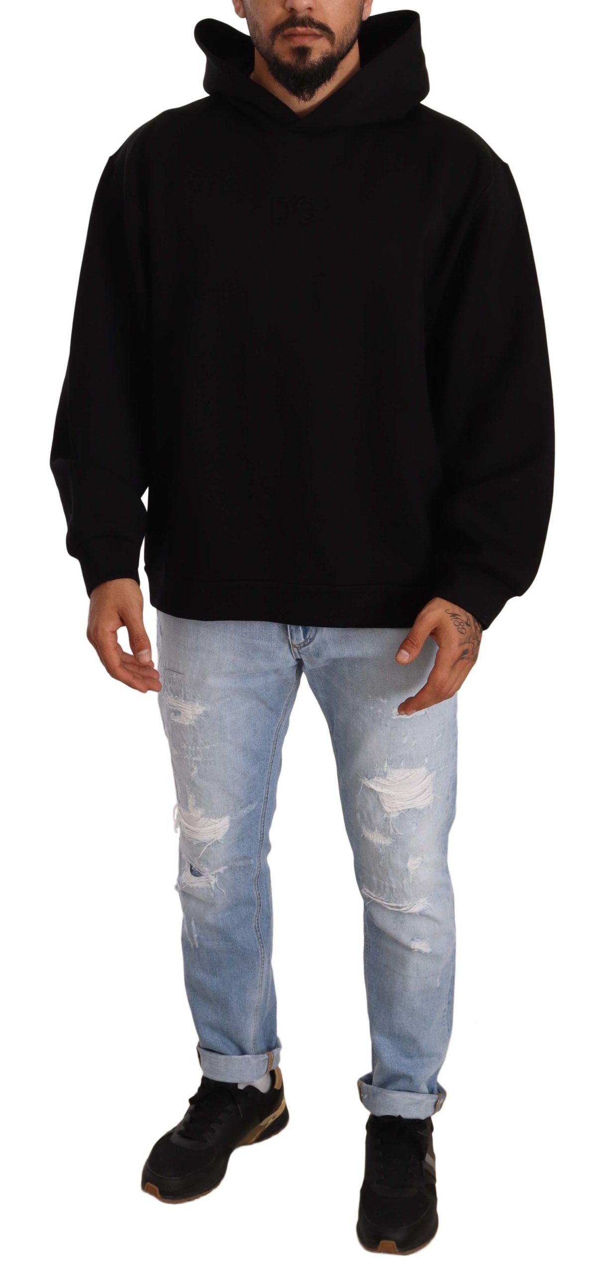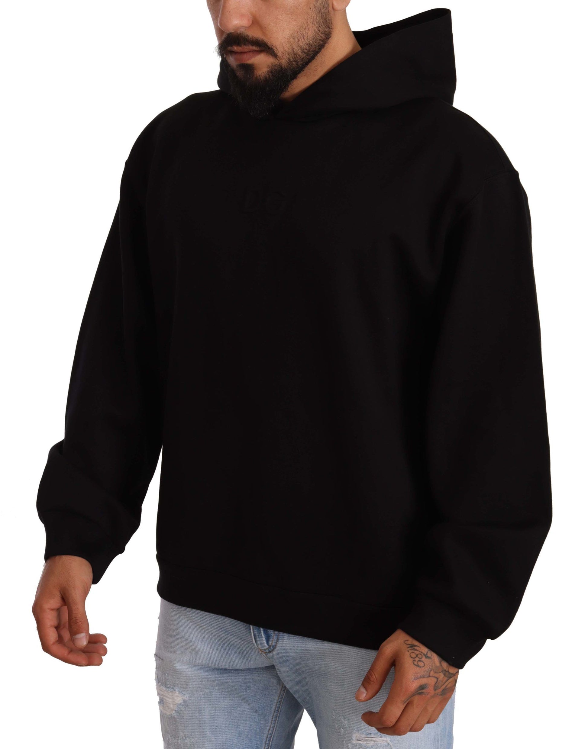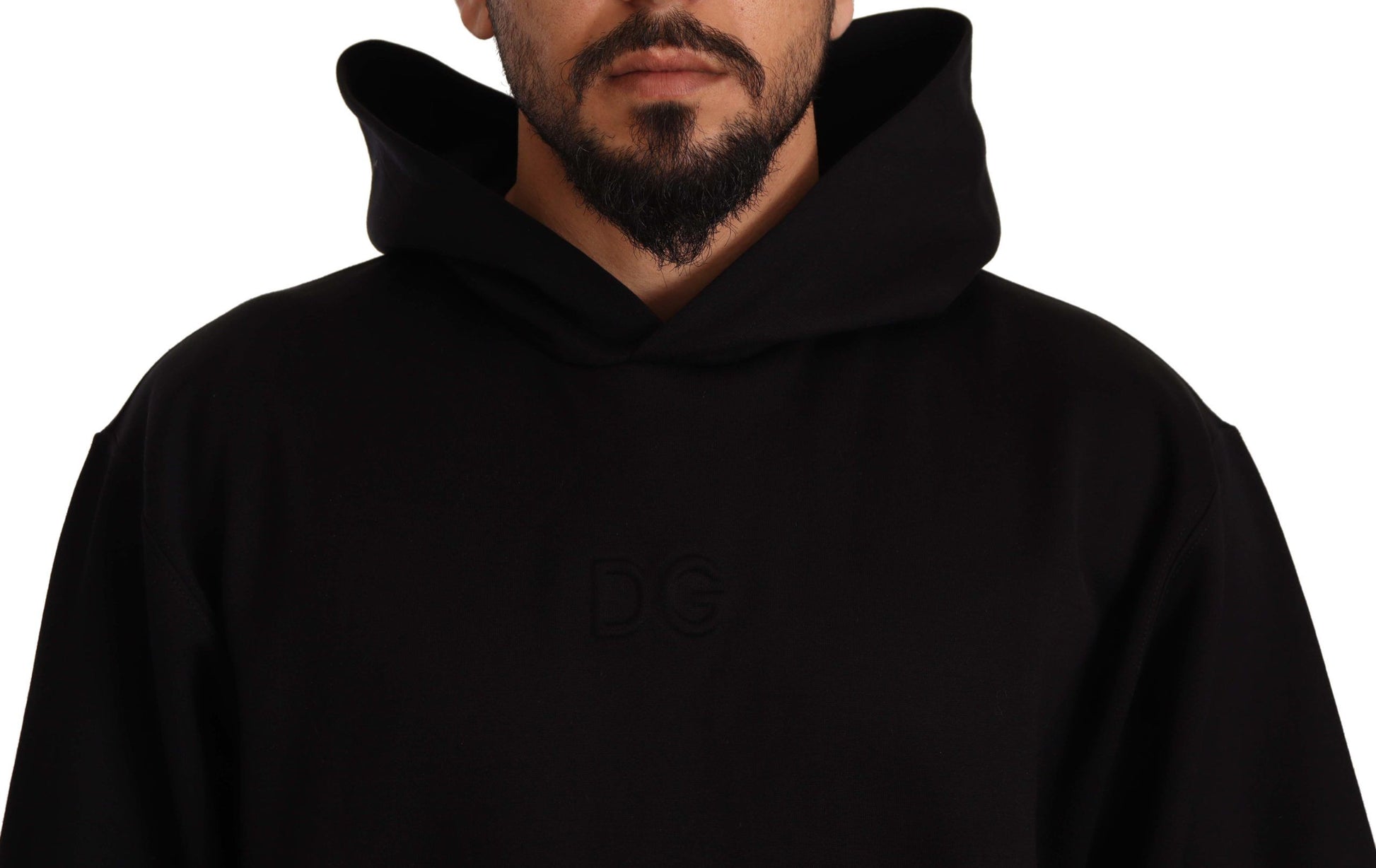 Indulge in the epitome of Italian luxury with this 100% Authentic Dolce & Gabbana hooded sweater. Its sumptuous cotton blend is crafted into a mid-weight knit, ideal for those seeking both comfort and style. Accented with refined logo details and ribbed trims, this black pullover is a timeless addition to your wardrobe.