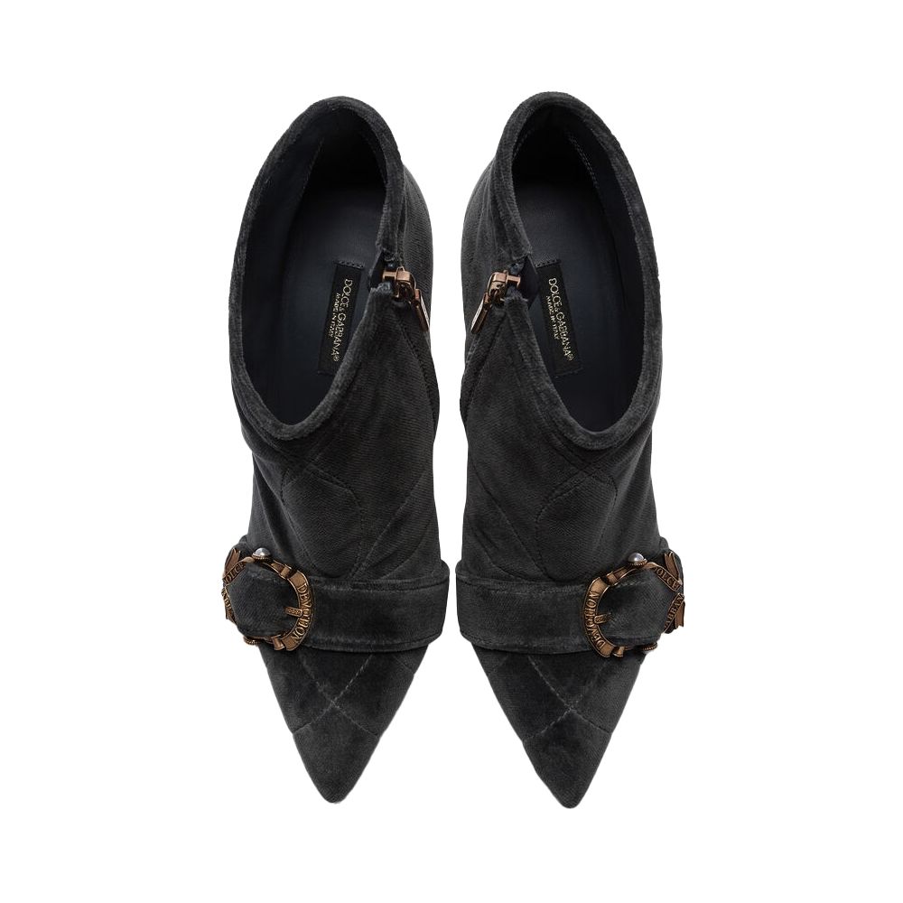 Dolce & Gabbana quilted velvet ankle boots with decorative vintage gold-plated brass buckle, leather lining and sole