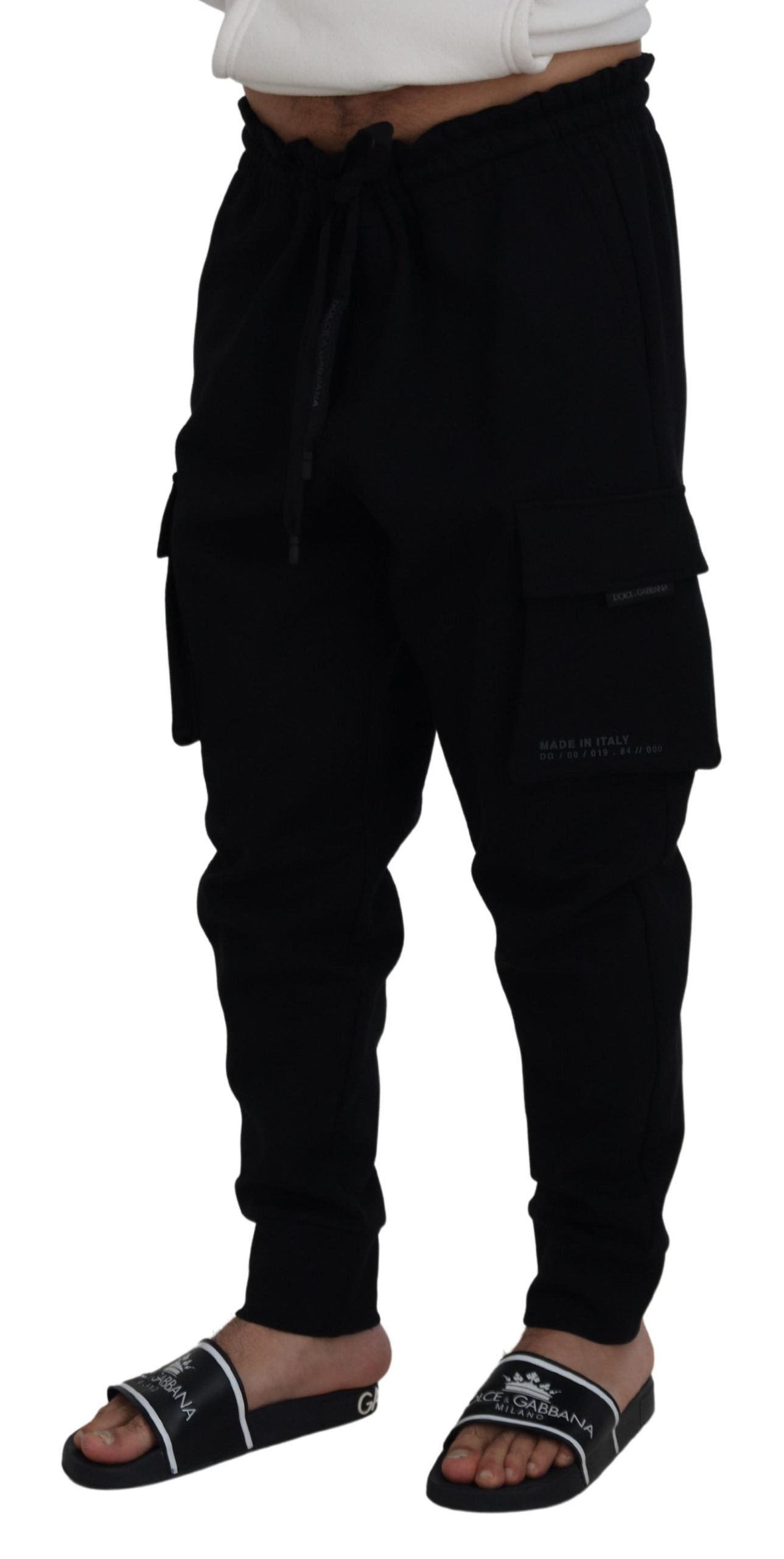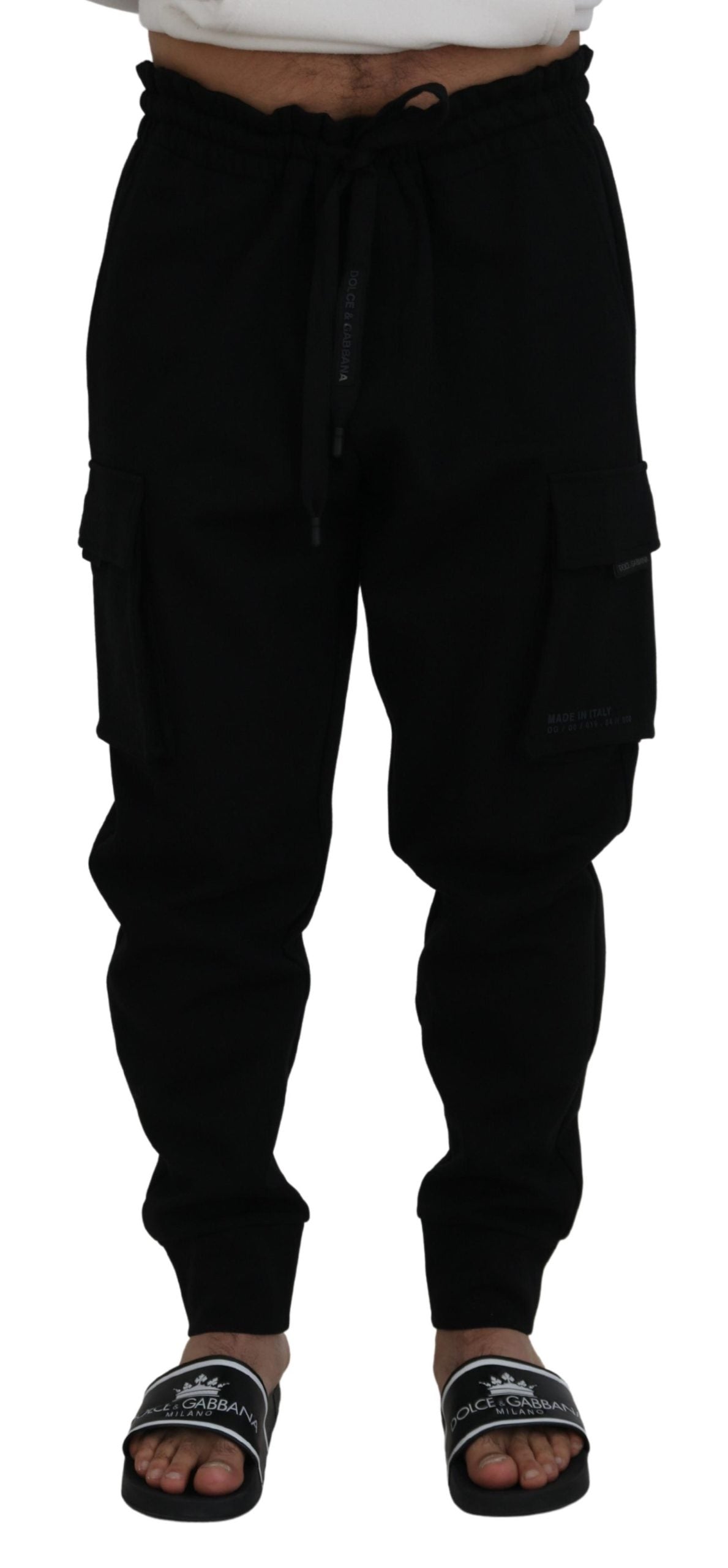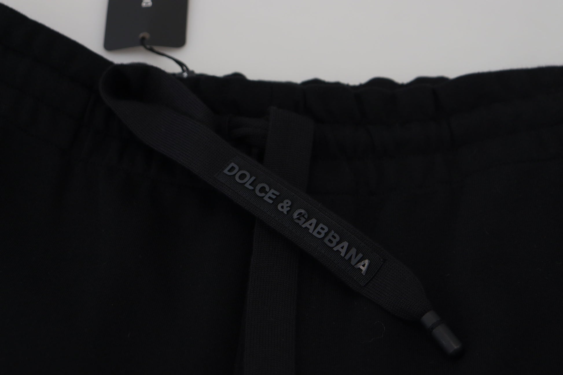 Step into luxury with these stylish and comfortable jogger pants from Dolce & Gabbana. Crafted from a premium blend of cotton and polyester, these pants are perfect for those who appreciate high-end fashion without compromising on comfort. The sleek black color ensures versatility and a timeless look, while the subtle logo detailing adds that exclusive touch of designer appeal. Perfect for a casual night out or lounging in style, these joggers are a must-have for the fashion-forward individual.