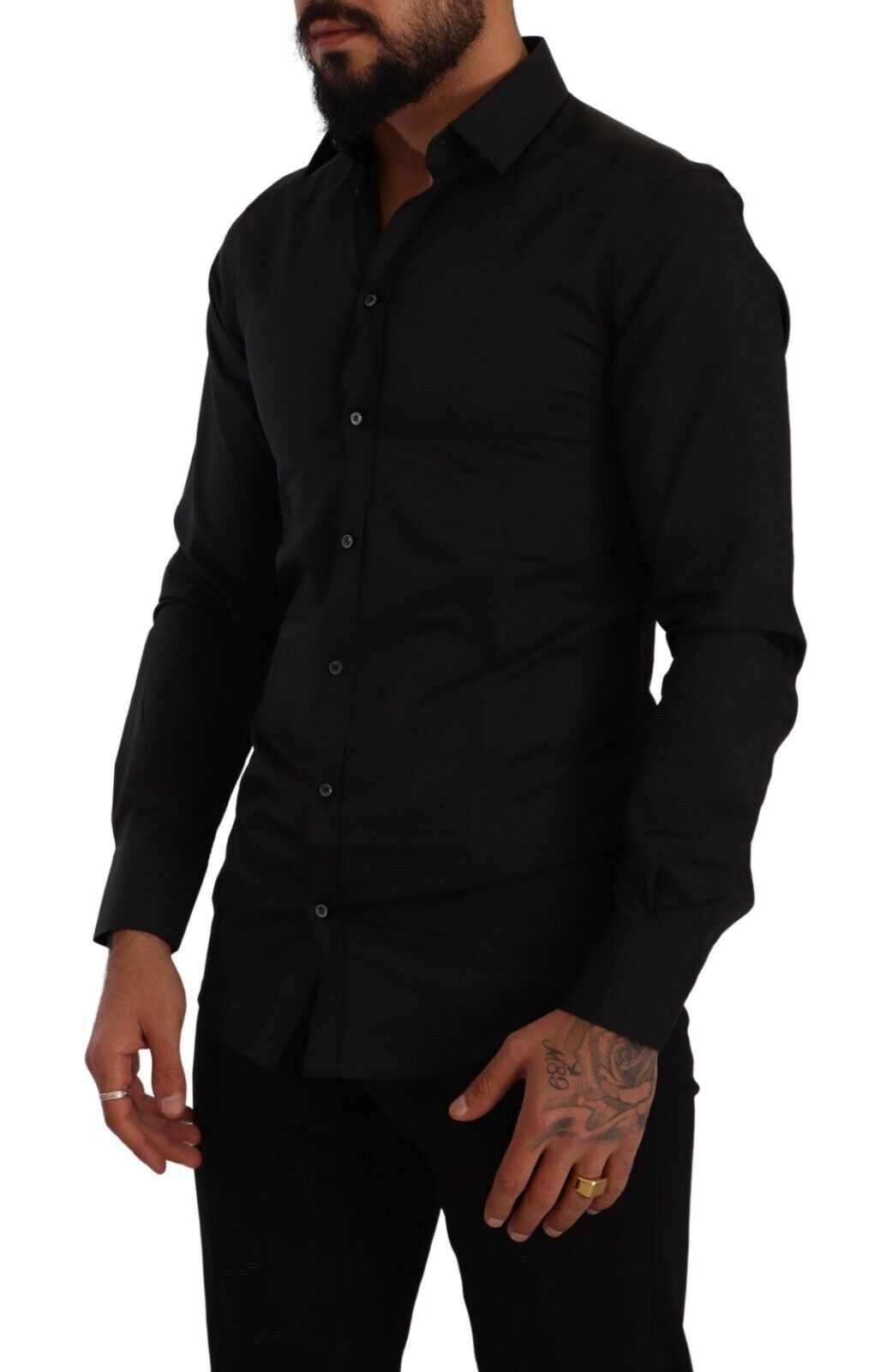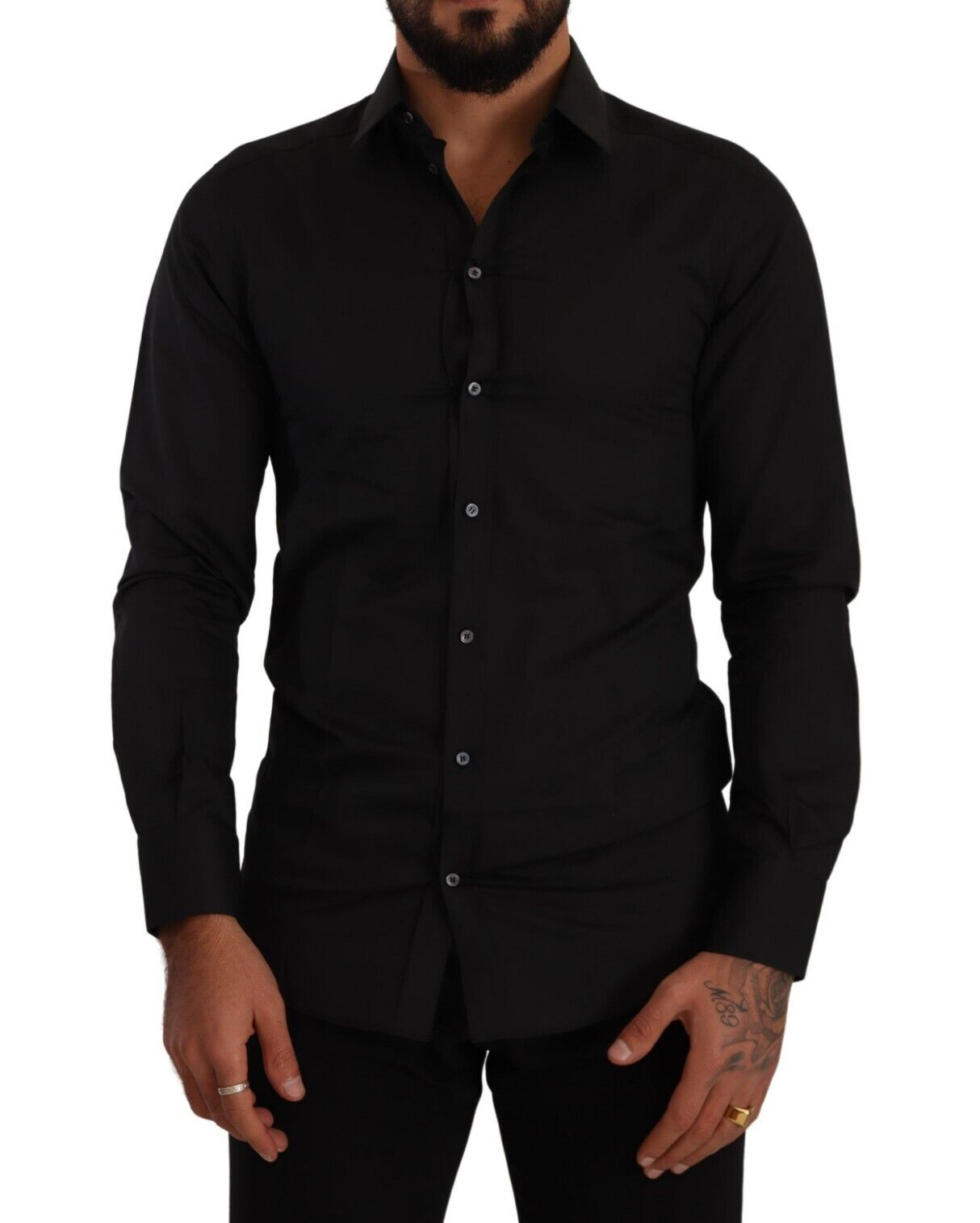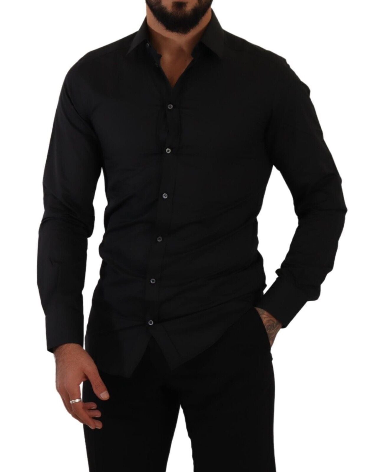 Embrace the epitome of Italian luxury with this exquisite Dolce & Gabbana dress shirt. Tailored to a slim fit, this piece reflects sophistication with its classic collar, long sleeves, and smooth button-down closure. Crafted from a sumptuous blend of cotton and silk, this shirt is designed to offer unparalleled comfort with a touch of opulence, perfect for any formal or high-end occasion.