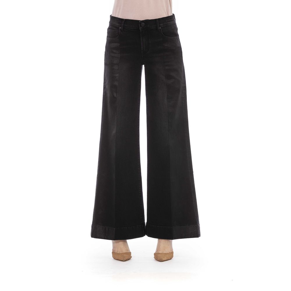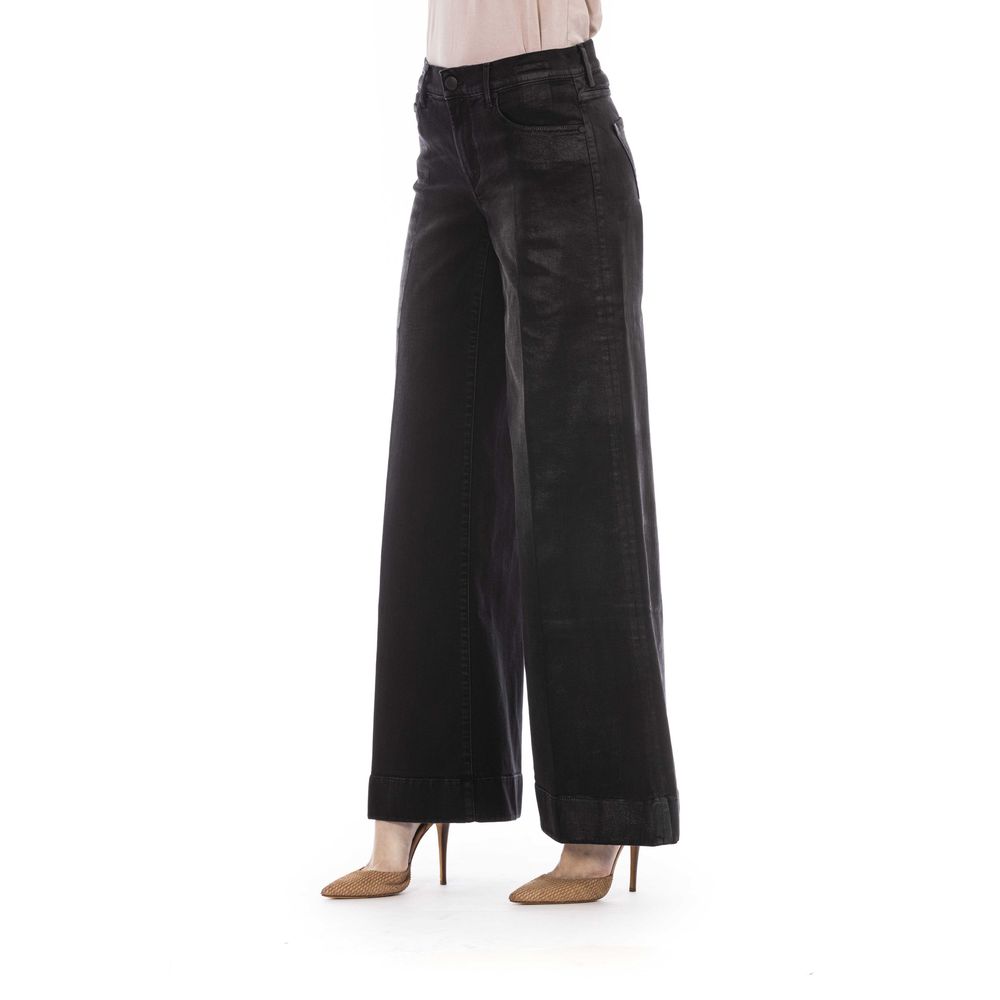 Elevate your denim collection with the Jacob Cohen Palazzo 5 Pocket Jeans. Impeccably crafted with a blend of cotton, polyester, and a hint of elastane, these jeans are the essence of luxury with a comfortable stretch. The metallic side detailing adds a touch of glamour, while the logo embroidery on the pocket shows off your designer flair. A versatile black hue ensures they’ll become a staple in your wardrobe.