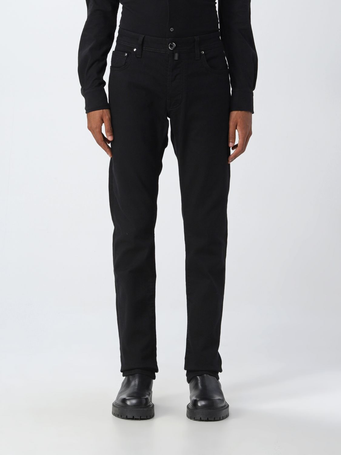 Indulge in the sleek sophistication of Jacob Cohen’s Bard model jeans. Crafted with an eye for detail, these slim-fit denims offer unrivaled comfort and an impeccable silhouette. Finished with the iconic brand logo patch at the back and a secure button closure, they epitomize high-end Italian craftsmanship. Steeped in understated elegance with a trendy edge, these jeans are essential for any fashion-forward wardrobe.