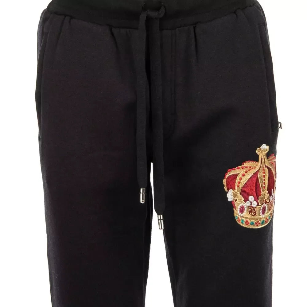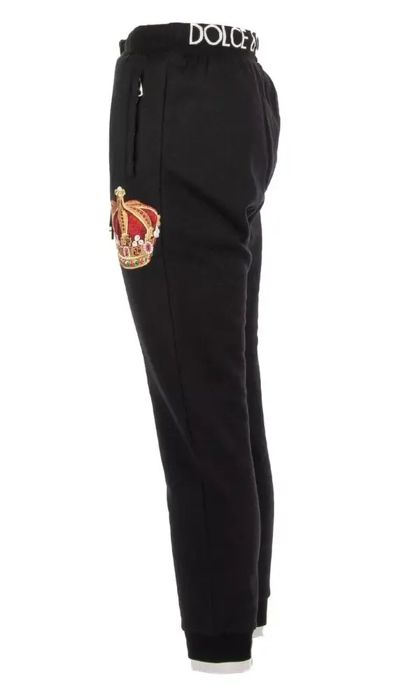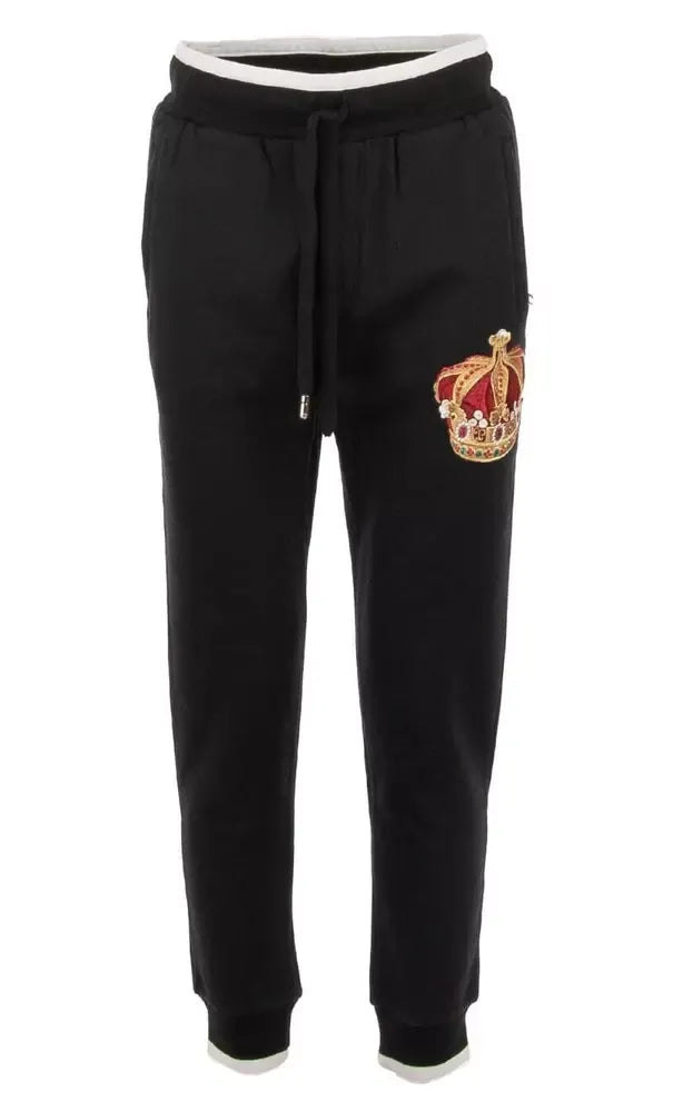 Step up your casual wear with these elegant sport pants, featuring a sophisticated embroidered crown patch on the front. Designed with both comfort and style in mind, these pants include two convenient side pockets and a secure back pocket with a zipper closure. The logoed elastic waistband at the back provides an adjustable fit, thanks to the included drawstring. Crafted in Italy from 100% pure cotton, these pants promises both luxury and durability.