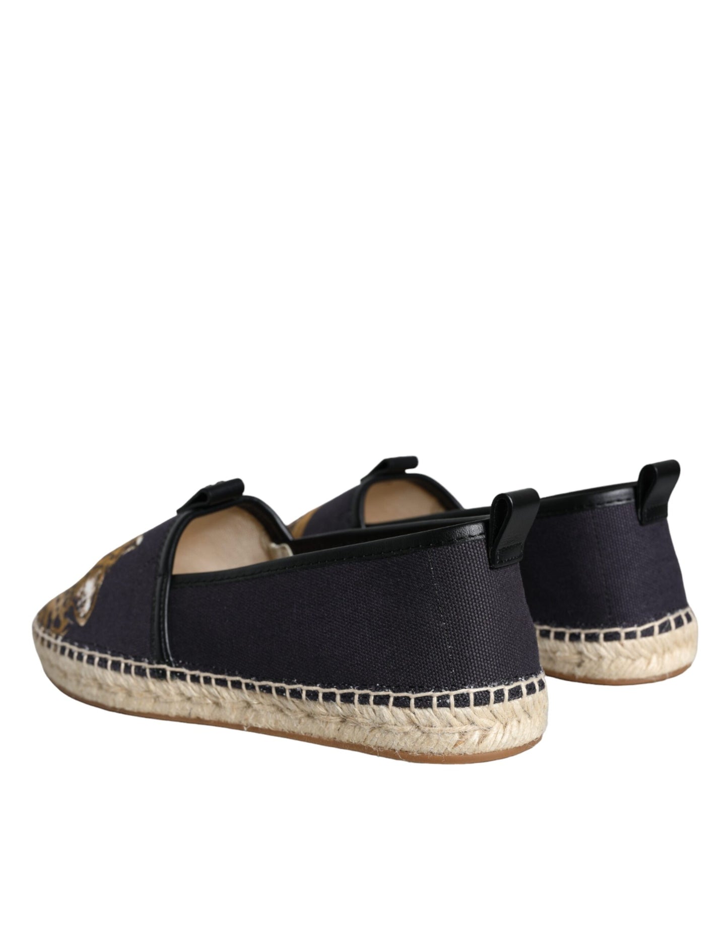 Black Cotton Leopard Slip On Espadrilles Shoes