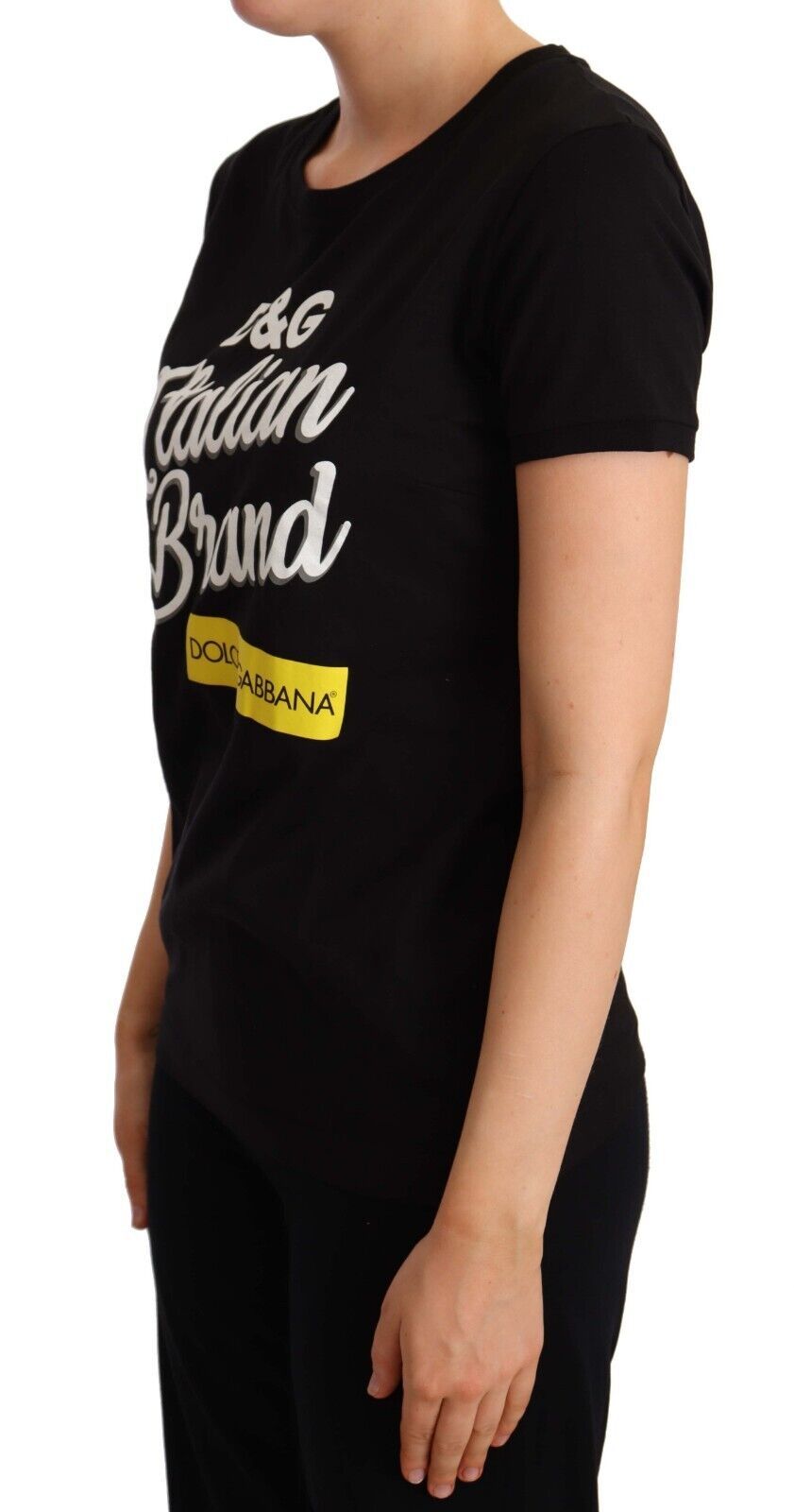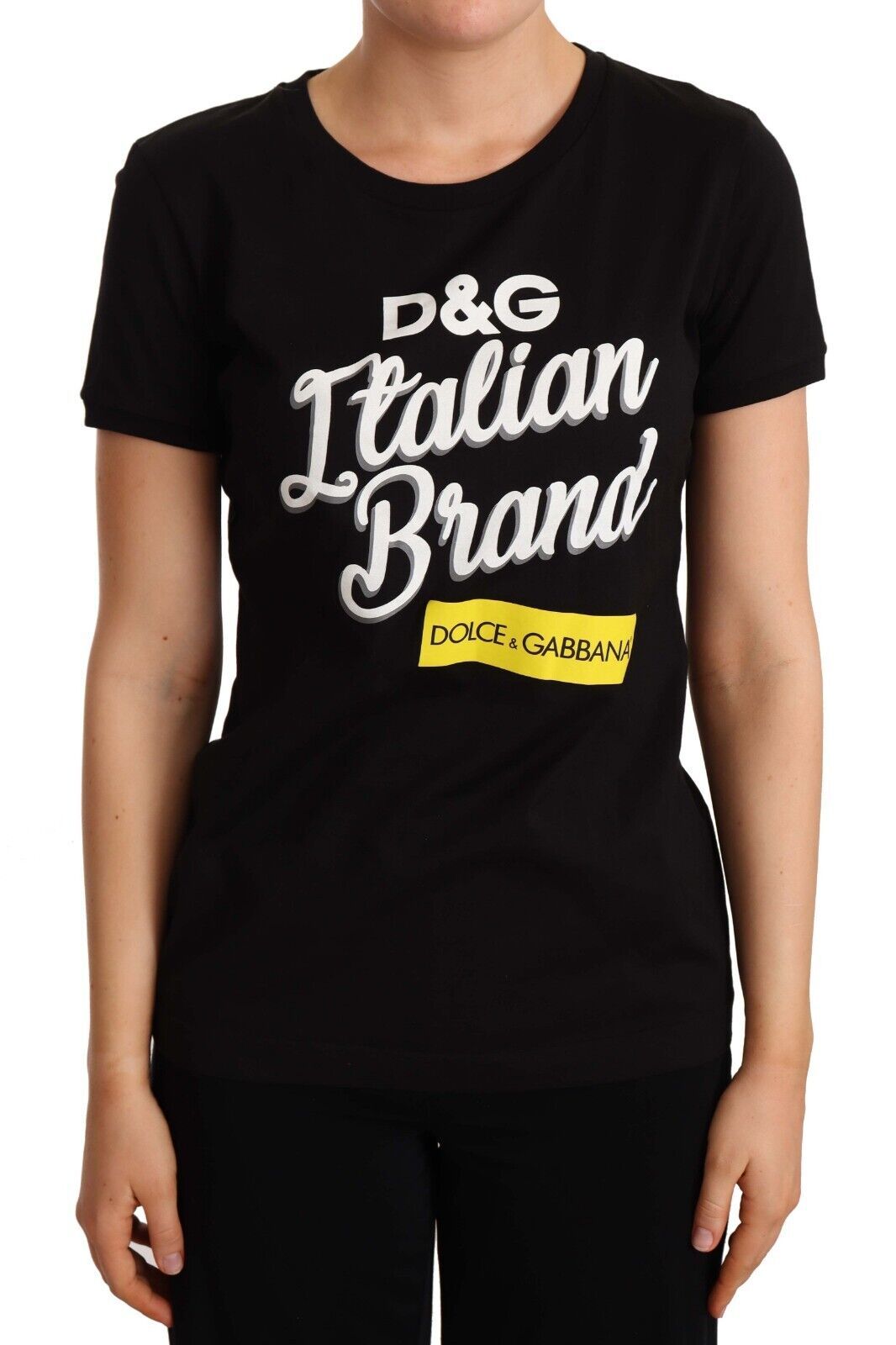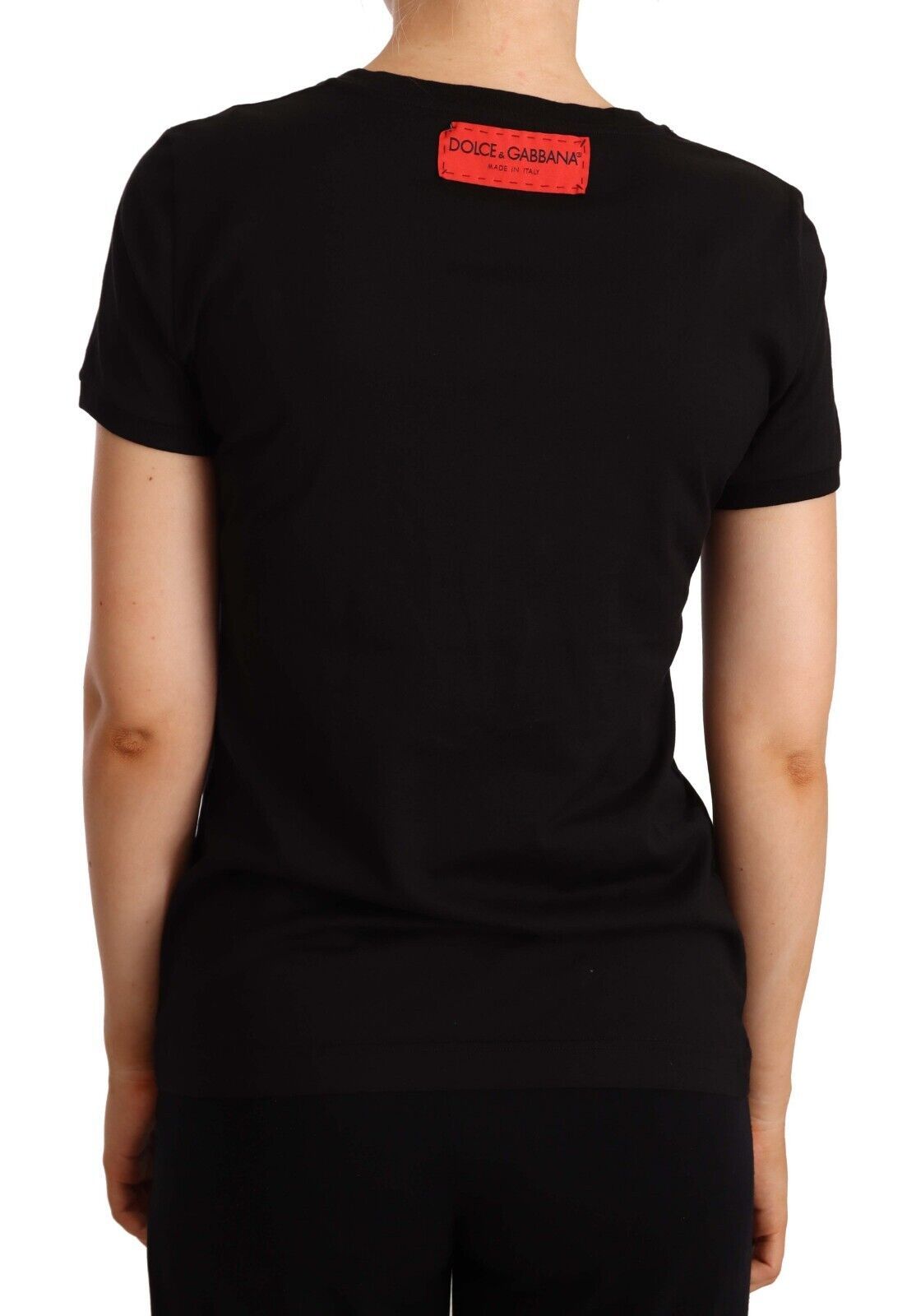 Indulge in the epitome of Italian luxury with this chic Dolce & Gabbana Black T-Shirt. Expertly crafted from premium 100% cotton, this top ensures comfort while exuding sophistication. Adorned with a colorful logo print, it brings a touch of vibrancy to your ensemble. The round neckline and short sleeves make it a perfect pick for any fashionable wardrobe, promising an effortless blend of style and ease.