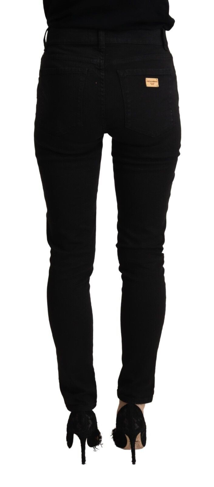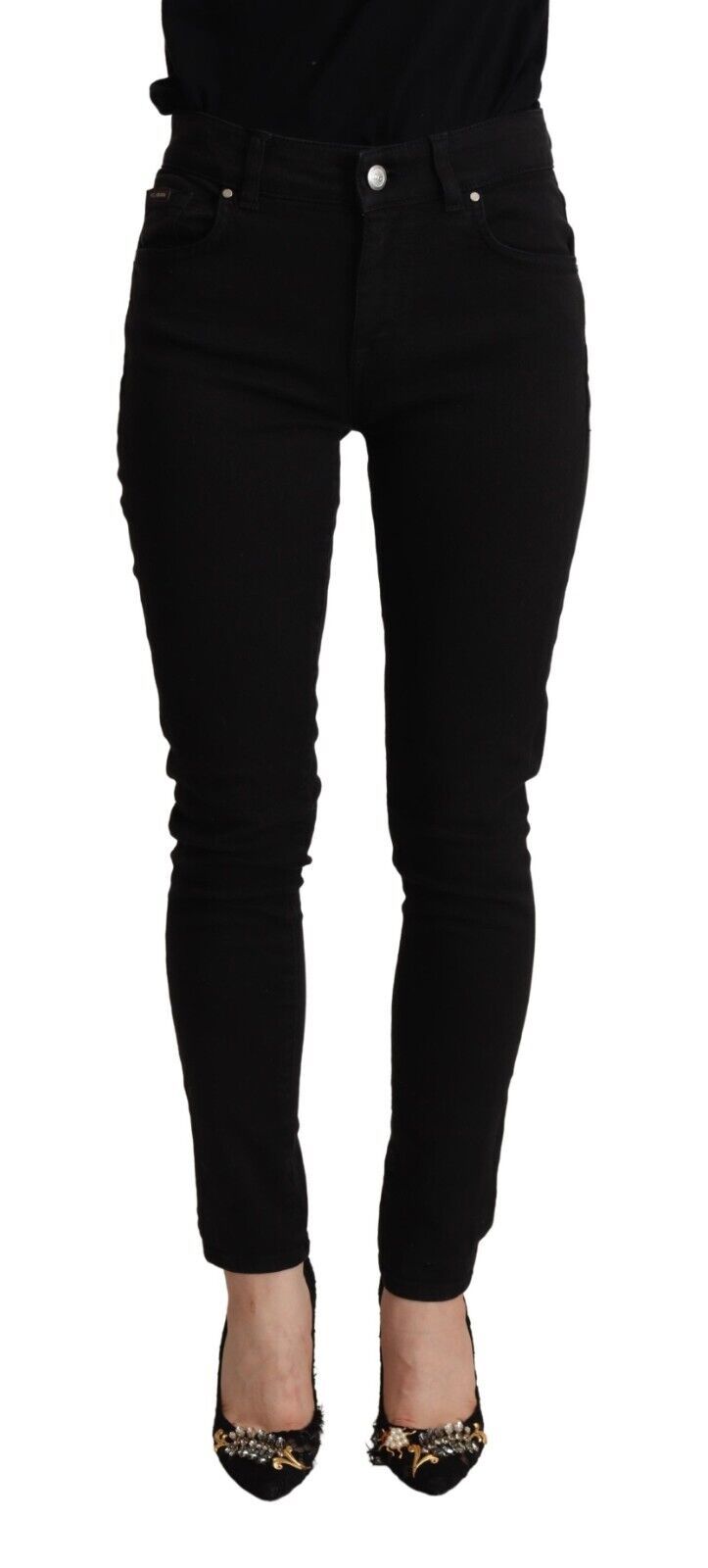 Step into sophisticated style with these gorgeous mid-waisted slim fit black jeans, a must-have for any fashion-forward wardrobe. Exquisitely crafted in Italy, these jeans bring together comfort and luxury, ideal for those seeking a chic, streamlined silhouette.