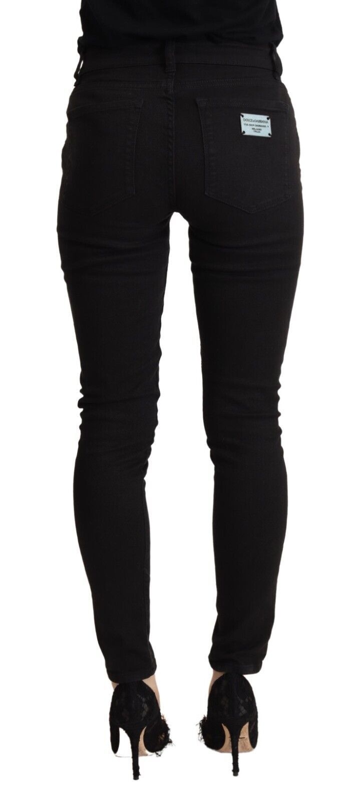 Experience the perfect blend of luxury and style with these sleek Dolce & Gabbana slim fit denim jeans. Tailored to flatter with a mid-waist and skinny design, they feature a subtle logo plaque on the back pocket for an iconic touch. Crafted in Italy, these black jeans offer comfort with a hint of stretch, making them a versatile staple for any wardrobe.