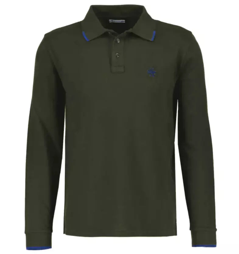 Elegant Long Sleeve Cotton Polo in Green