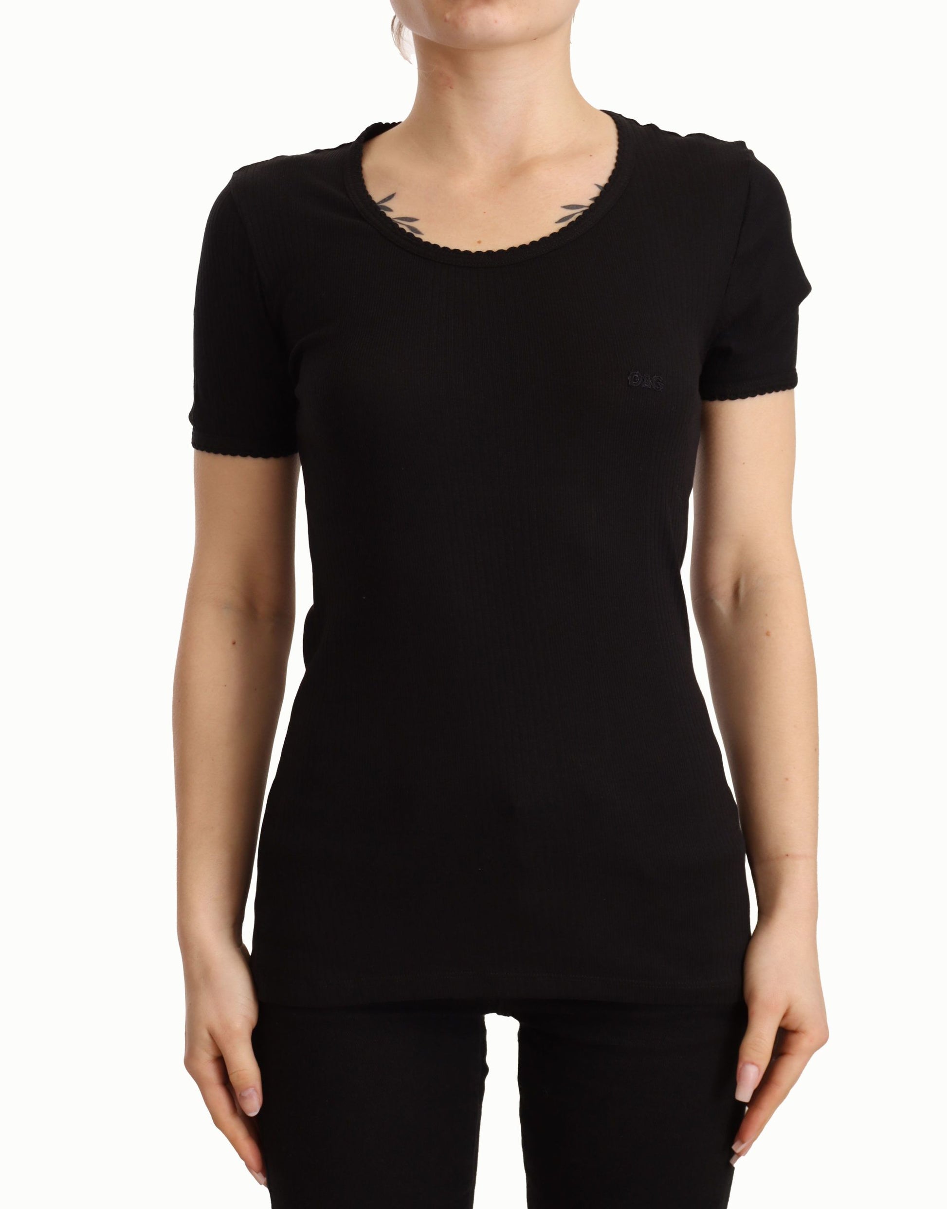 Discover the epitome of Italian craftsmanship with this elegant Dolce & Gabbana top. Gorgeous, brand new with tags, it perfectly embodies the sophisticated aesthetic of the fashion house. This round neck, short sleeve t-shirt is crafted from the finest 100% cotton, offering both comfort and a high-end look. Its sleek black color and subtle logo details make it a versatile addition to any wardrobe, carrying the essence of luxury casualwear. Made in Italy, this top is an authentic statement of style for those who value quality and elegance in their daily ensemble.