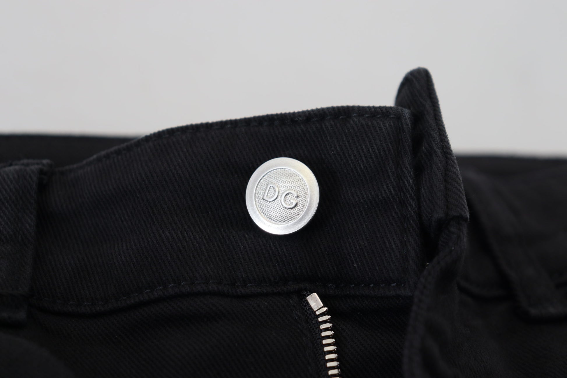 Step into the epitome of high-fashion with these sleek black denim pants by Dolce & Gabbana. These gorgeous jeans come new with tags, ensuring their authenticity and pristine condition. The perfect blend of comfort and couture, they feature a contemporary silhouette complemented by the subtle yet iconic logo detailing—a symbol of the designer’s meticulous craftsmanship. Crafted in Italy, these jeans offer a svelte fit that’s stylish and comfortable, courtesy of the quality cotton blend with a hint of stretch. Elevate your denim collection with this pair of Dolce & Gabbana jeans.