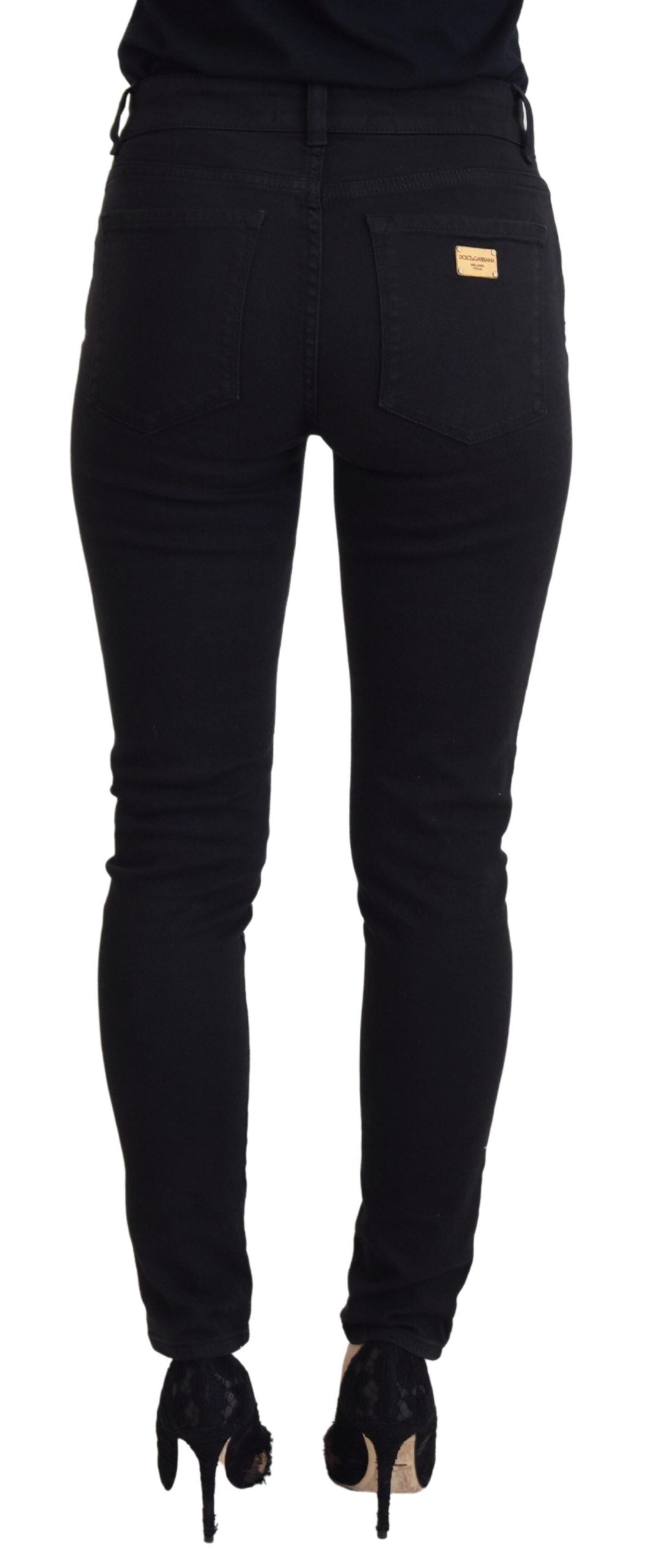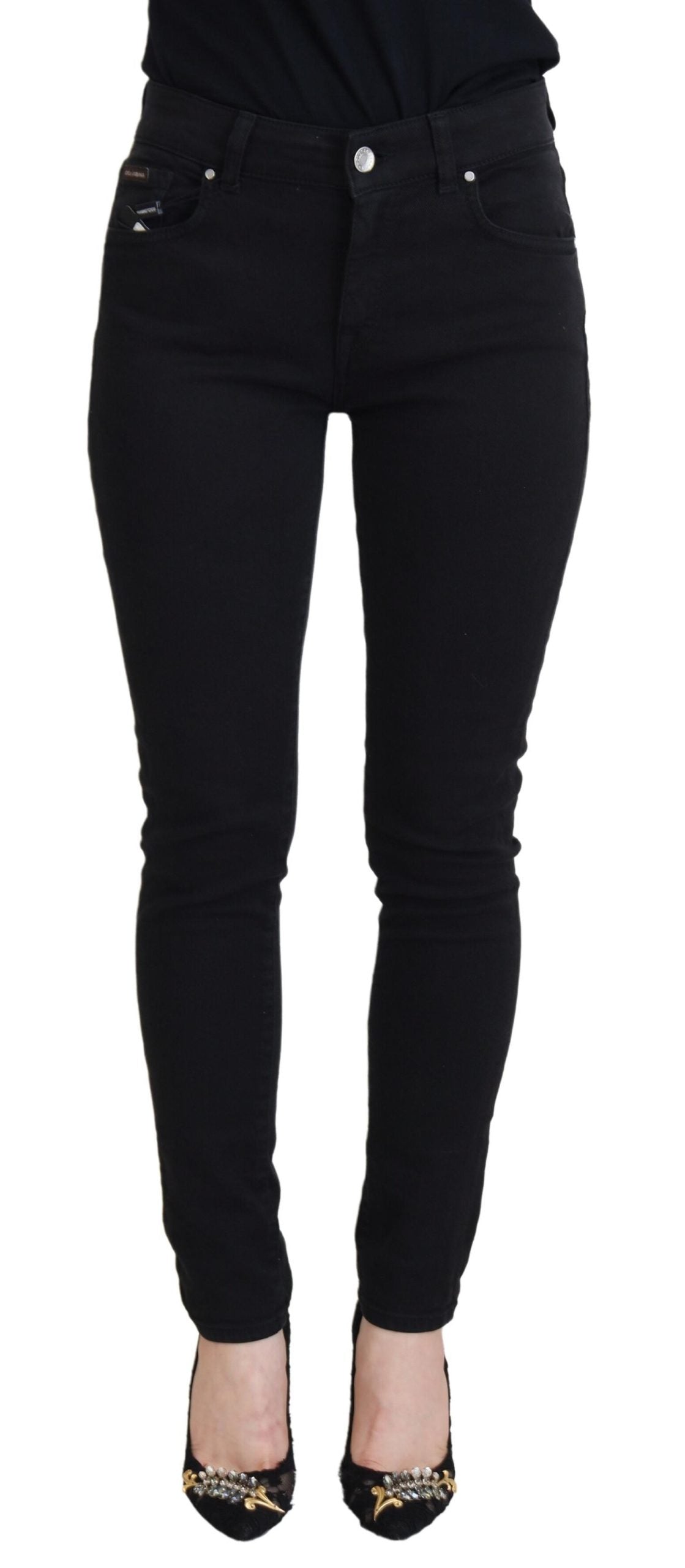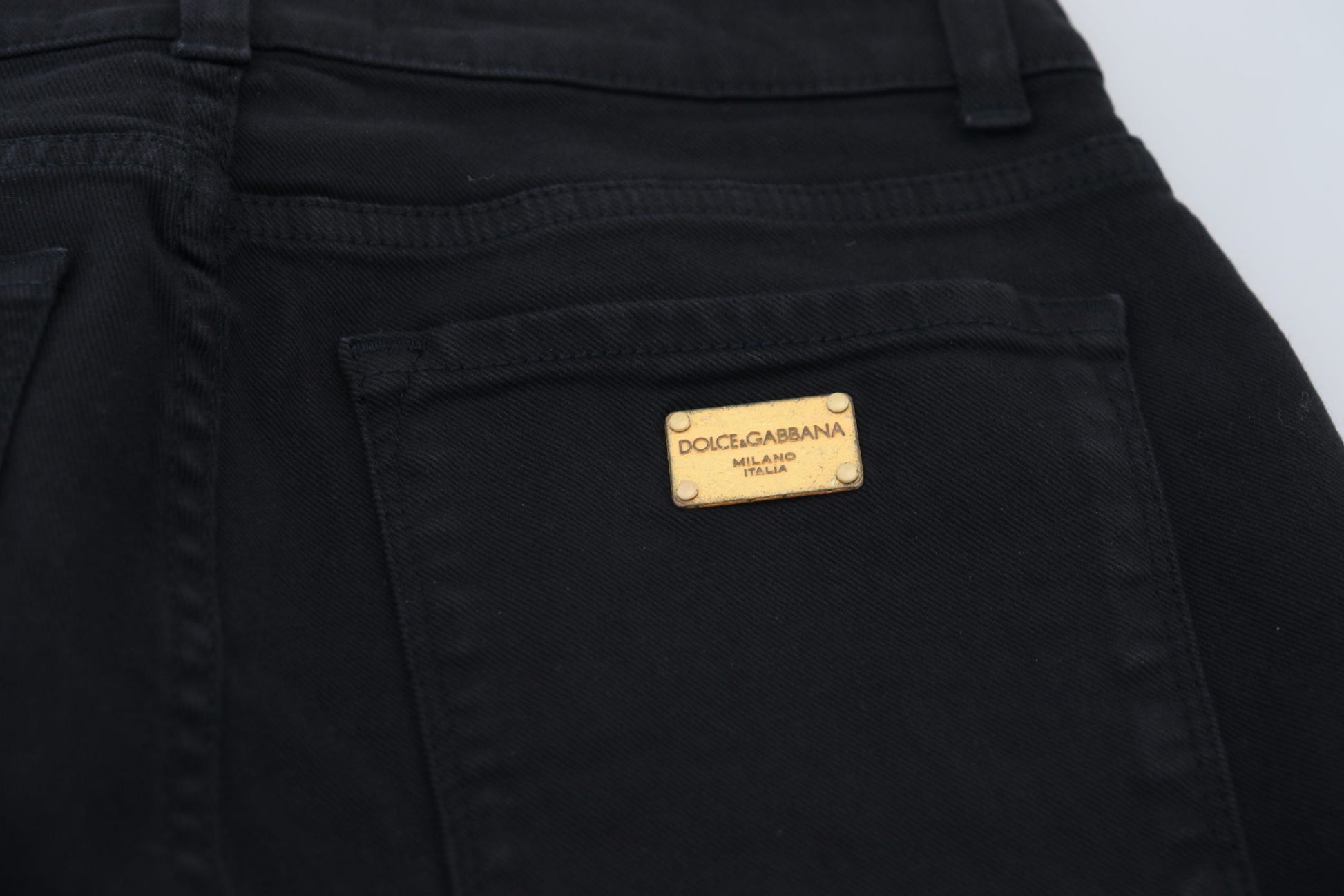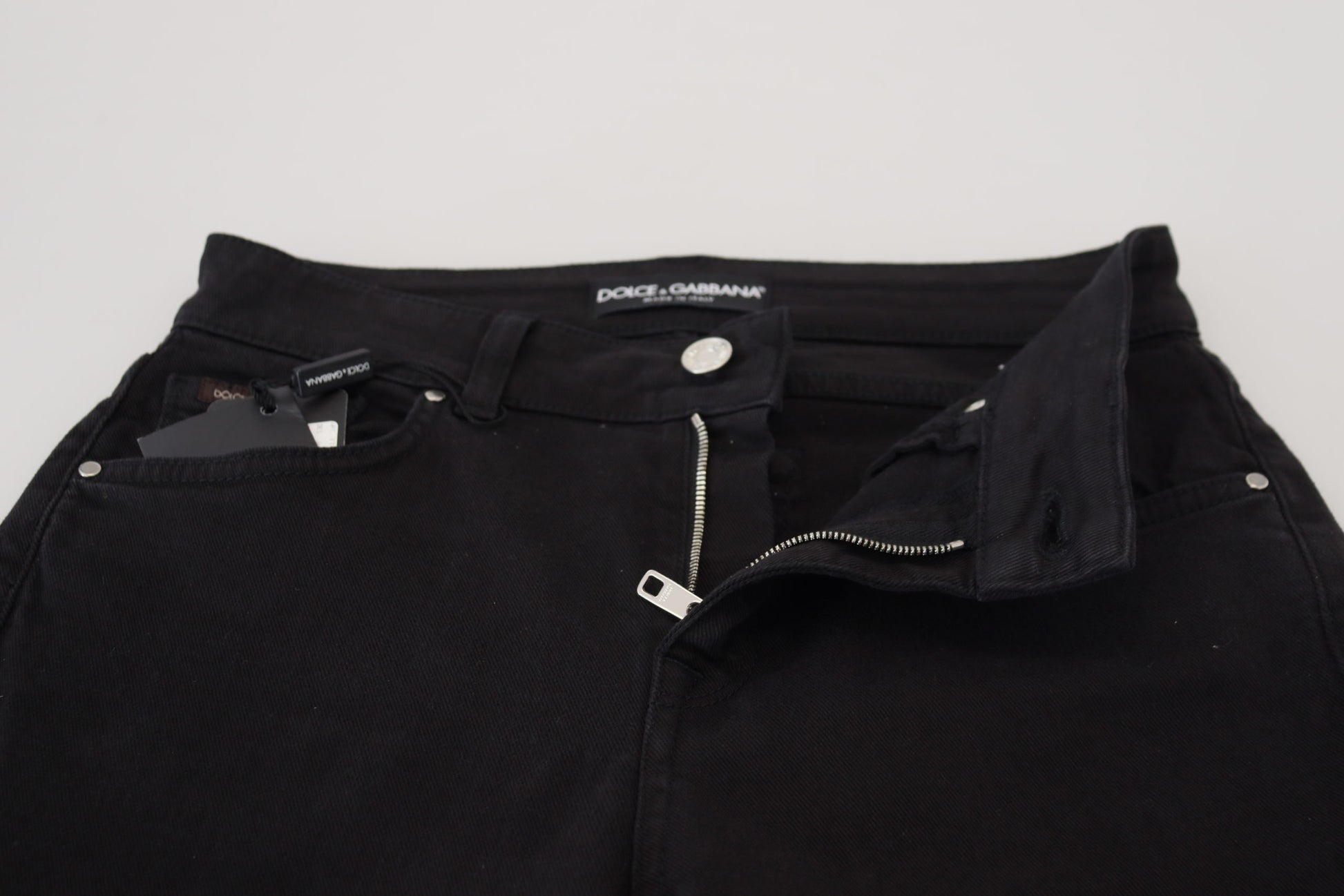 Step into sophistication with these gorgeous, brand-new denim pants. Crafted from a sumptuous blend of cotton and elastane, they offer a perfect combination of comfort and elegance. The sleek black color provides endless versatility, making these pants a staple for any high-fashion wardrobe. The design is finished with subtle logo details that epitomize the luxury and craftsmanship synonymous with the prestigious Dolce & Gabbana brand.