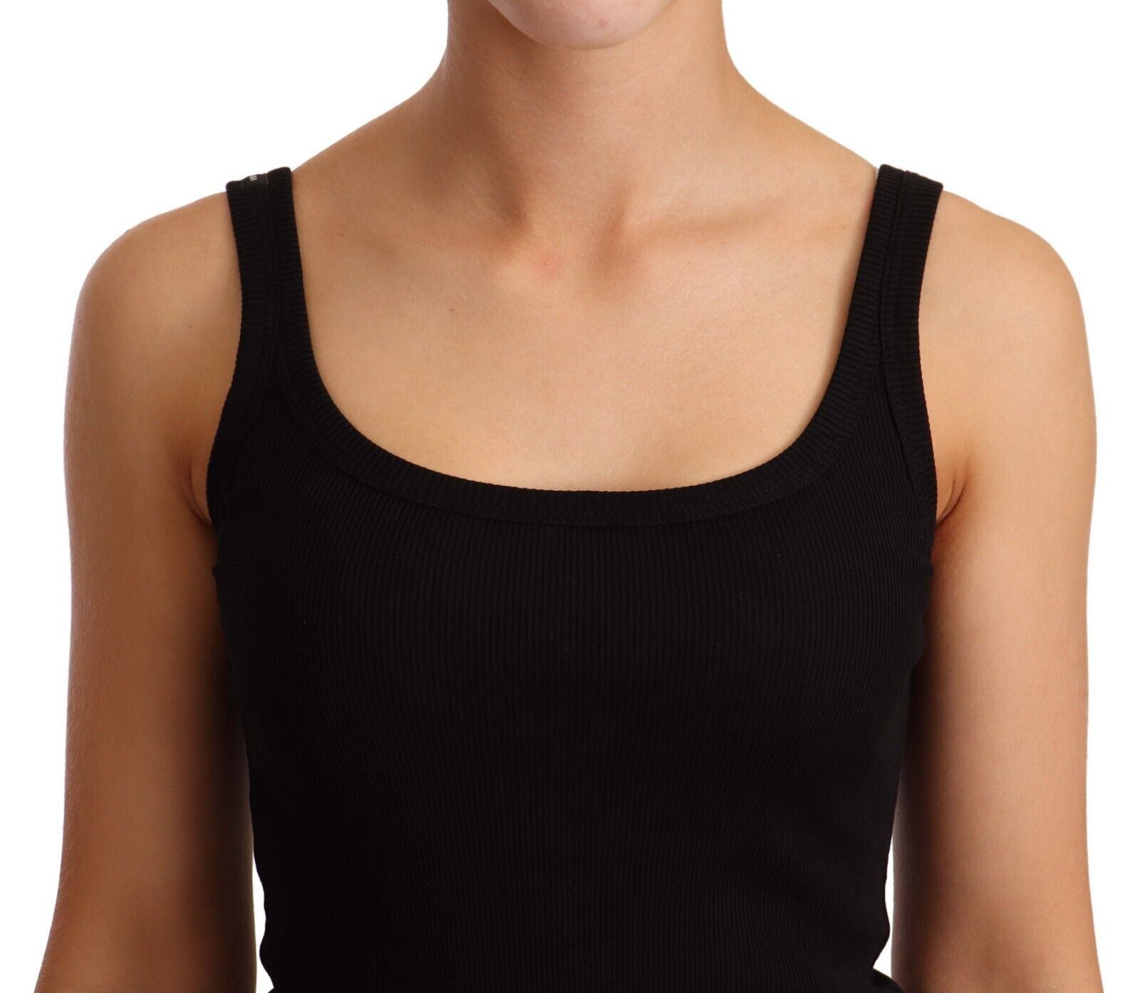 Elevate your casual wear with this exquisite square neck t-shirt from Dolce & Gabbana. Crafted from high-quality textured cotton jersey, this black top is a testament to Italian craftsmanship, offering both comfort and a sleek silhouette. Adorned with subtle logo details, it is the perfect blend of sophistication and style.