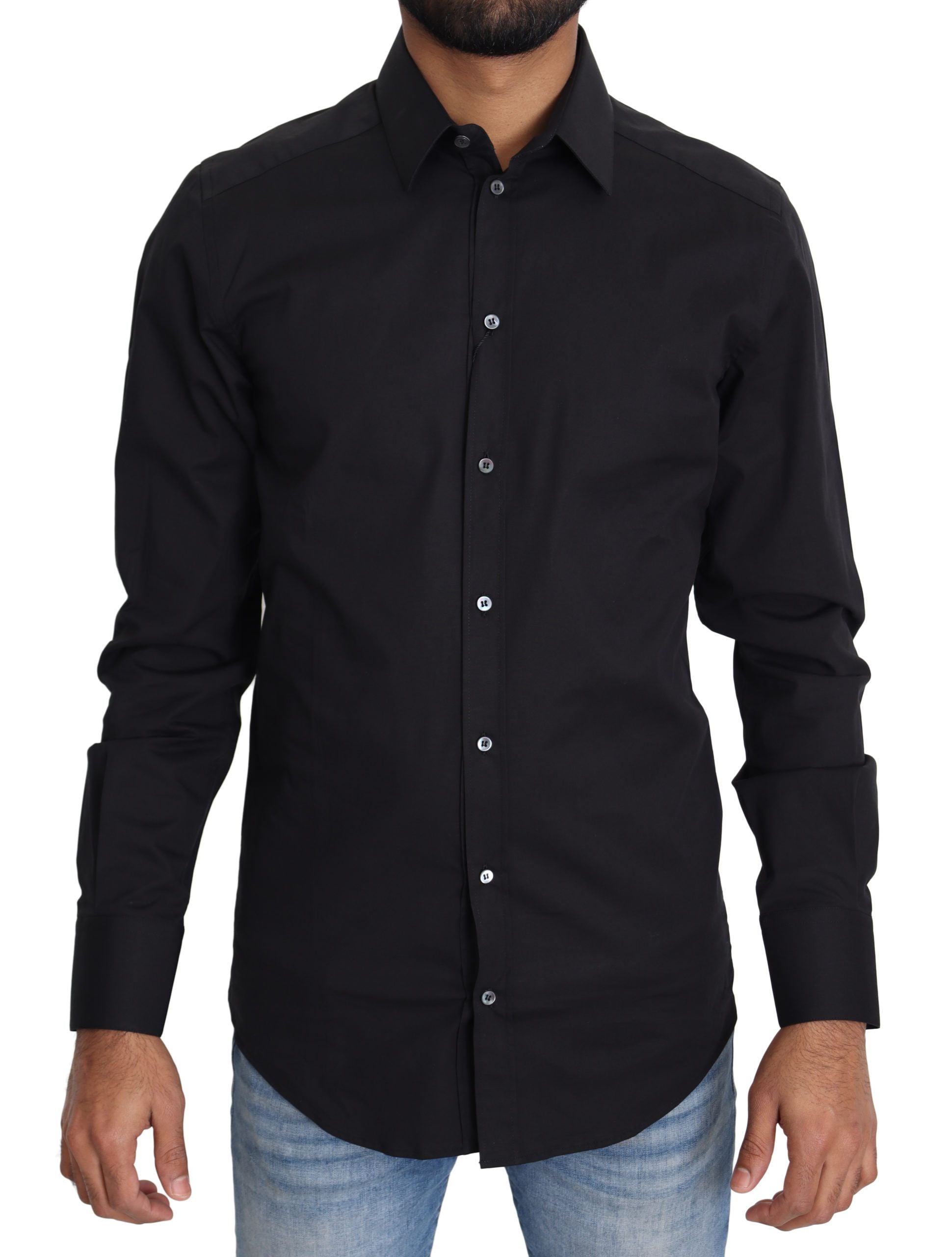 Absolutely stunning, 100% Authentic, brand new with tags Dolce & Gabbana GOLD slim fit shirt in black features a spread collar and full button closure.