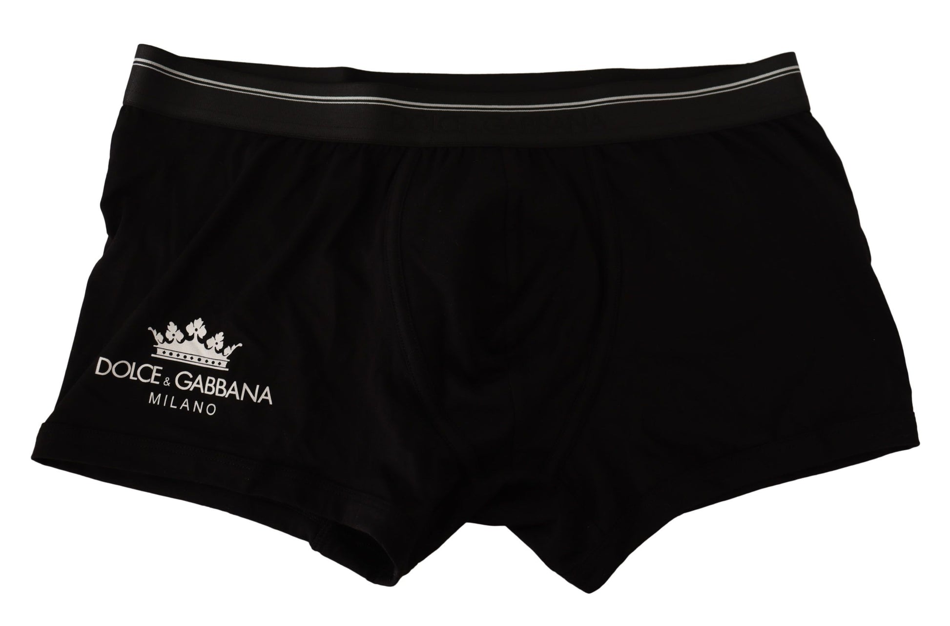 Experience the epitome of luxury with these Dolce & Gabbana boxer briefs. Crafted from a blend of high-quality cotton and elastane, these boxer briefs are designed to provide an exceptional fit and utmost comfort. The striking black hue is elegantly contrasted with a white elastic striped waistband adorned with the iconic Dolce & Gabbana logo, making it an exclusive addition to your underwear collection. Made in Italy, these briefs ensure a perfect blend of style and functionality for everyday wear.