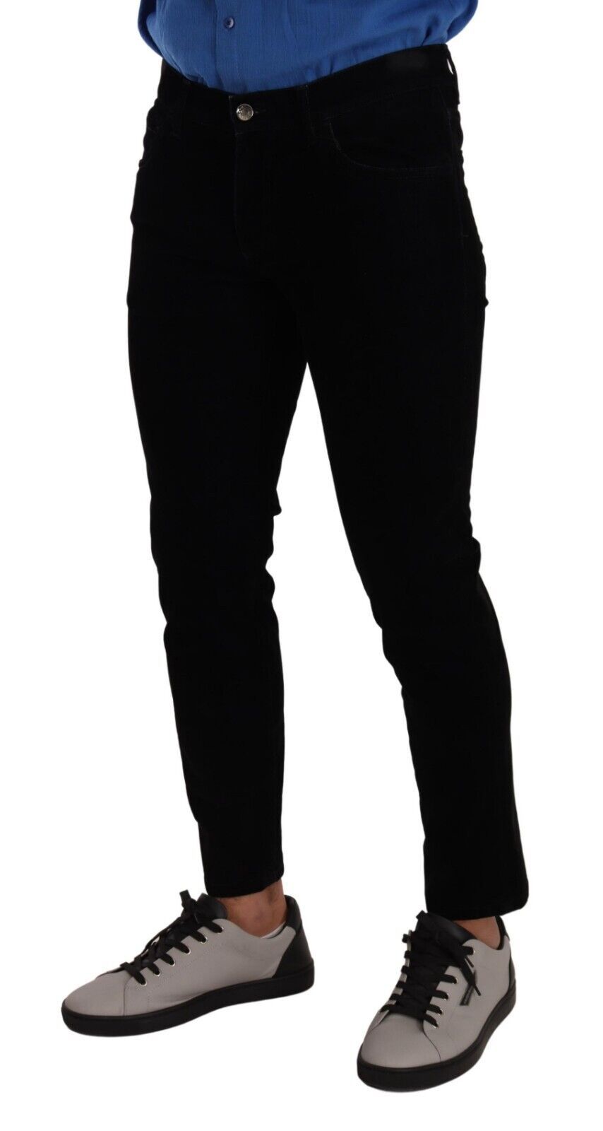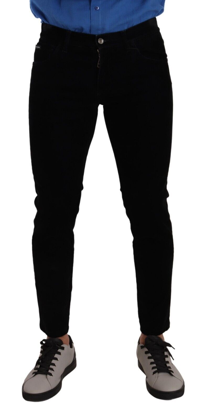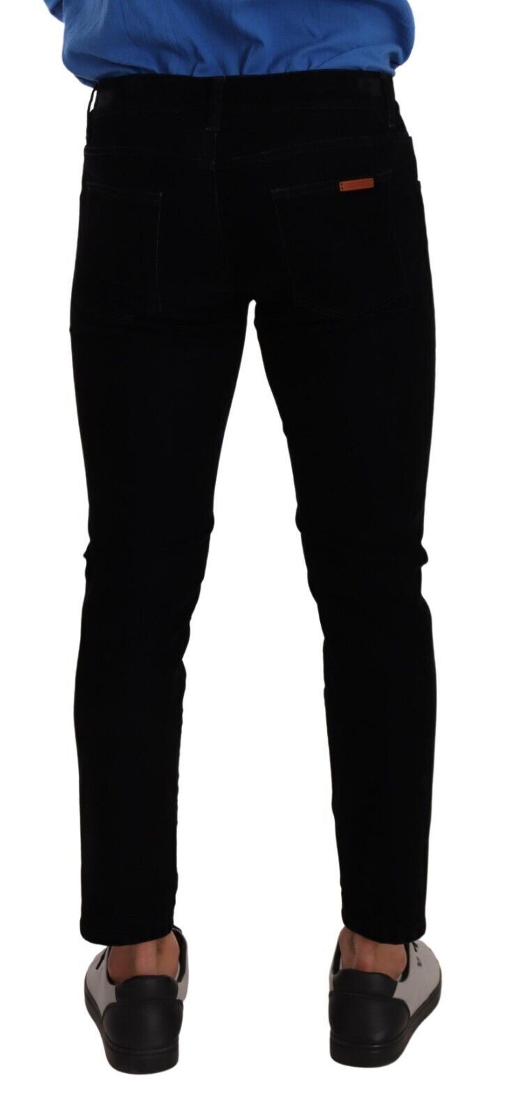 Elevate your denim collection with these sleek and stylish Skinny Jeans from the prestigious house of Dolce & Gabbana. Crafted in Italy from a soft blend of cotton and elastane, these black jeans offer a comfortable slim fit, perfect for crafting a sophisticated and contemporary silhouette. A versatile addition to any wardrobe, these jeans feature a zipper and button closure and are meticulously finished with the iconic logo details, ensuring an authentic touch of luxury with every wear.