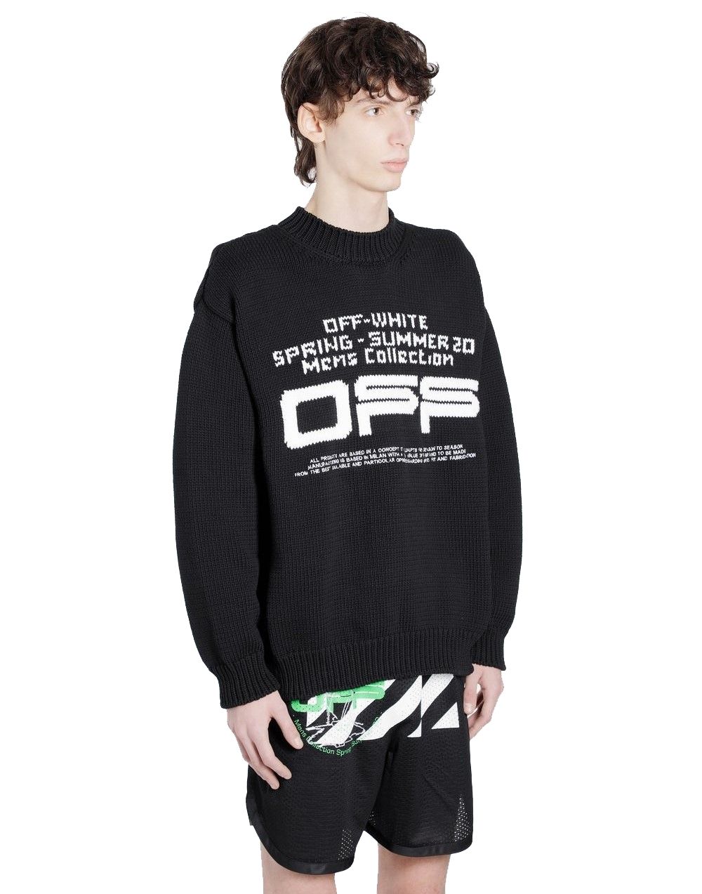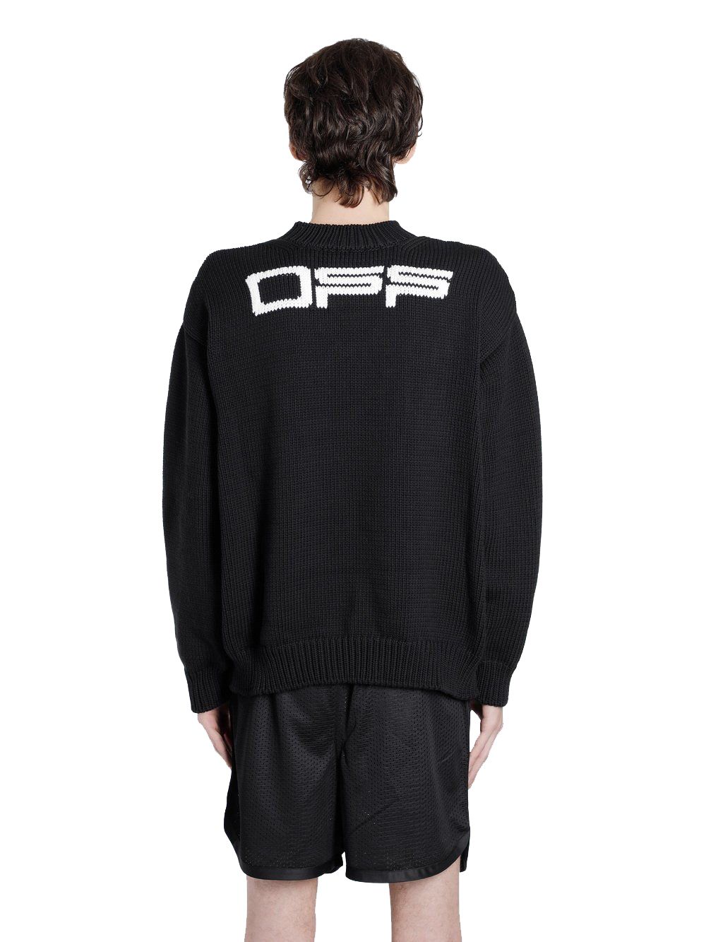 Elevate your wardrobe with this refined black crew neck sweater, exceptionally crafted for the modern man. Featuring a prominently sewn large logo on the front and back coupled with striking white lettering, this piece combines comfort with a bold statement. Made with superior materials in the heart of Italy, this sweater offers both unparalleled style and lasting quality.