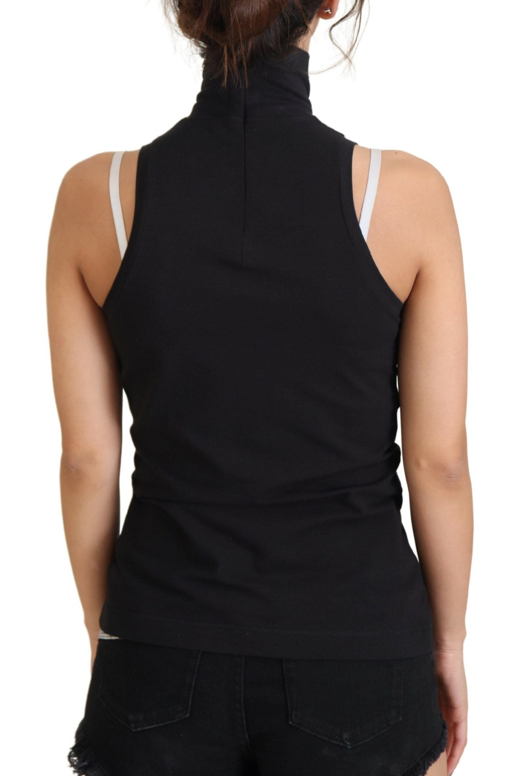 Embrace effortless chic with Dolce & Gabbana’s stunning new sleeveless tank top. This luxurious piece is perfect for layering or wearing alone, featuring a plush blend of cotton and elastane for a comfortable, figure-flattering fit. Its deep black hue and subtle logo detailing add a touch of the brand’s signature sophistication. Crafted in Italy, this top epitomizes high-end fashion.